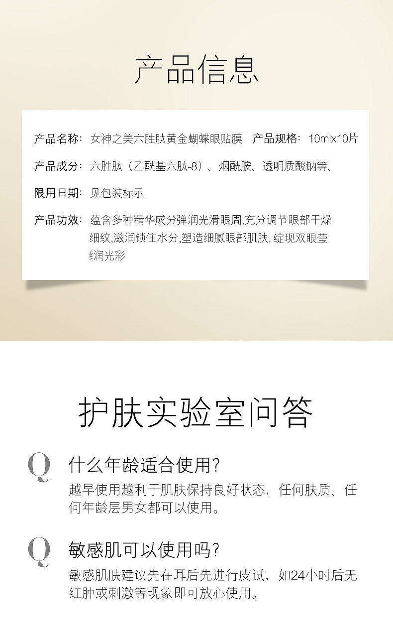 【一贴水润紧致亮眸】女神之美六胜肽黄金蝴蝶眼膜贴塑造细腻眼部肌肤水润提亮紧致提拉眼周上扬