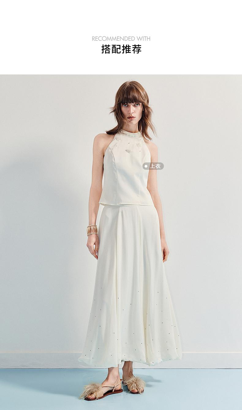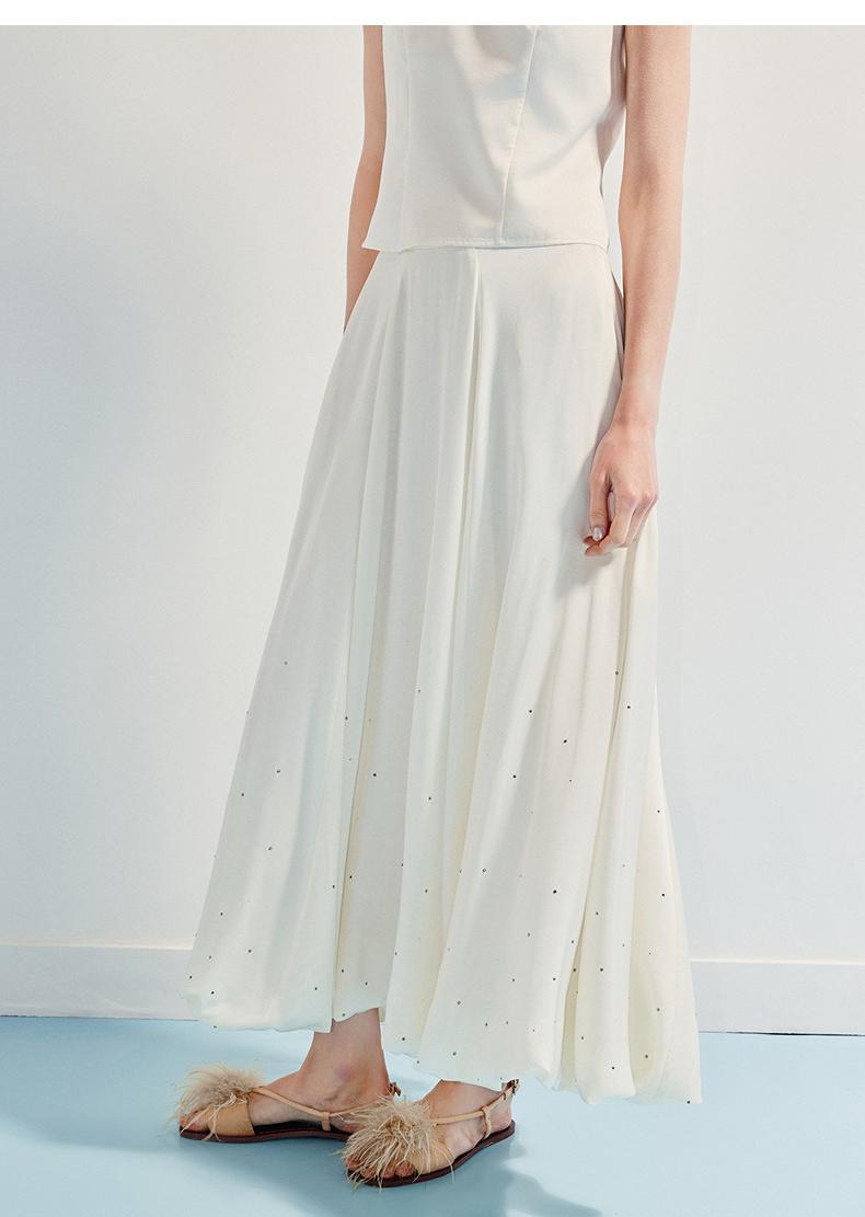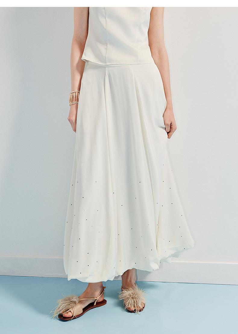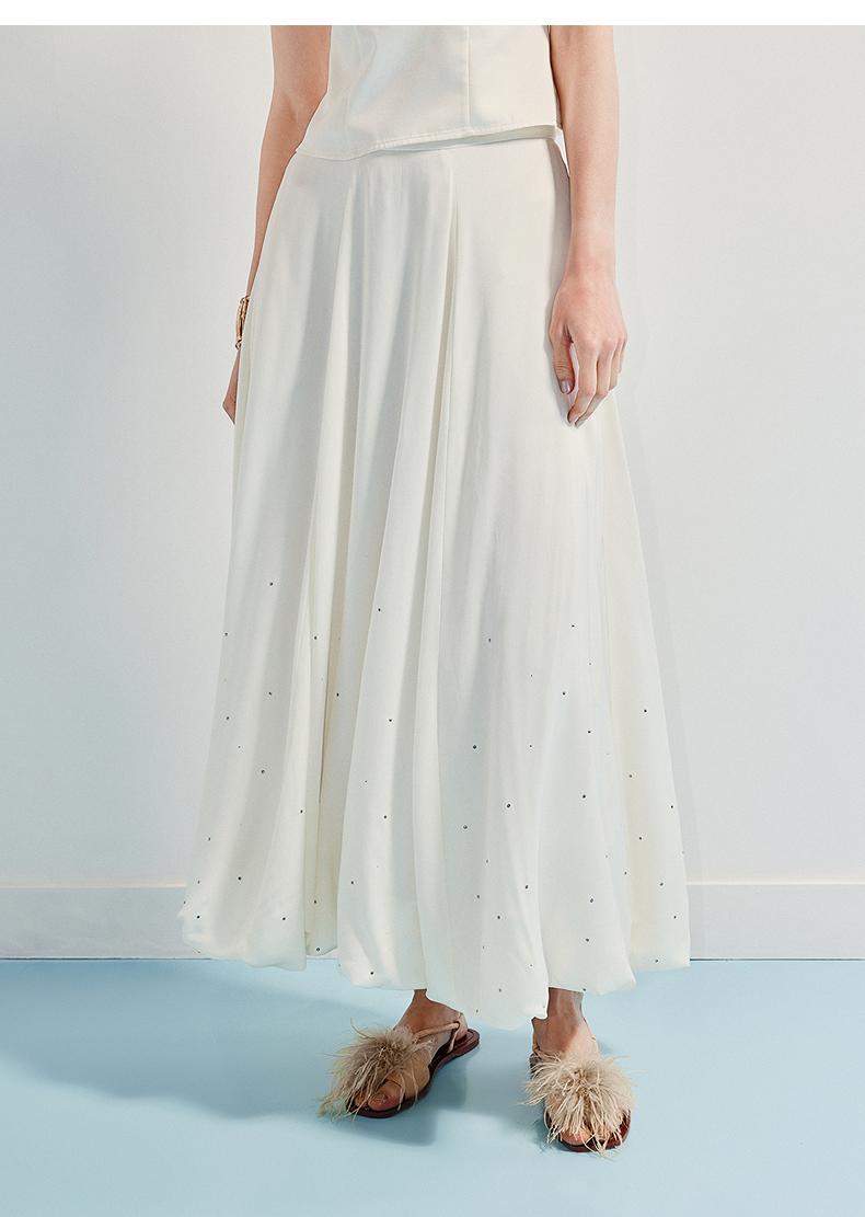 3件8折MAXRIENY2025年夏季新款白色高腰烫钻半裙简约气质百搭中长(货号:MF86SK009)
