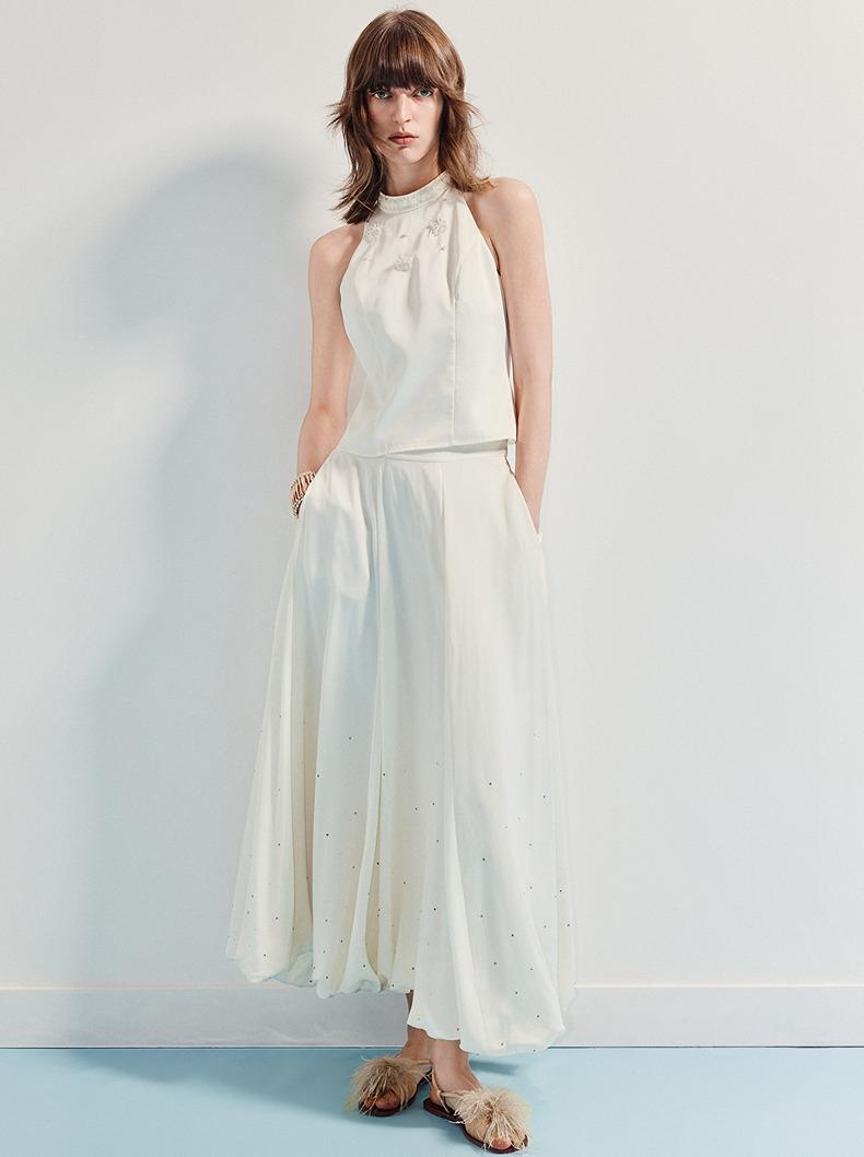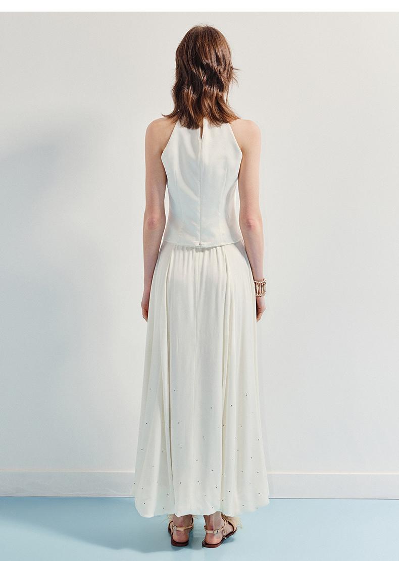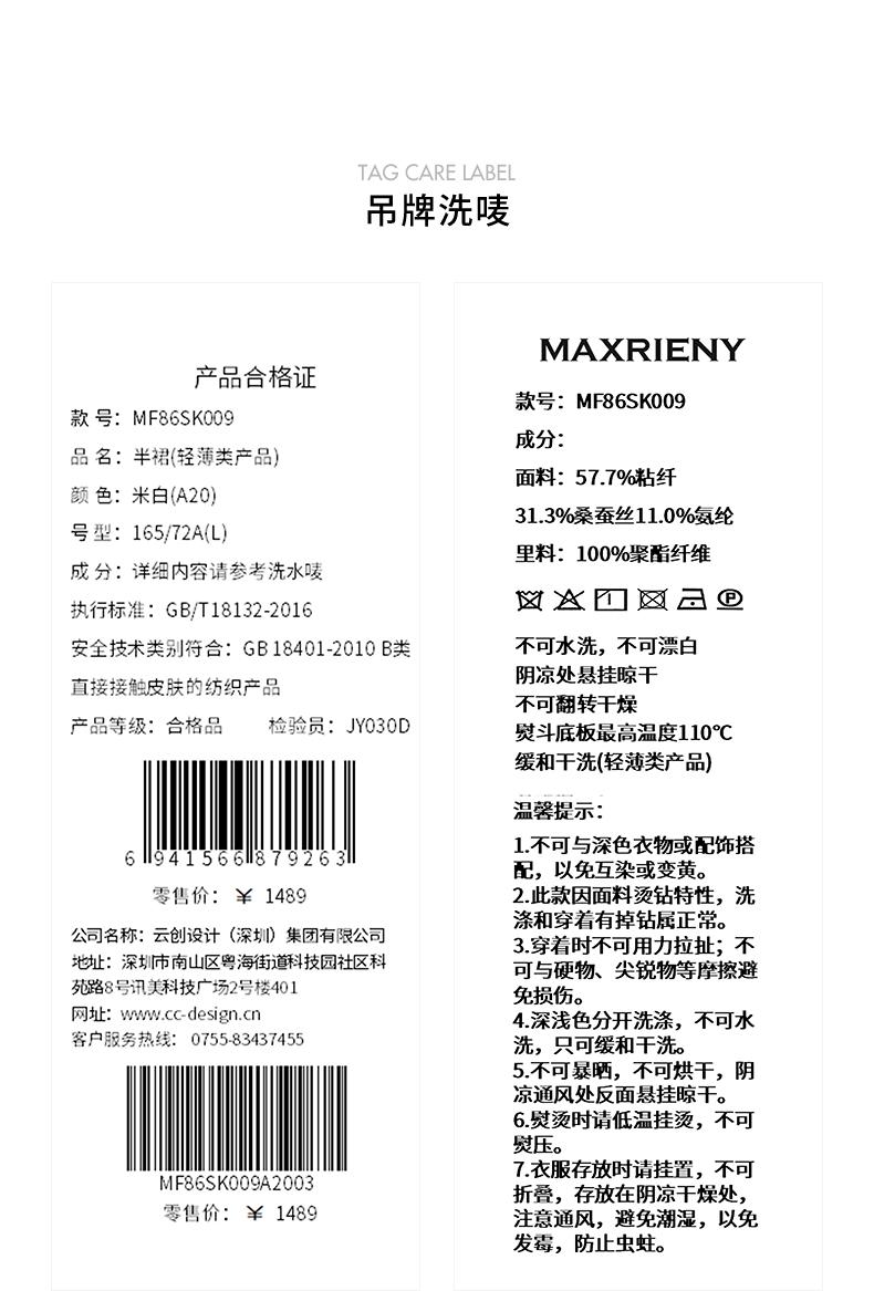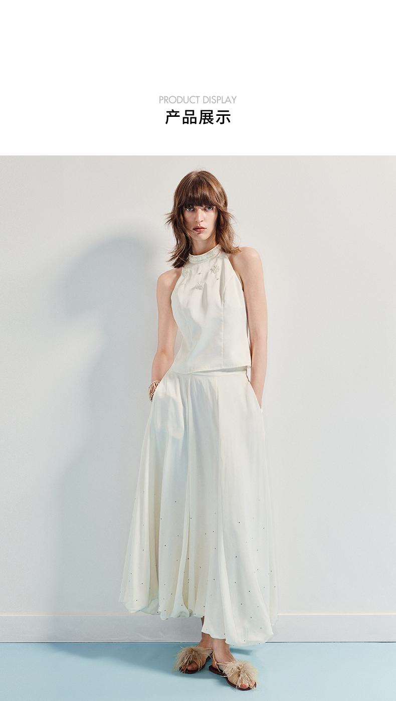 3件8折MAXRIENY2025年夏季新款白色高腰烫钻半裙简约气质百搭中长(货号:MF86SK009)