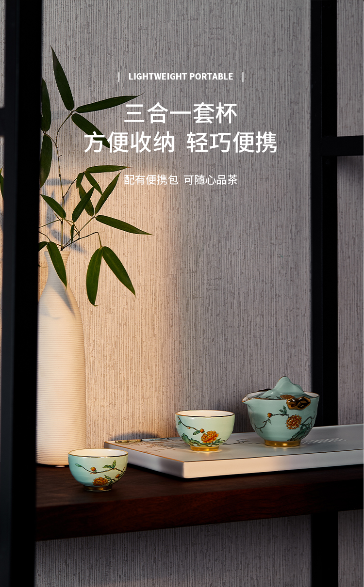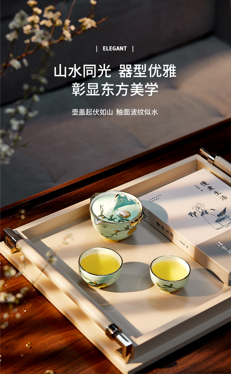 【玛戈隆特】一壶两杯便携式旅行茶具套装陶瓷家用随身泡茶壶功夫茶具 山水同光