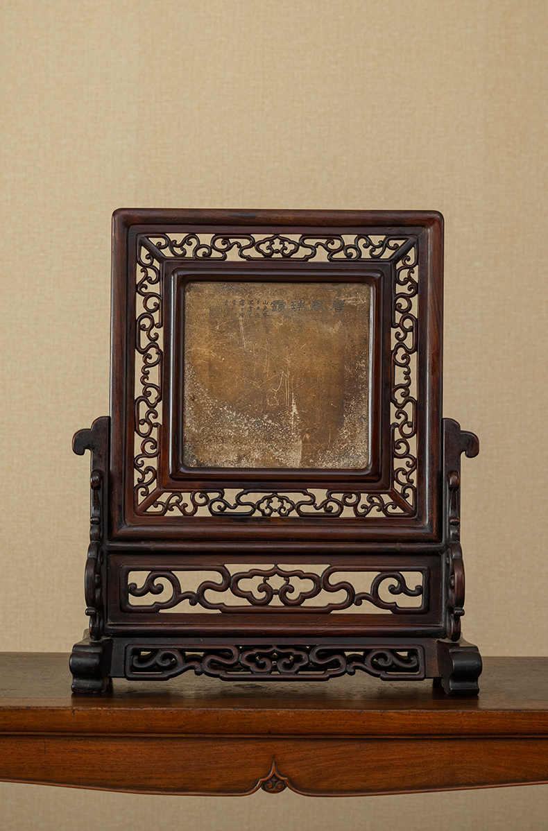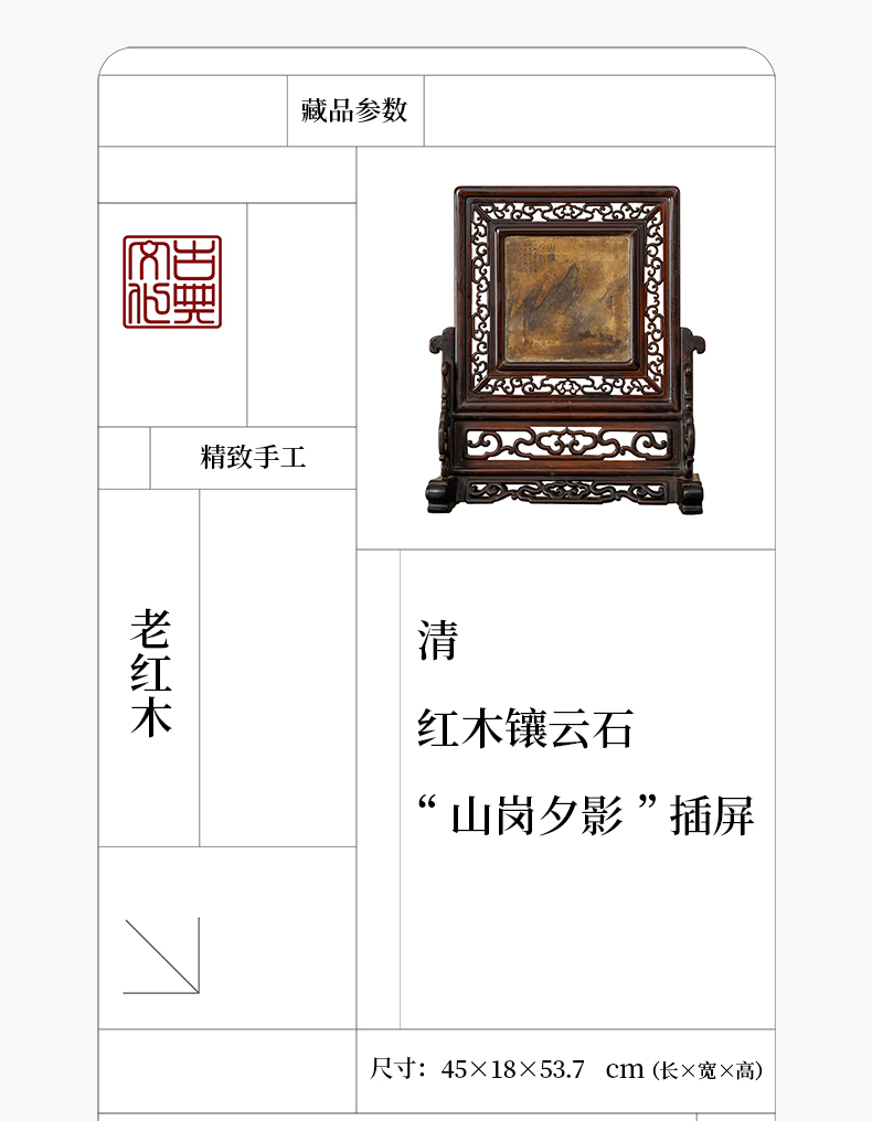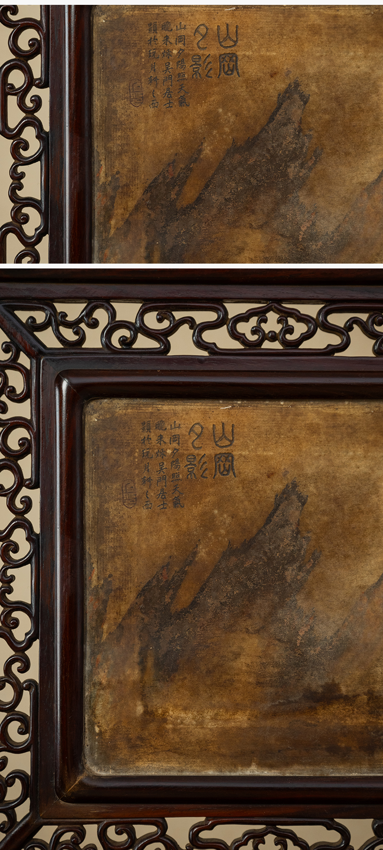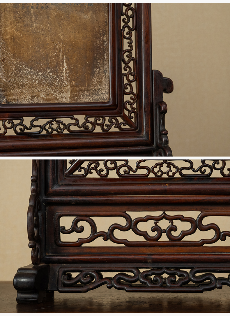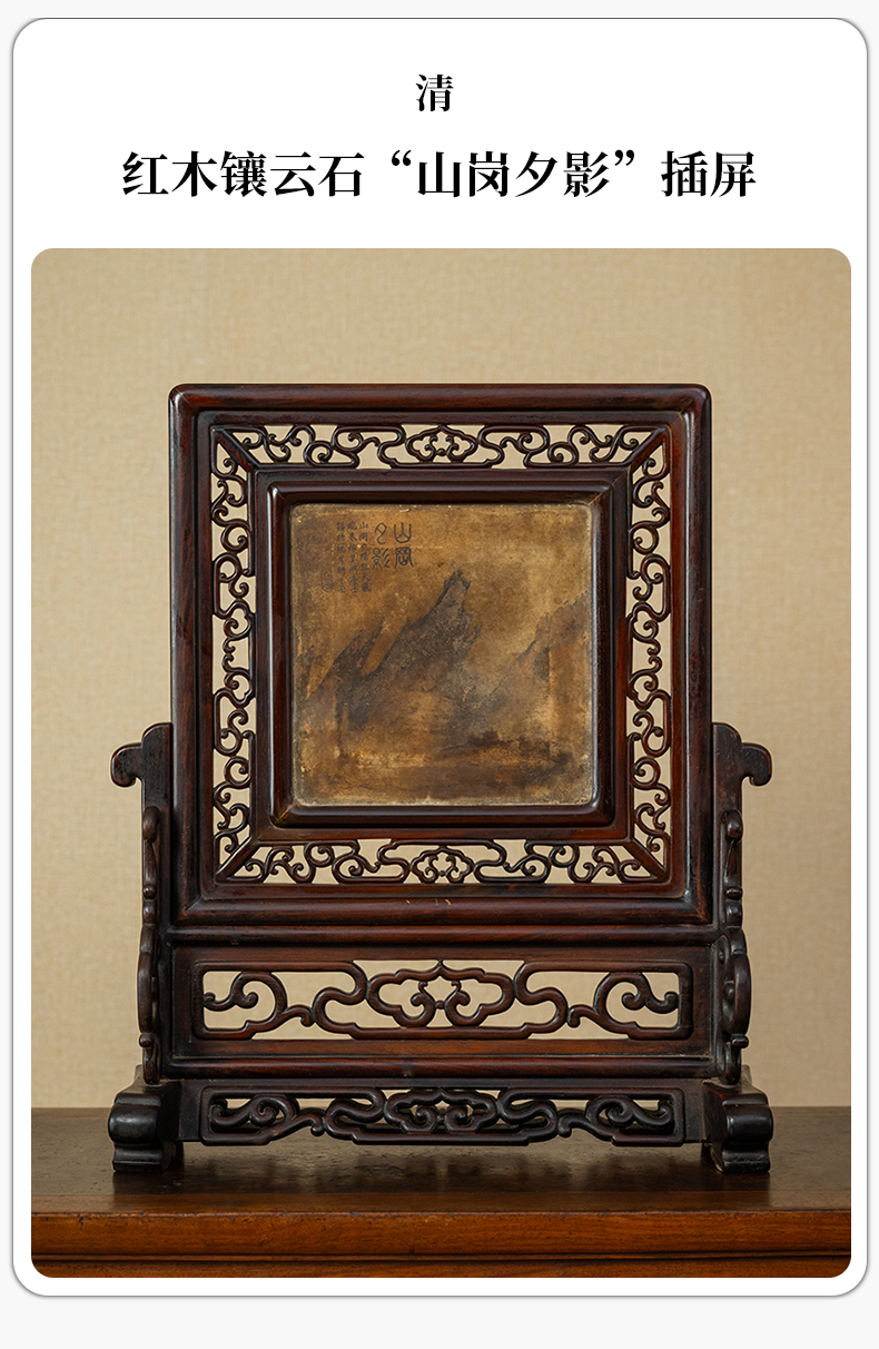 清代 红木镶瘿木嵌寿山石山水人物插屏