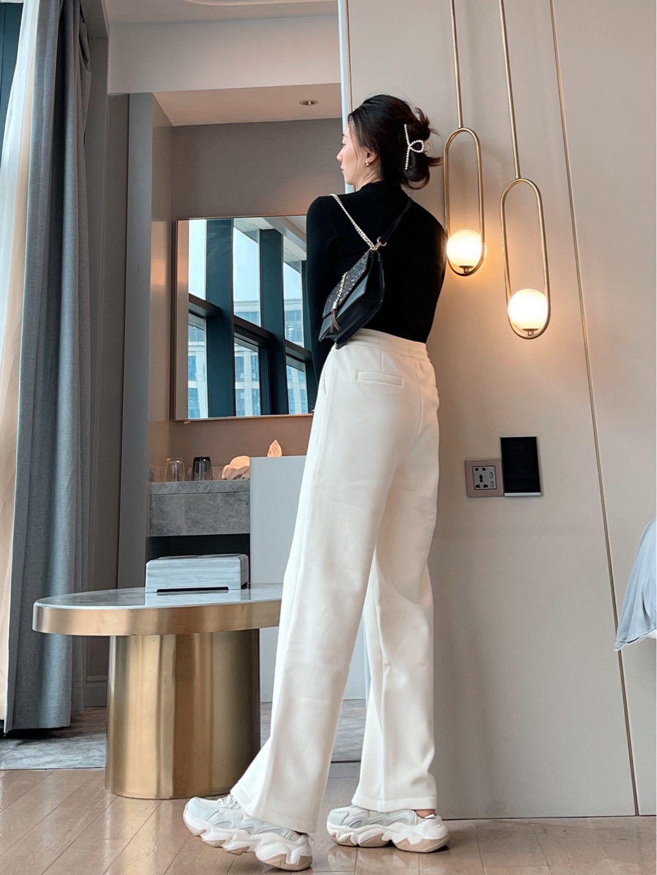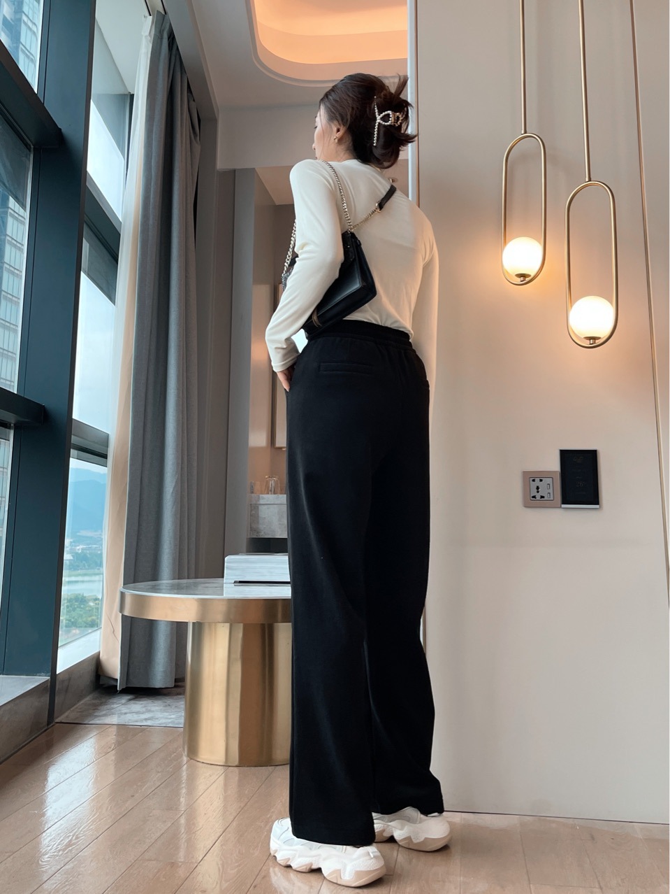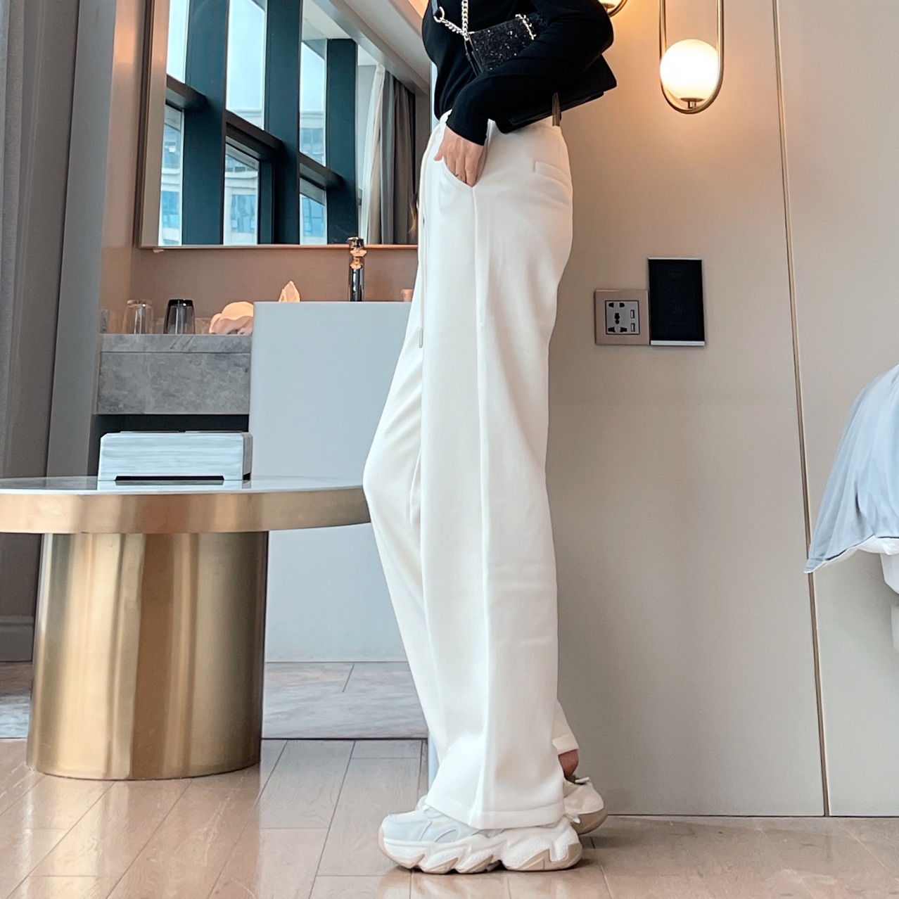 上海旗袍厂QB-C082 700克云朵阔腿裤冬加绒加厚精品女装云朵舒绒阔腿拖地休闲裤