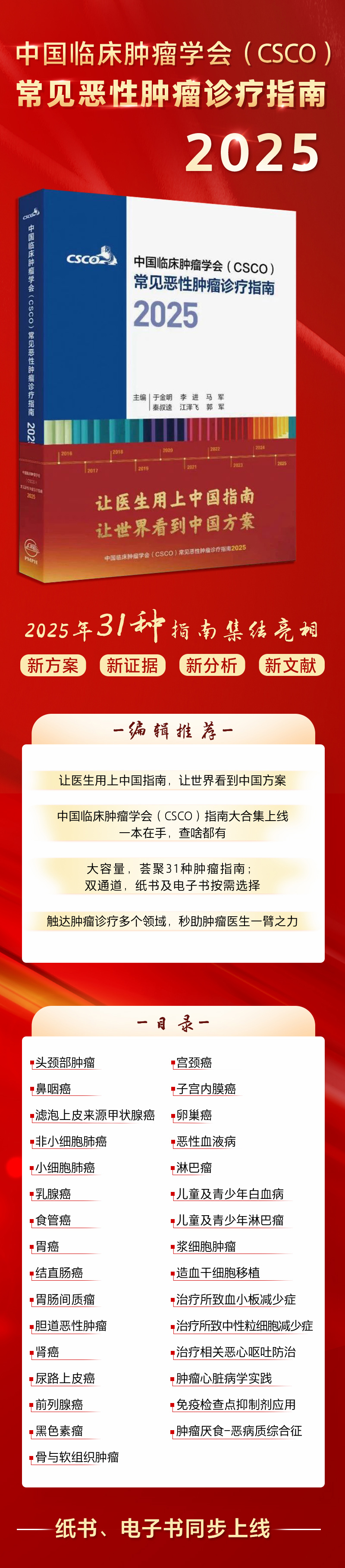 书名:中国临床肿瘤学会(CSCO)常见恶性肿瘤诊疗指南2025
