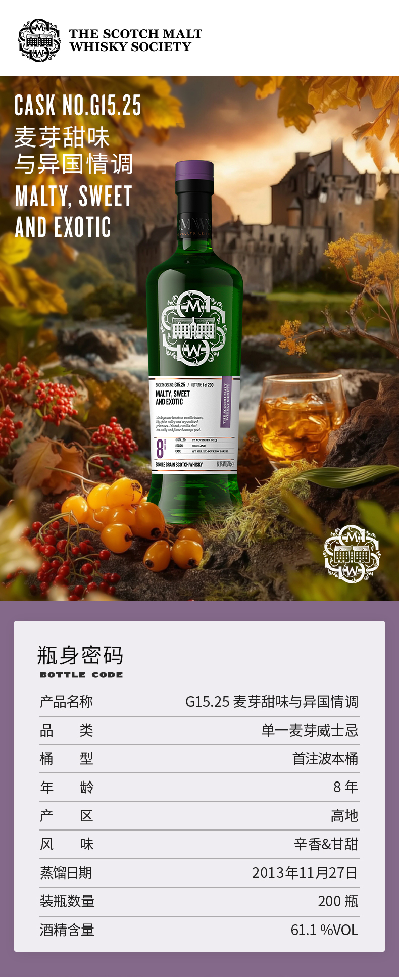 SMWS苏格兰麦芽威士忌协会 G15.25 麦芽甜味与异国情调(买赠一年会籍)