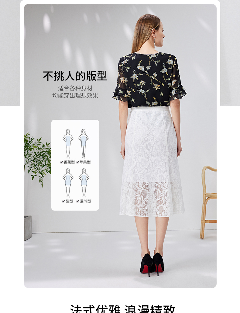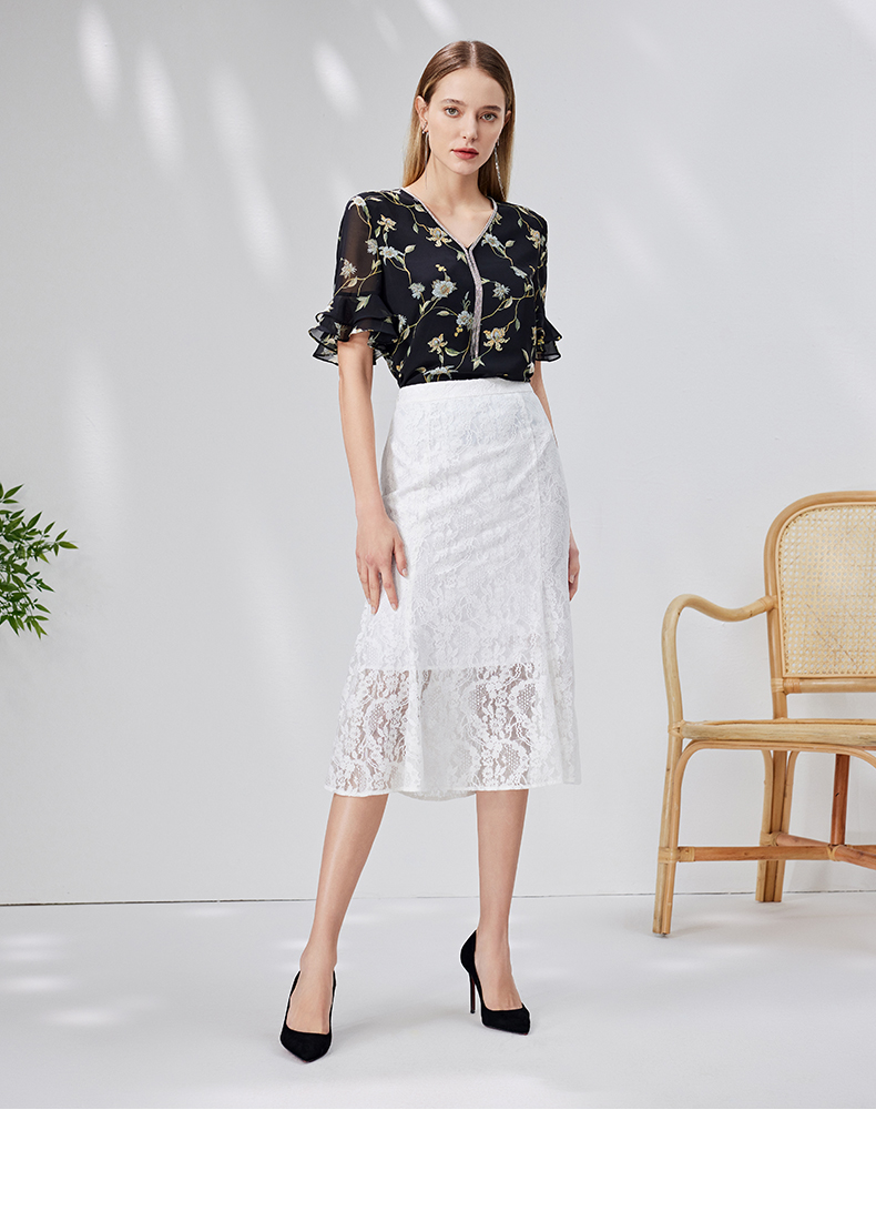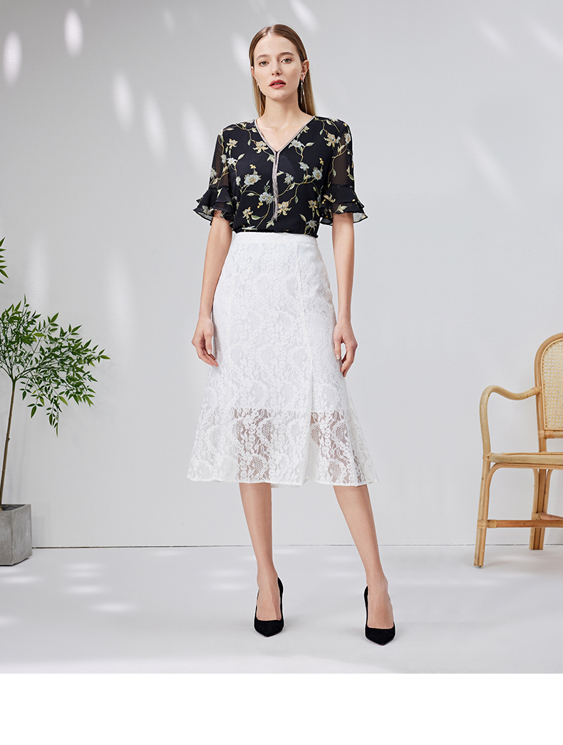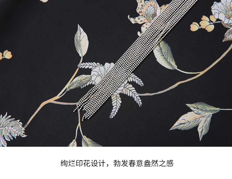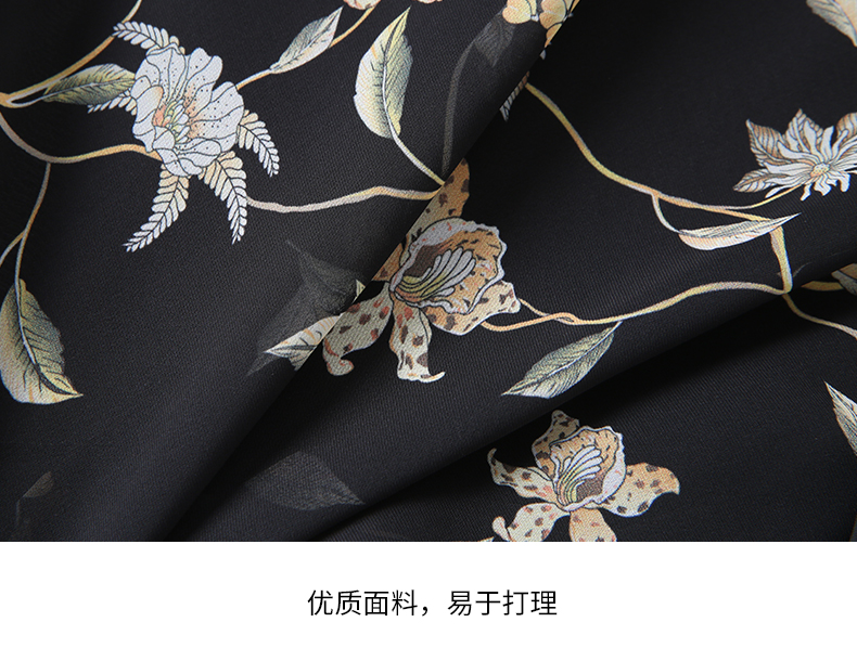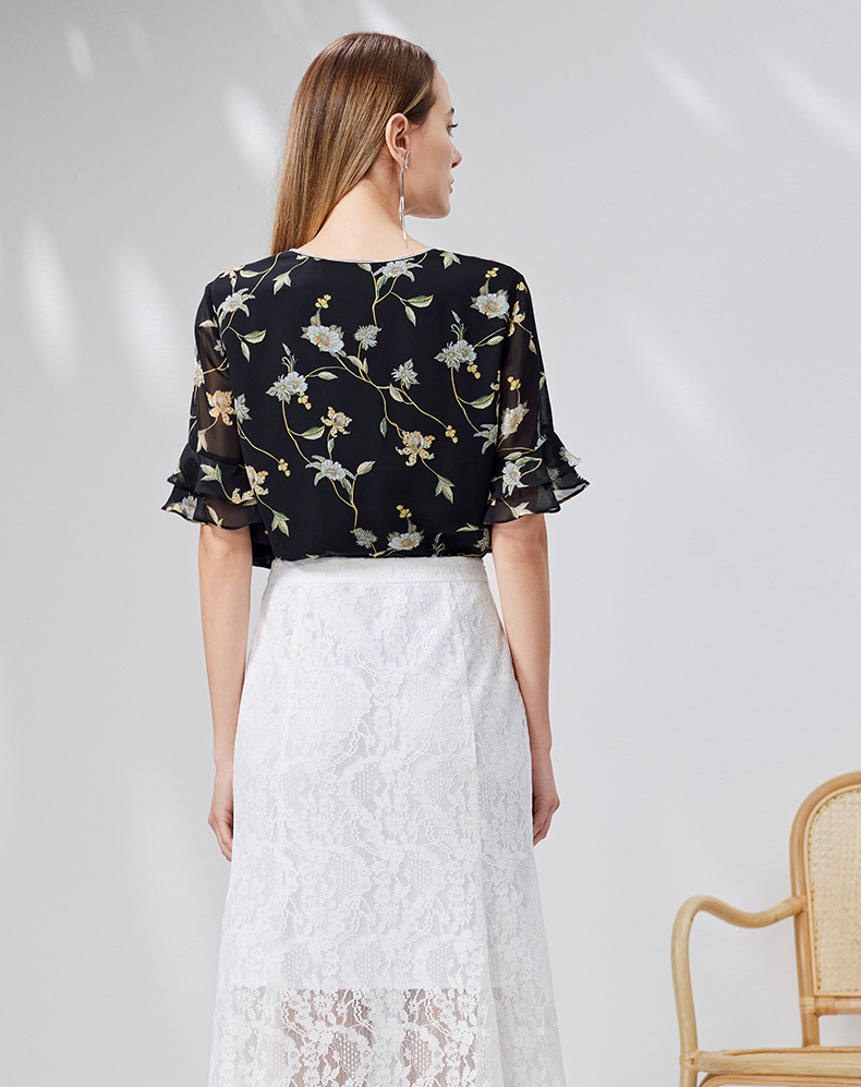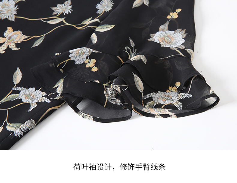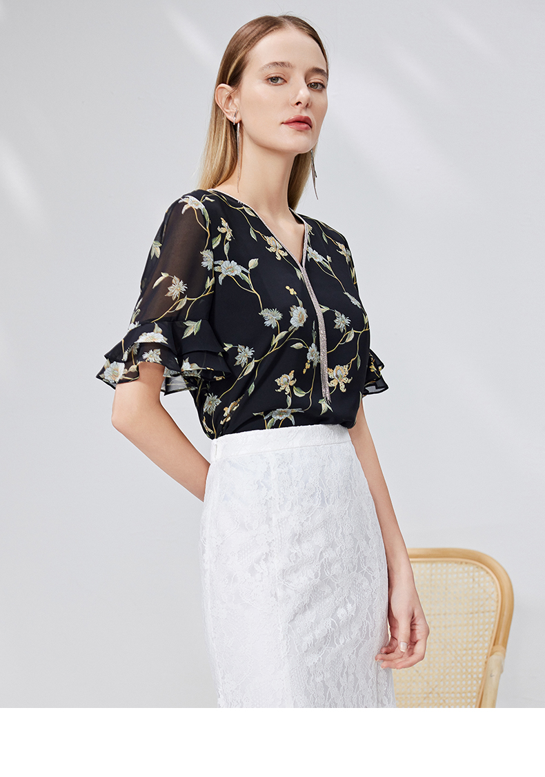 EITIE爱特爱复古法式优雅印花V领直筒短袖雪纺上衣显瘦夏季新款B13126