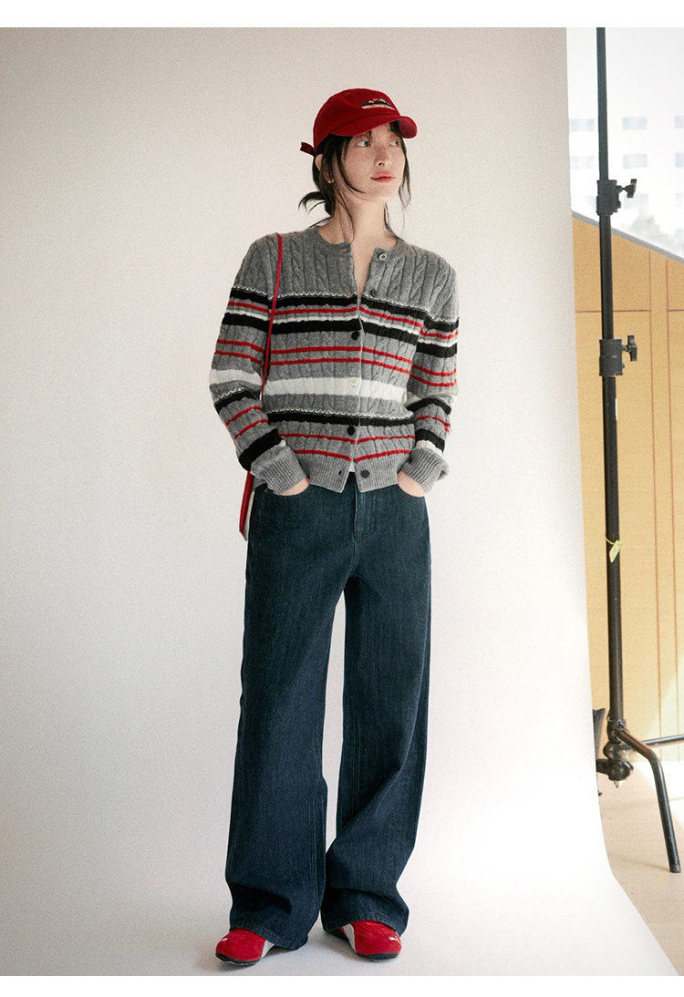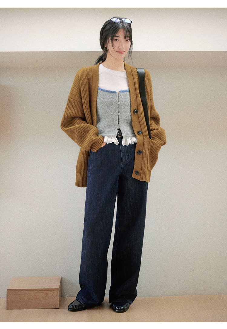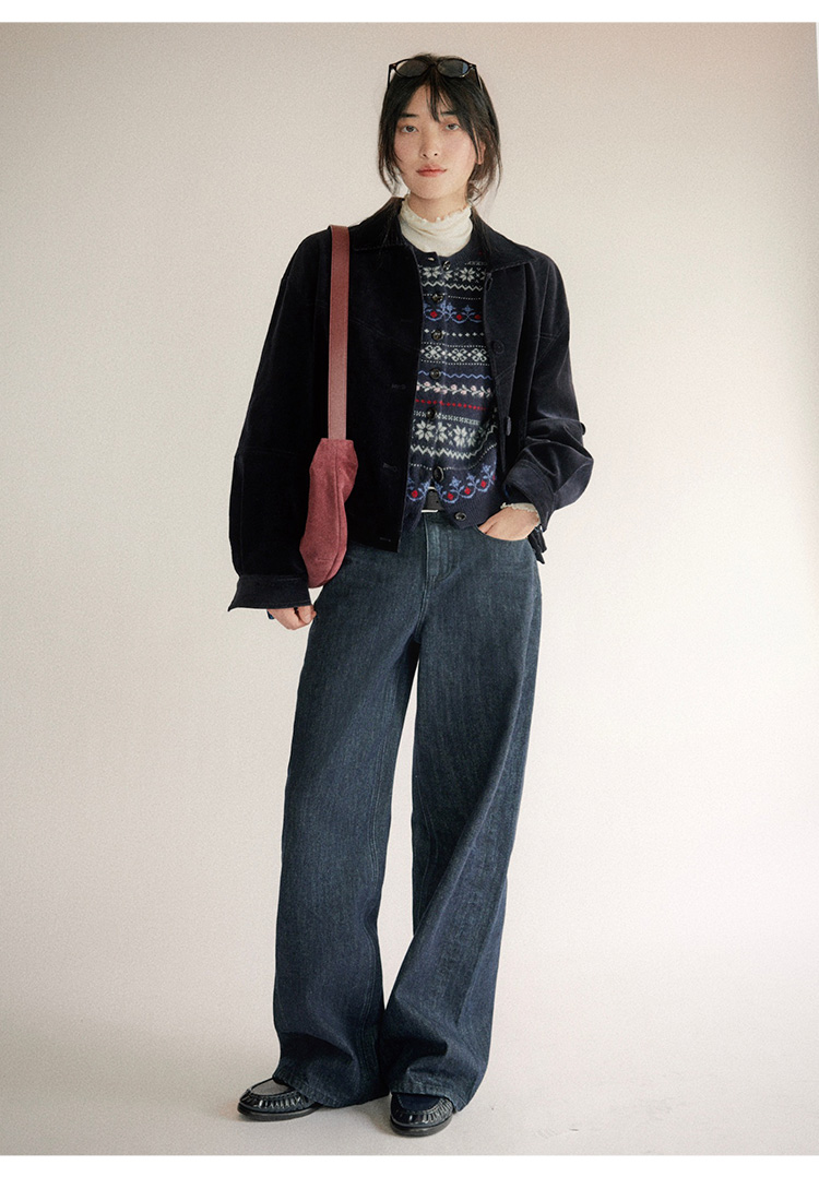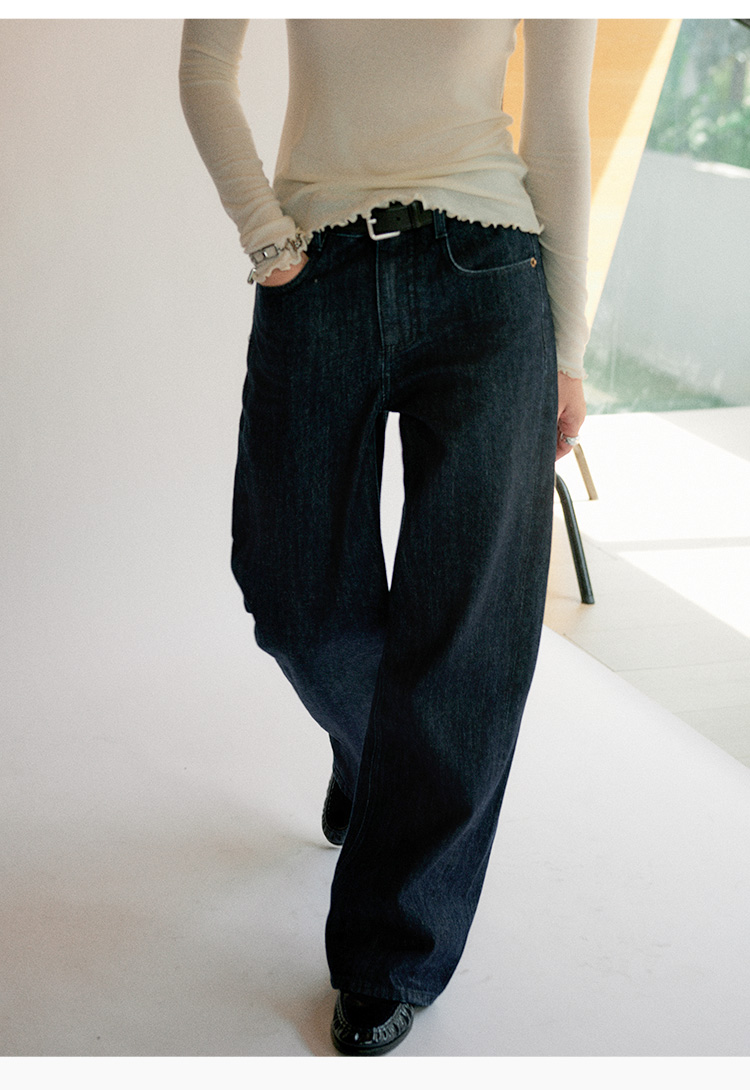【Even Vintage】复古感 赤耳原牛宽松高腰直筒长裤休闲简约牛仔裤女