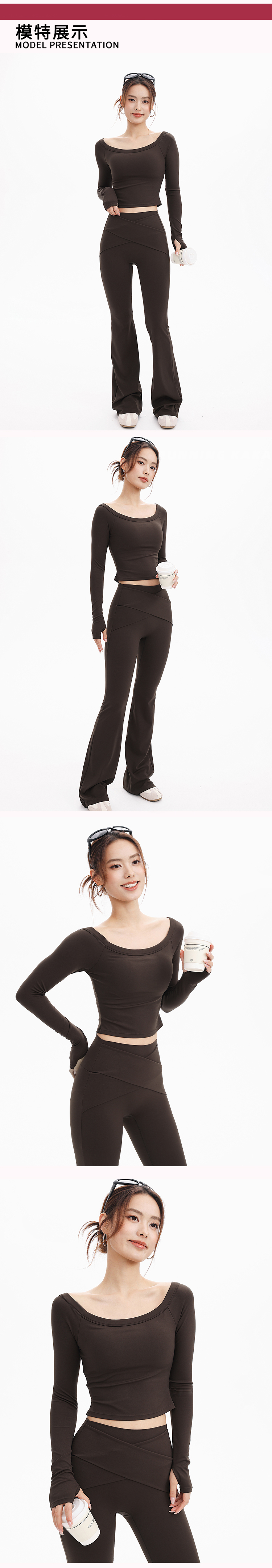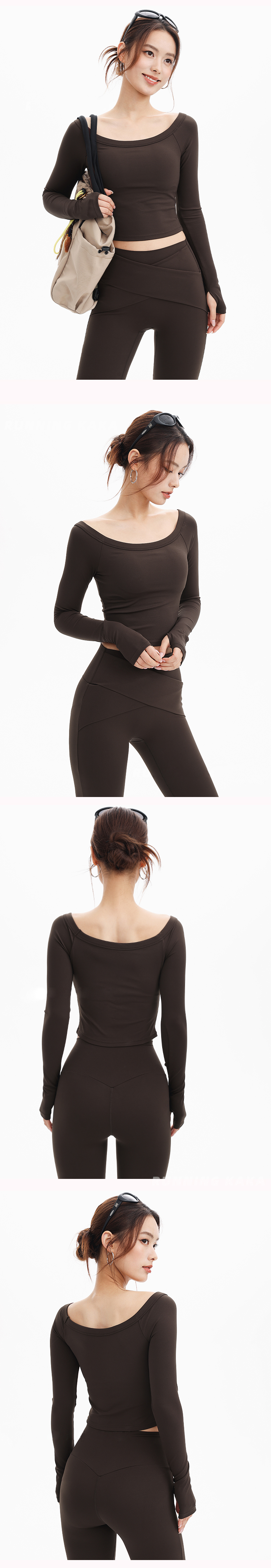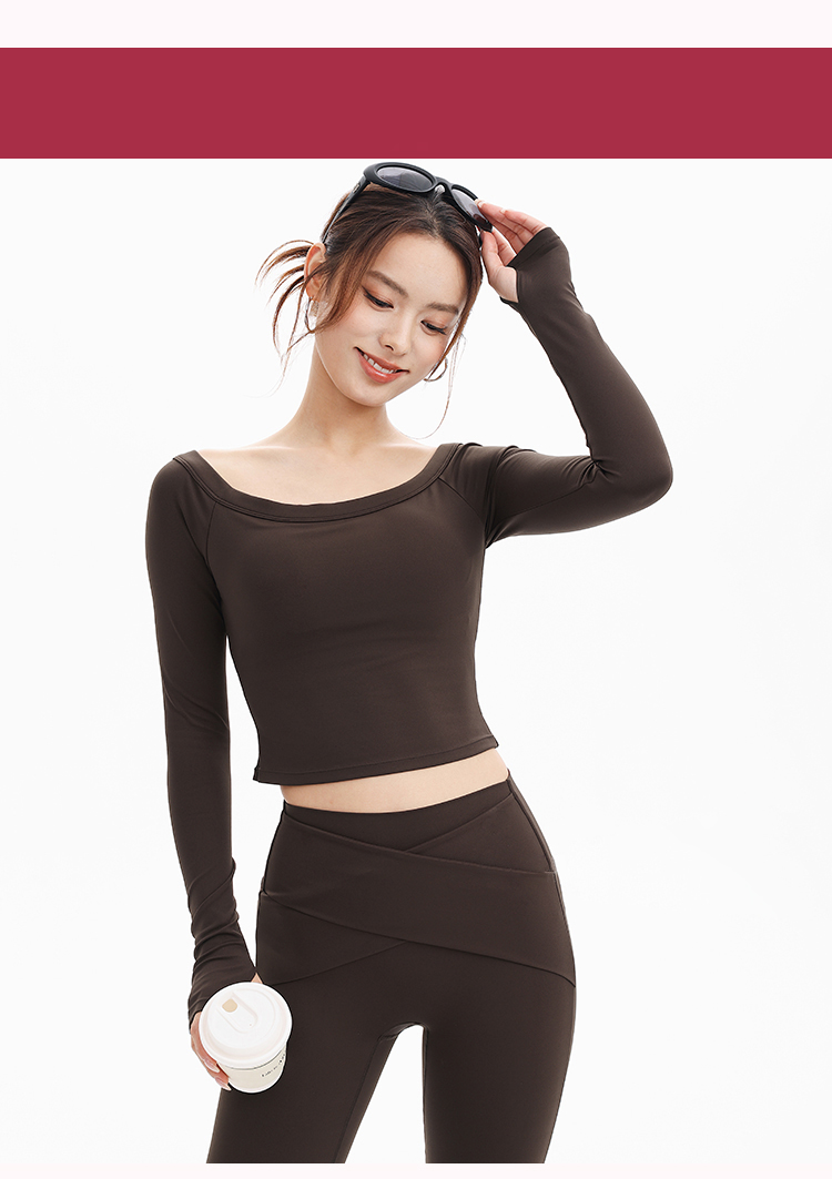 跃牌【禅语梵心】一字领瑜伽服长袖带胸垫跑步速干透气运动文胸健身服上衣CX3325