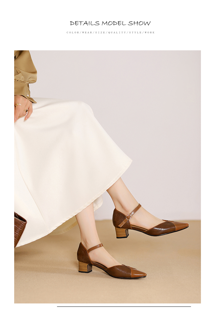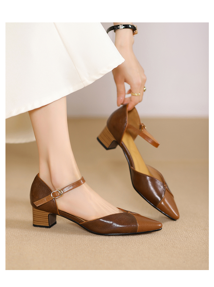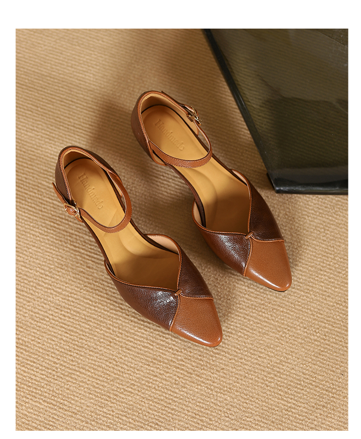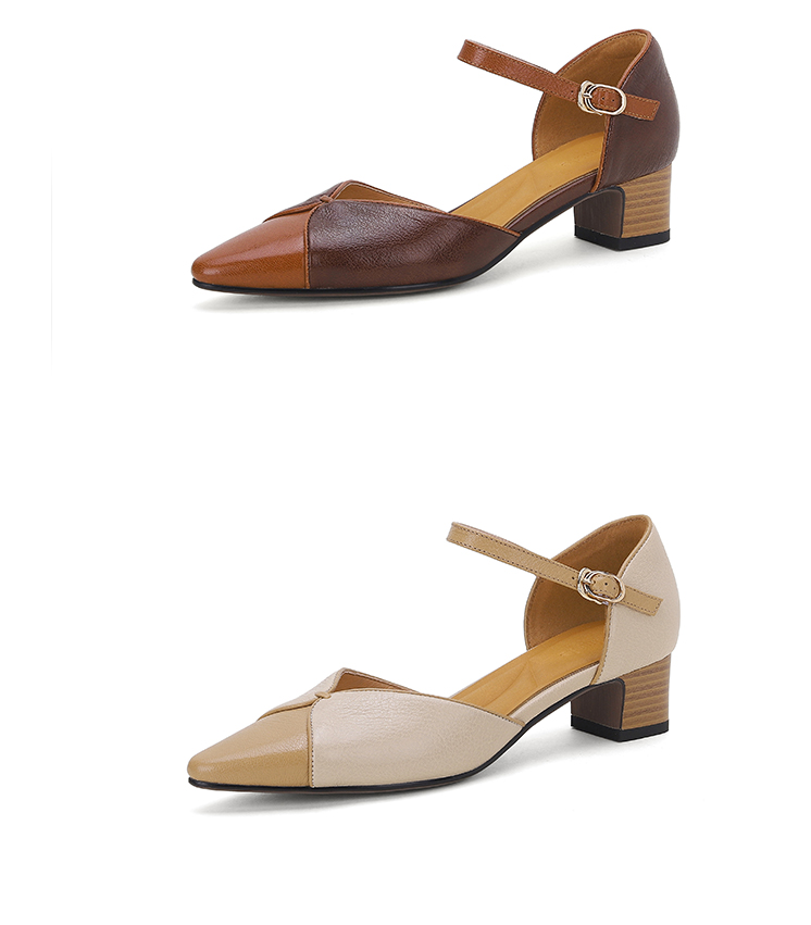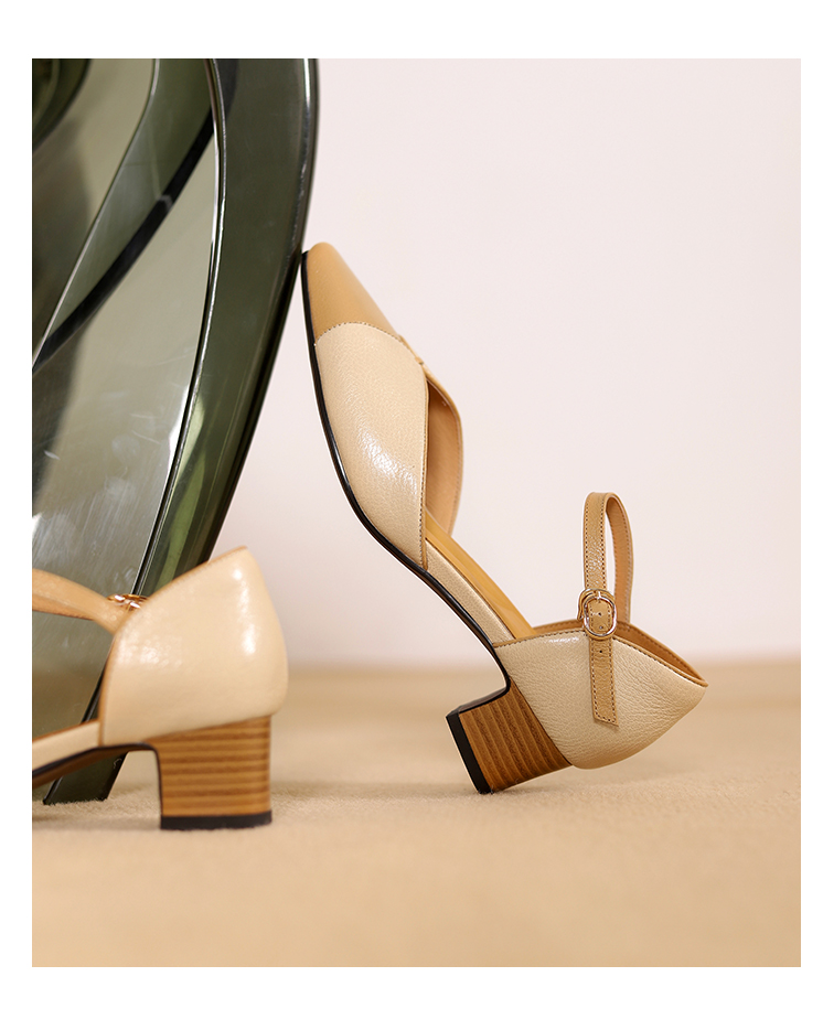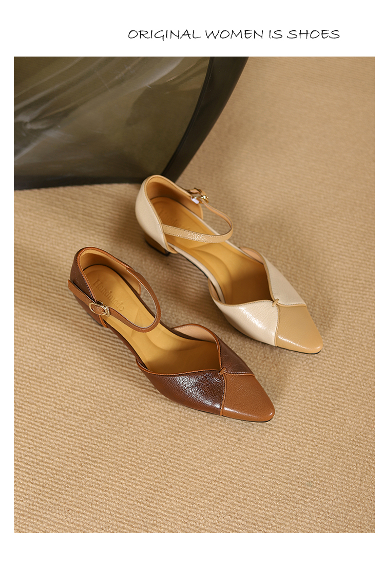 【预售5天】优雅拼接,头层羊皮尖头中控搭扣凉鞋DTN&A1107-3