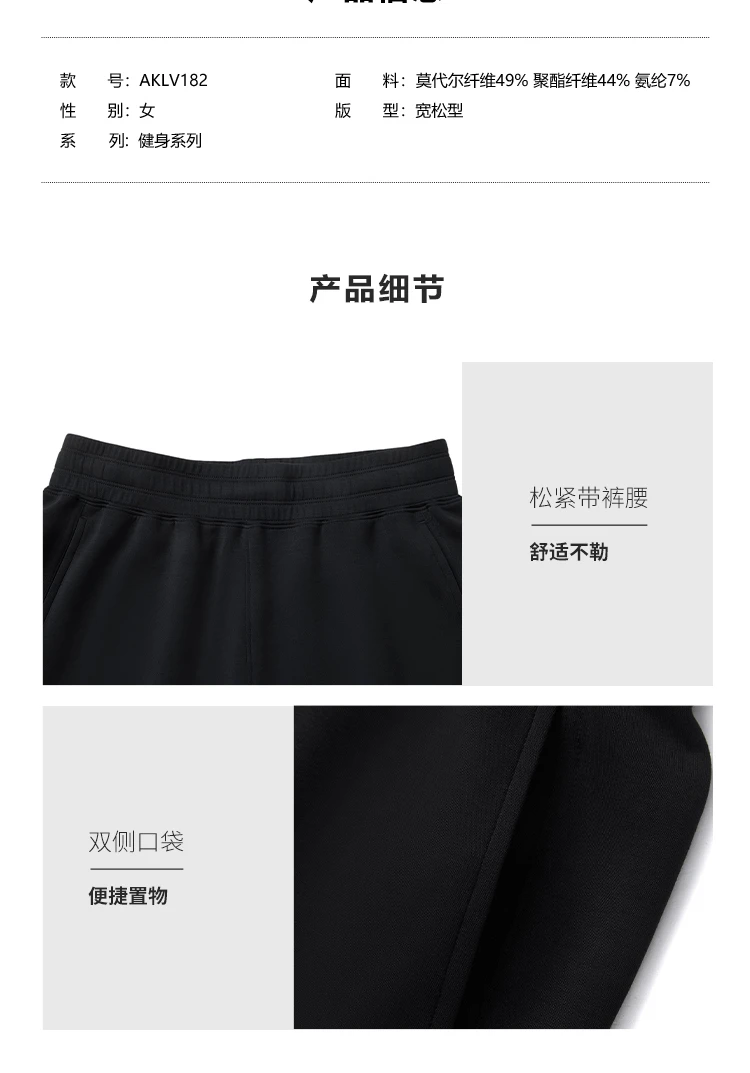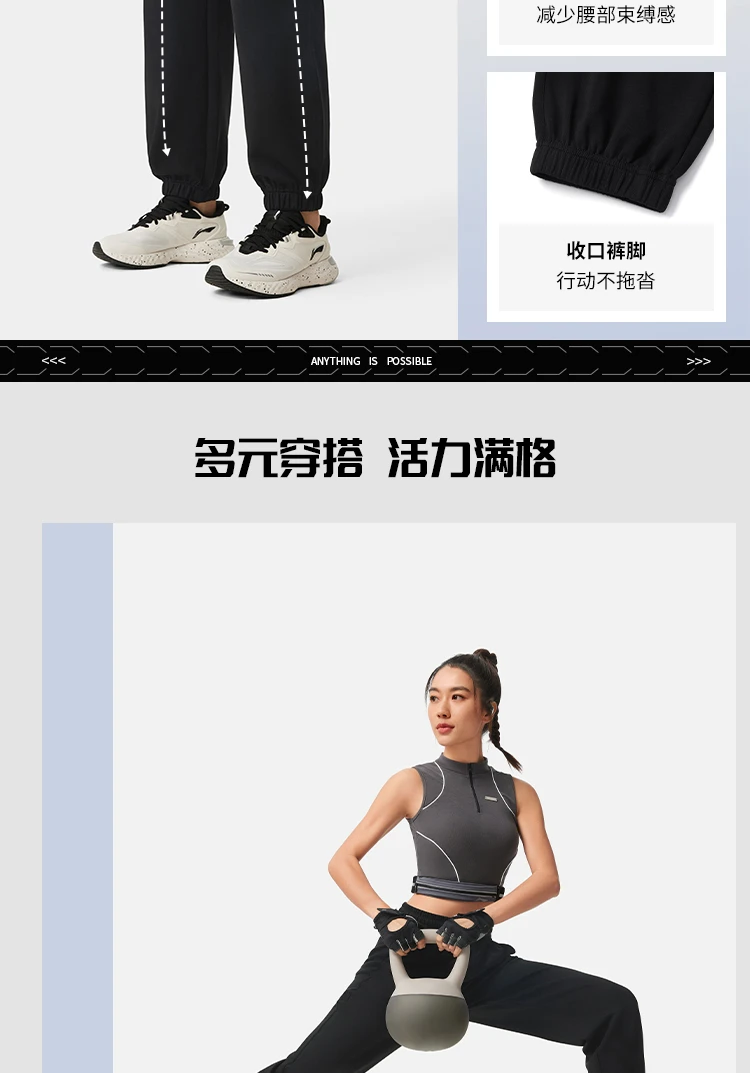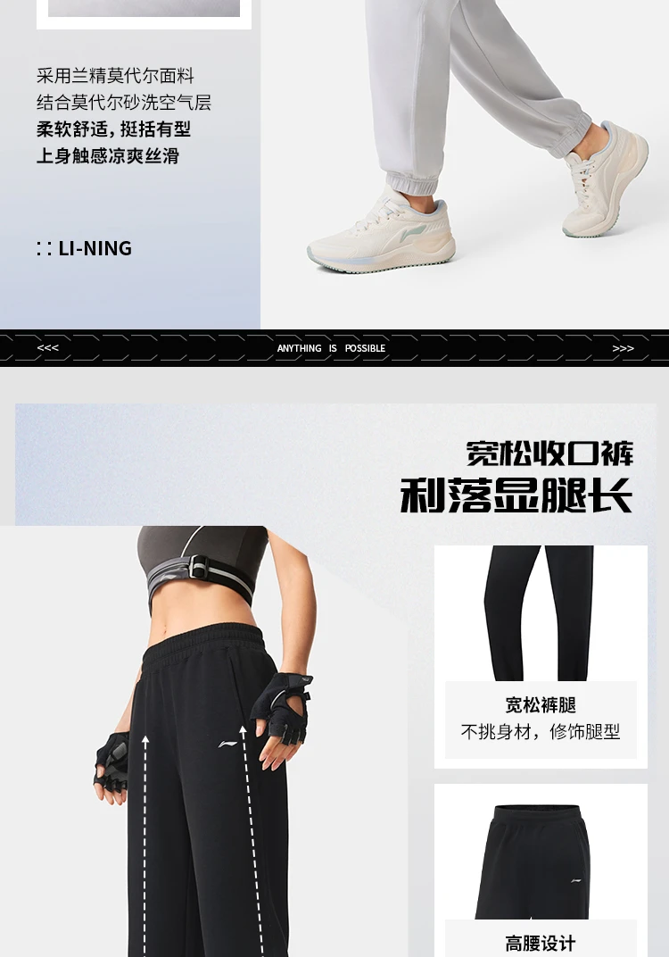 李宁健身系列女子束脚宽松卫裤AKLV182