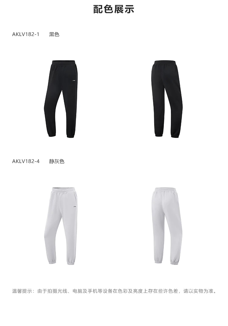 李宁男子束脚加绒保暖针织运动裤AKLV833