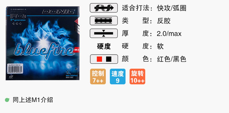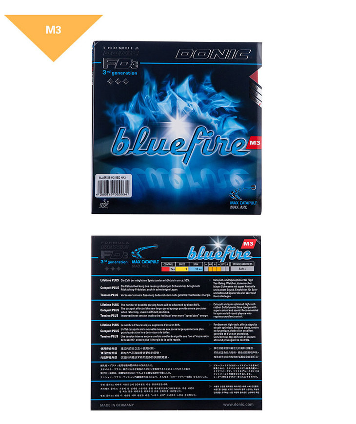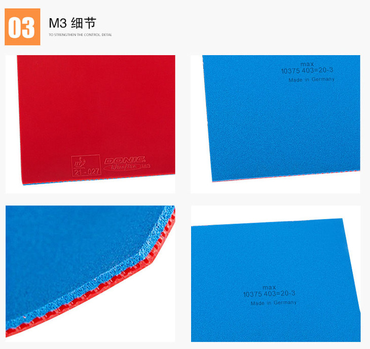 DONIC多尼克蓝火M3乒乓球胶皮(12093)德系软弹反手用蓝色火焰涩性反胶乒乓球套胶
