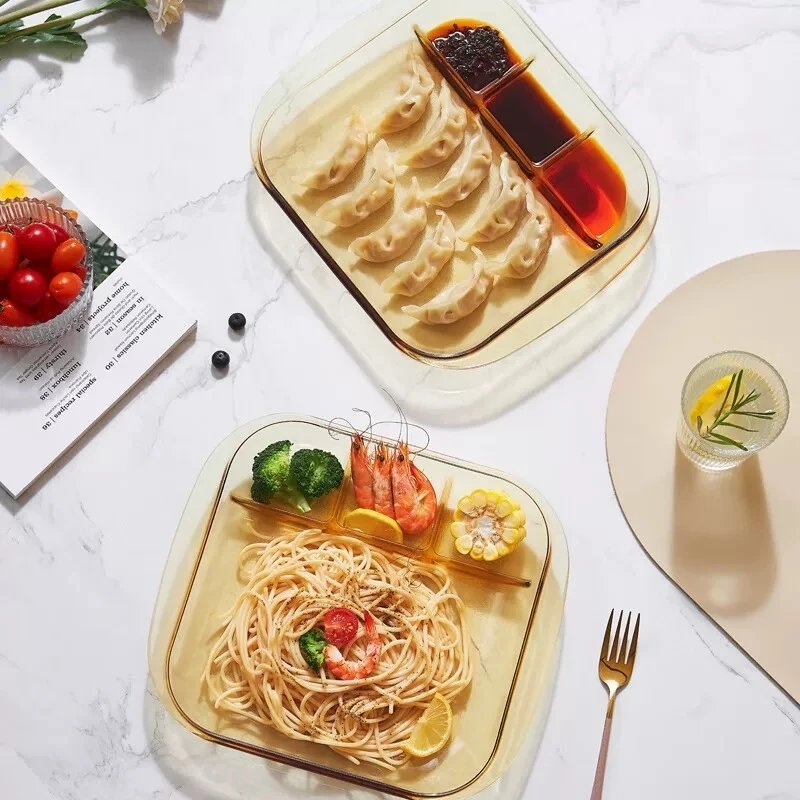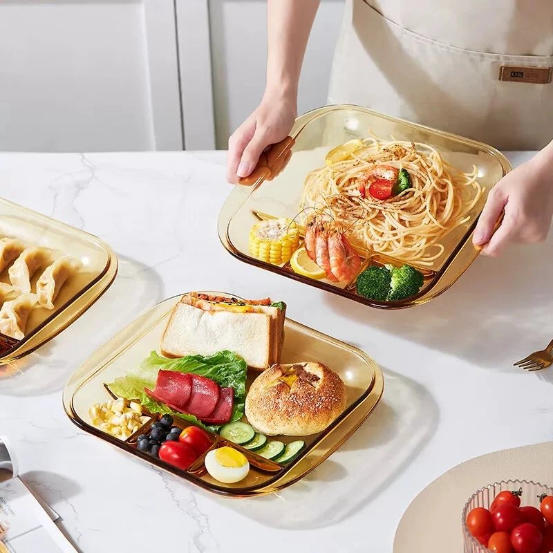 2个到手59.9,康宁琥珀色分格餐盘 高硼硅玻璃材质 耐高温防爆裂 坚硬耐磨抗摔 内壁光滑不粘污 一冲即净 清洁超省的心基地直邮
