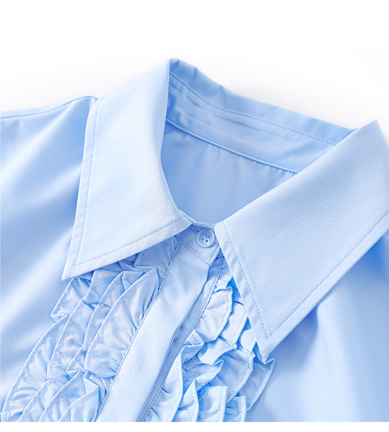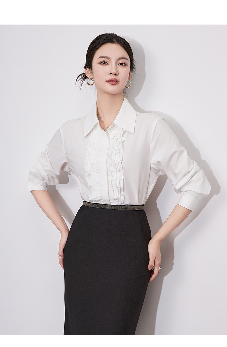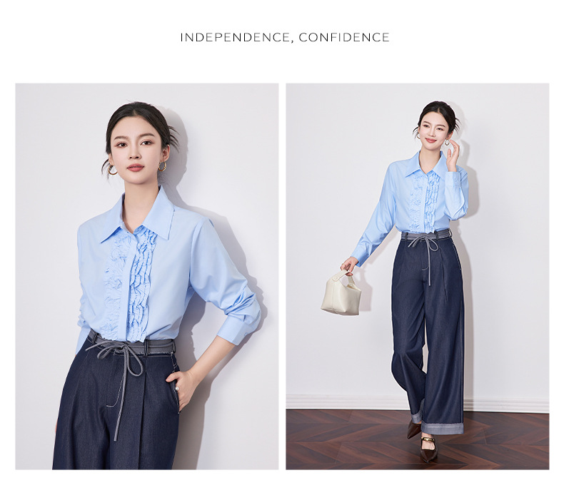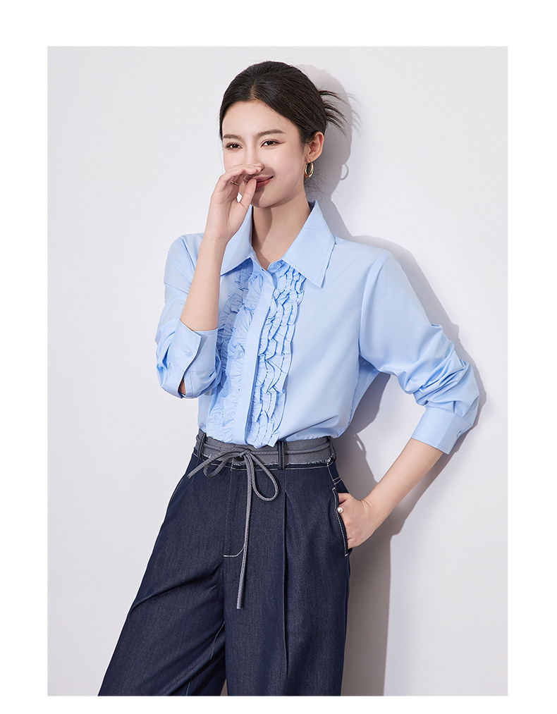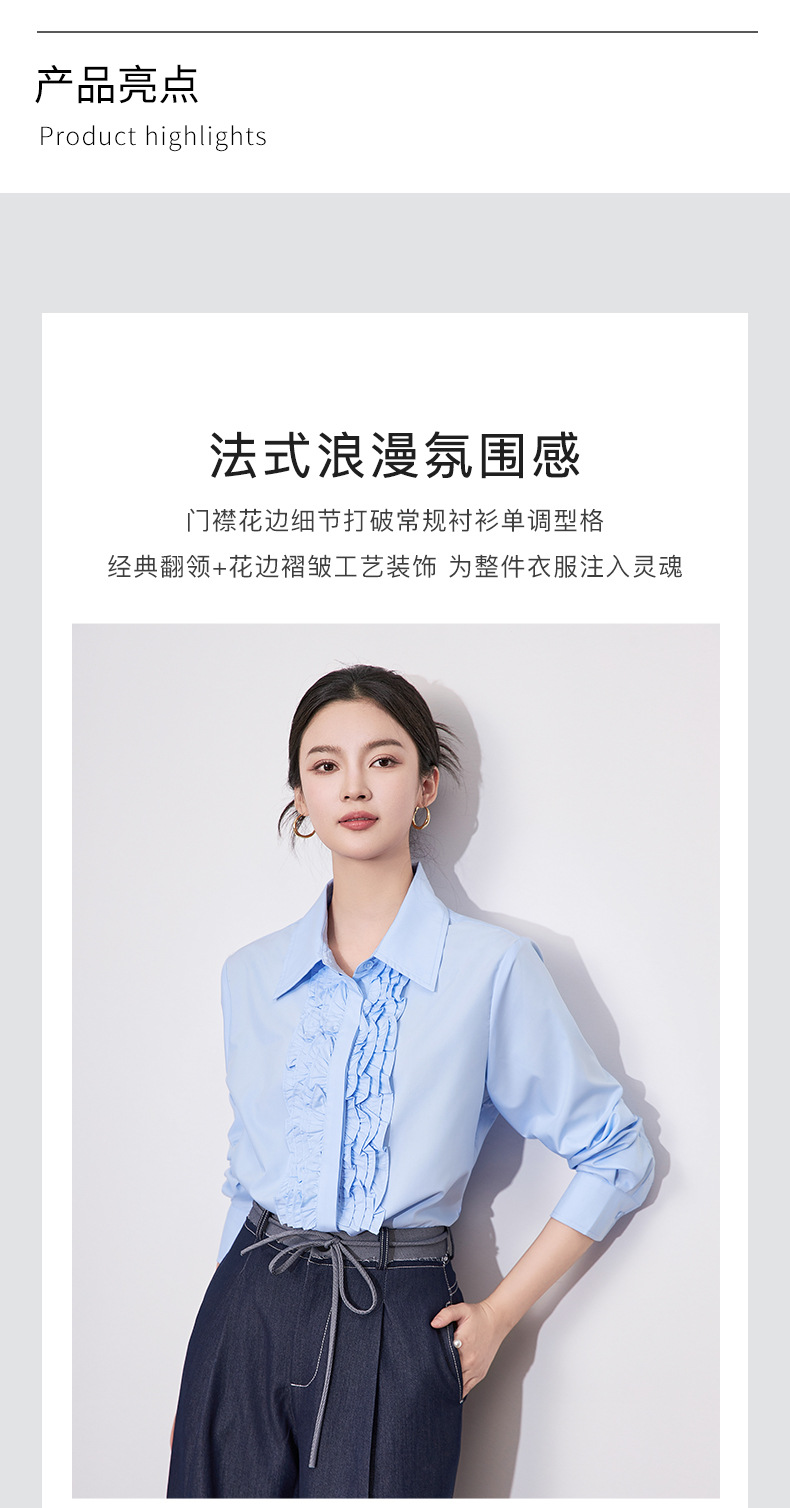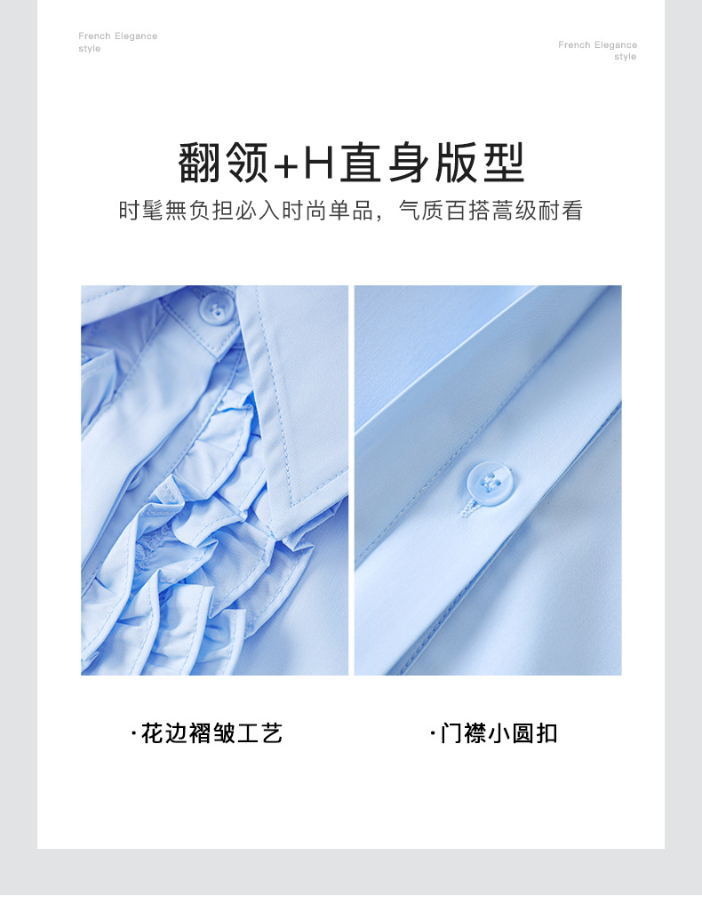 【高货wl】全新升级【铂金会员257/天猫339/差价82】(21239) 洛诗琳2025春季高级感气质时尚翻领简约通勤荷叶边衬衫女