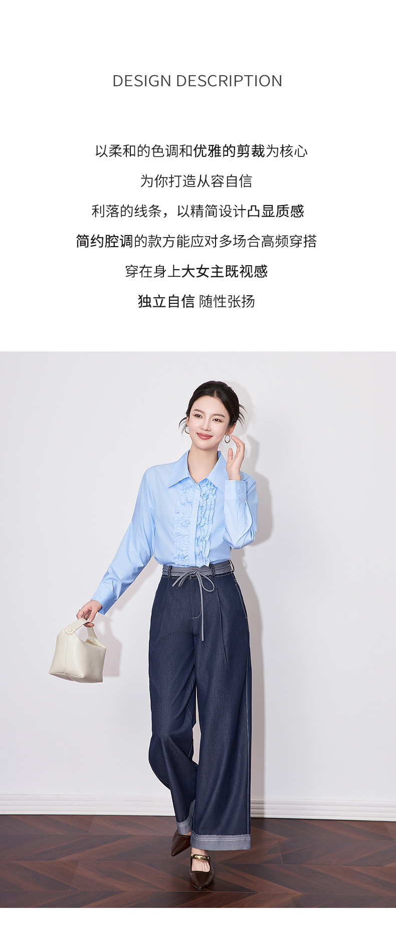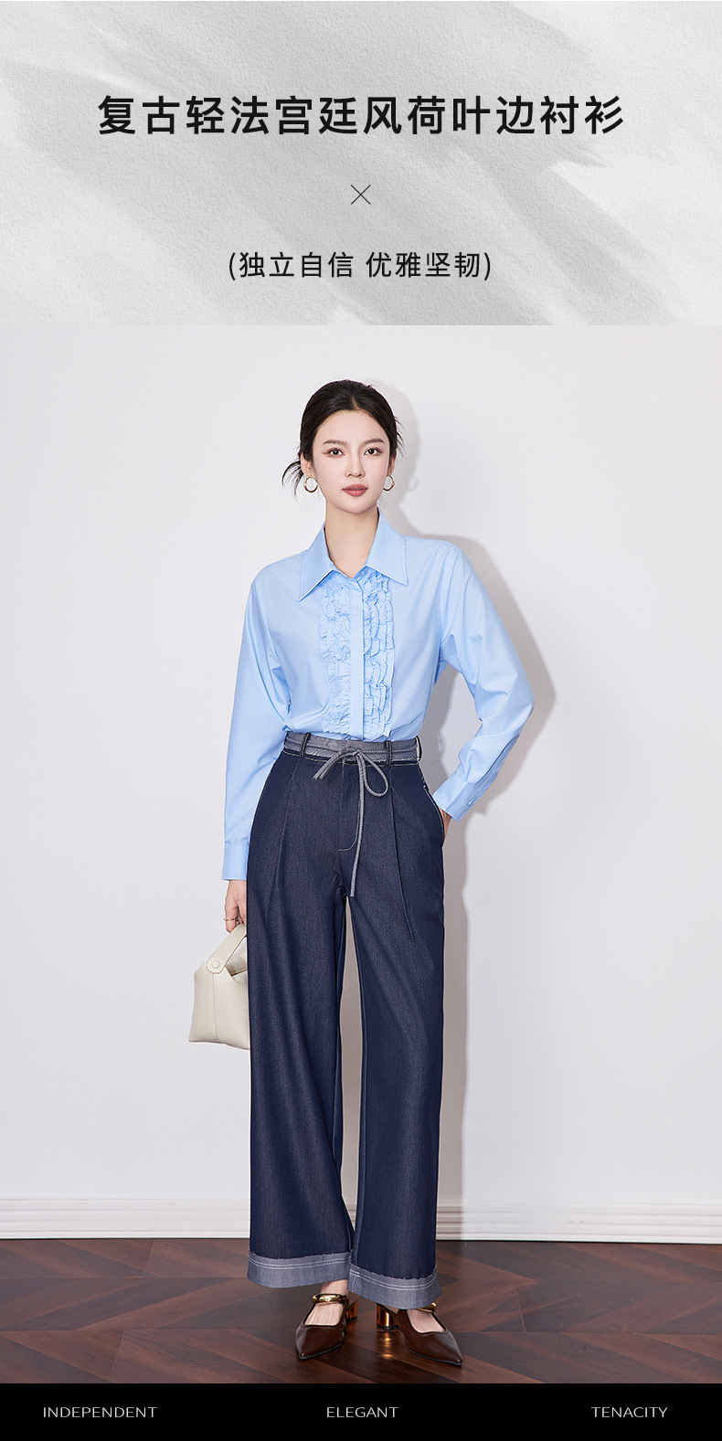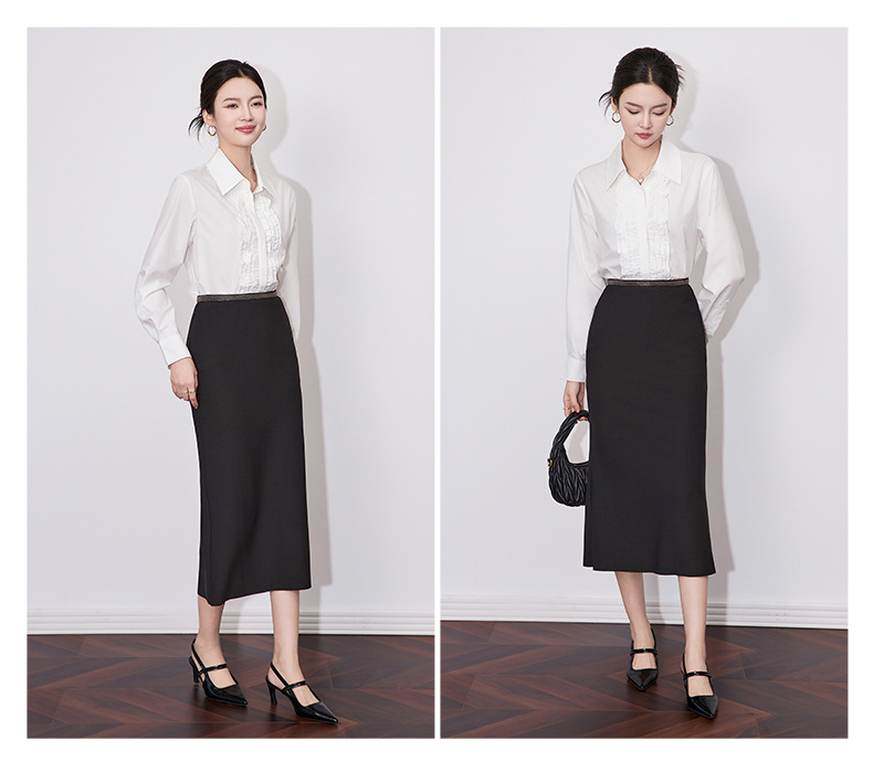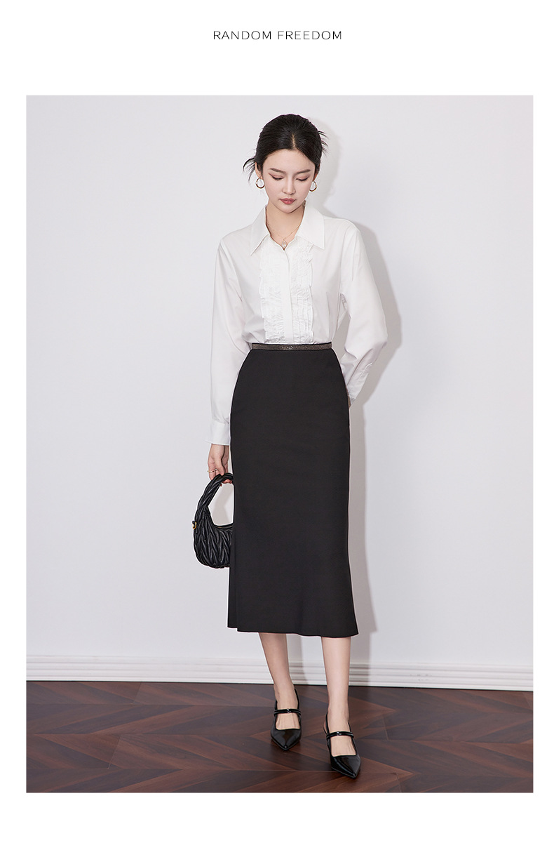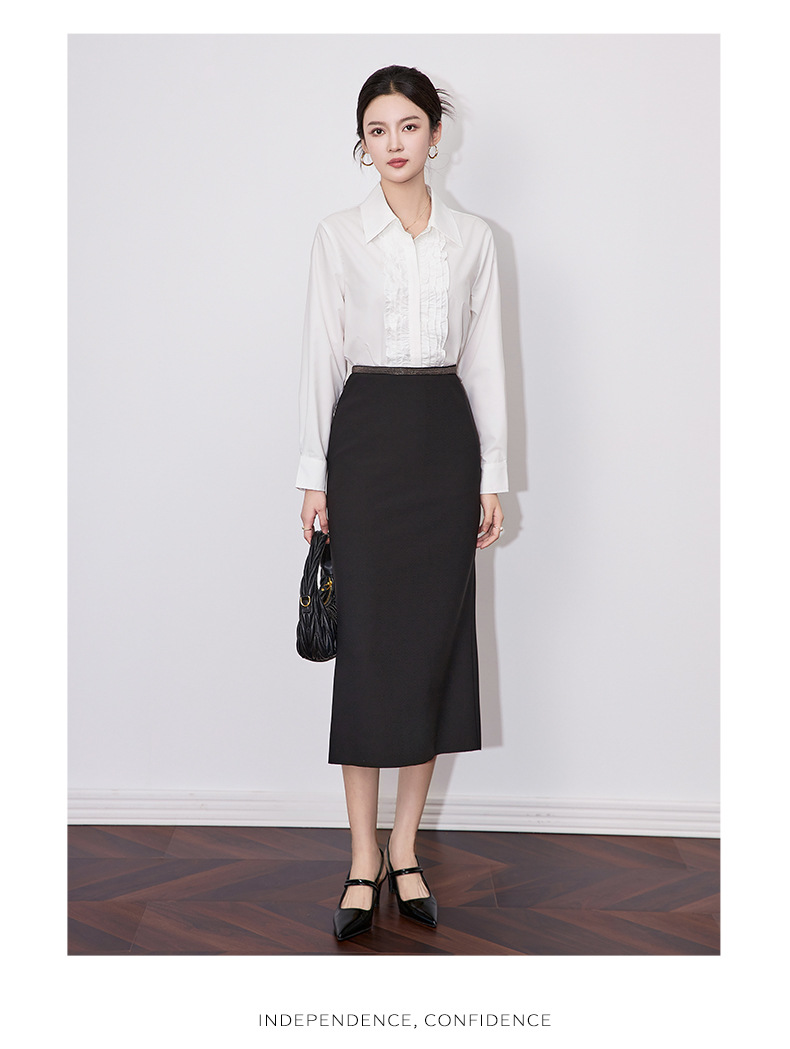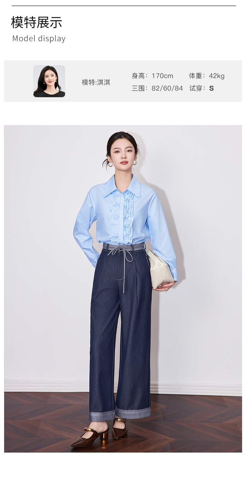 【高货wl】全新升级【铂金会员257/天猫339/差价82】(21239) 洛诗琳2025春季高级感气质时尚翻领简约通勤荷叶边衬衫女