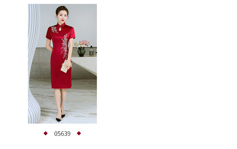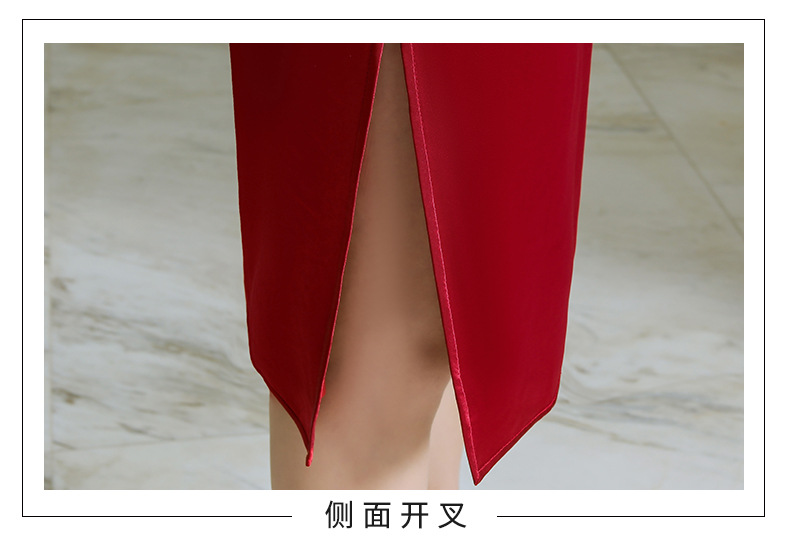 YS-05639旗袍连衣裙洋气高贵醋酸缎镶钻重工礼服宴会礼服