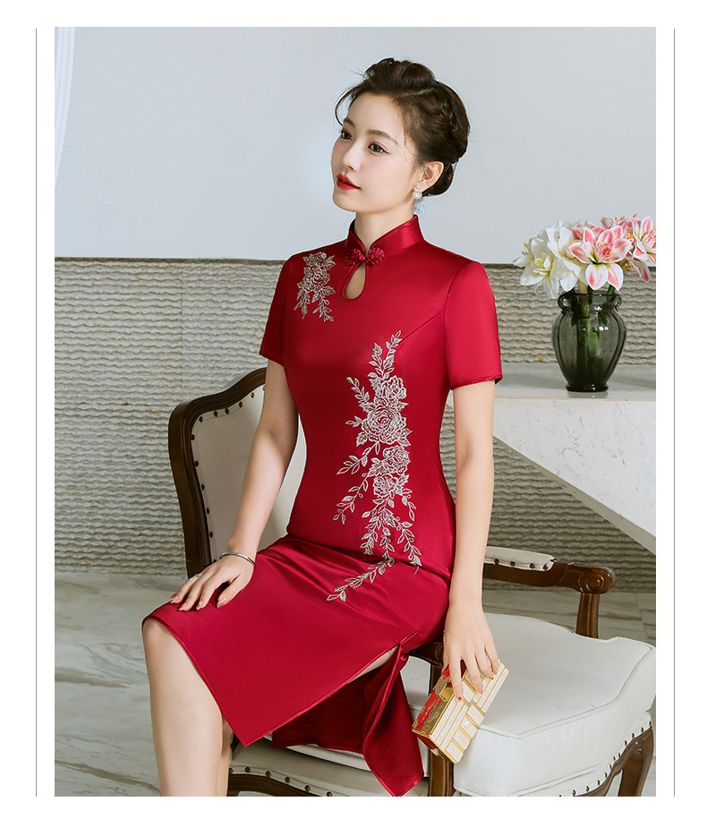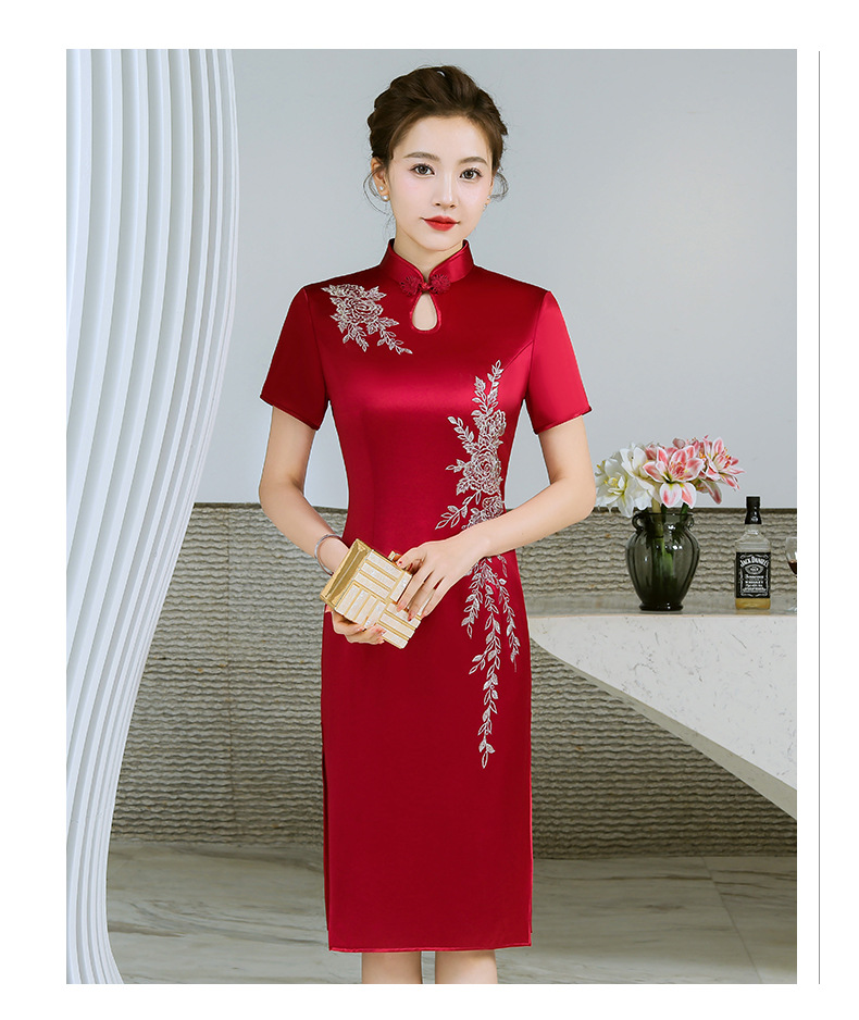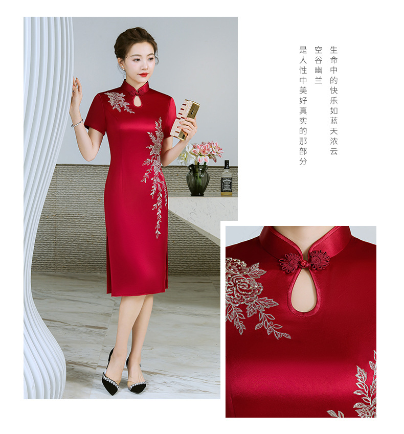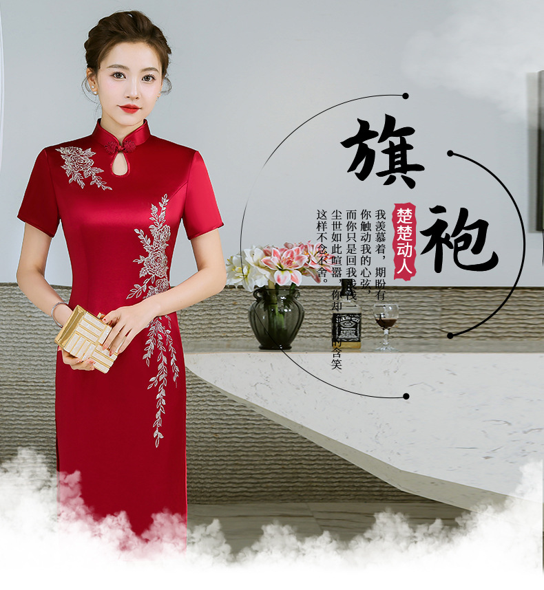 上海旗袍厂LHS-L9080绣花妈妈装婚宴婚庆旗袍喜婆婆婚礼喜事丈母娘旗袍裙