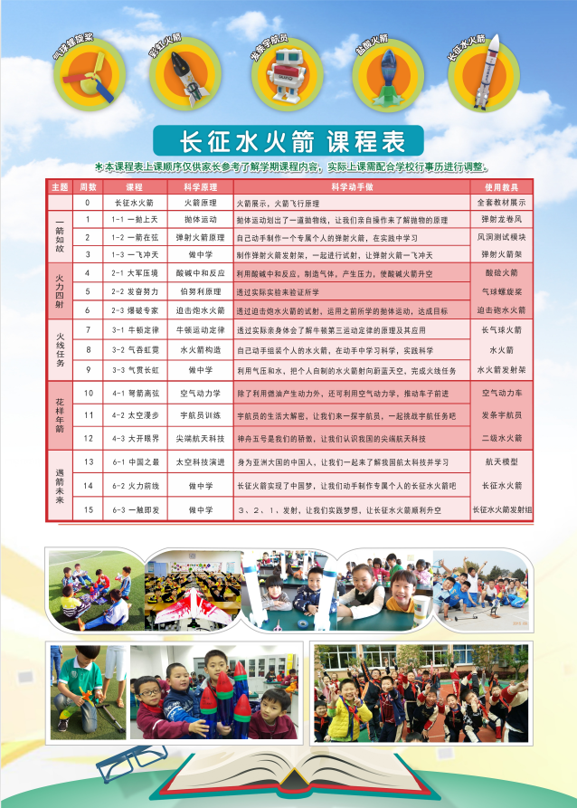 本学期【力翰科学】一年级课程均在校内完成,上课主题为《长征水火箭》,课程费用为450元。 家长们可以直接在此链接进行微信支付哦,感谢各位家长们的配合!