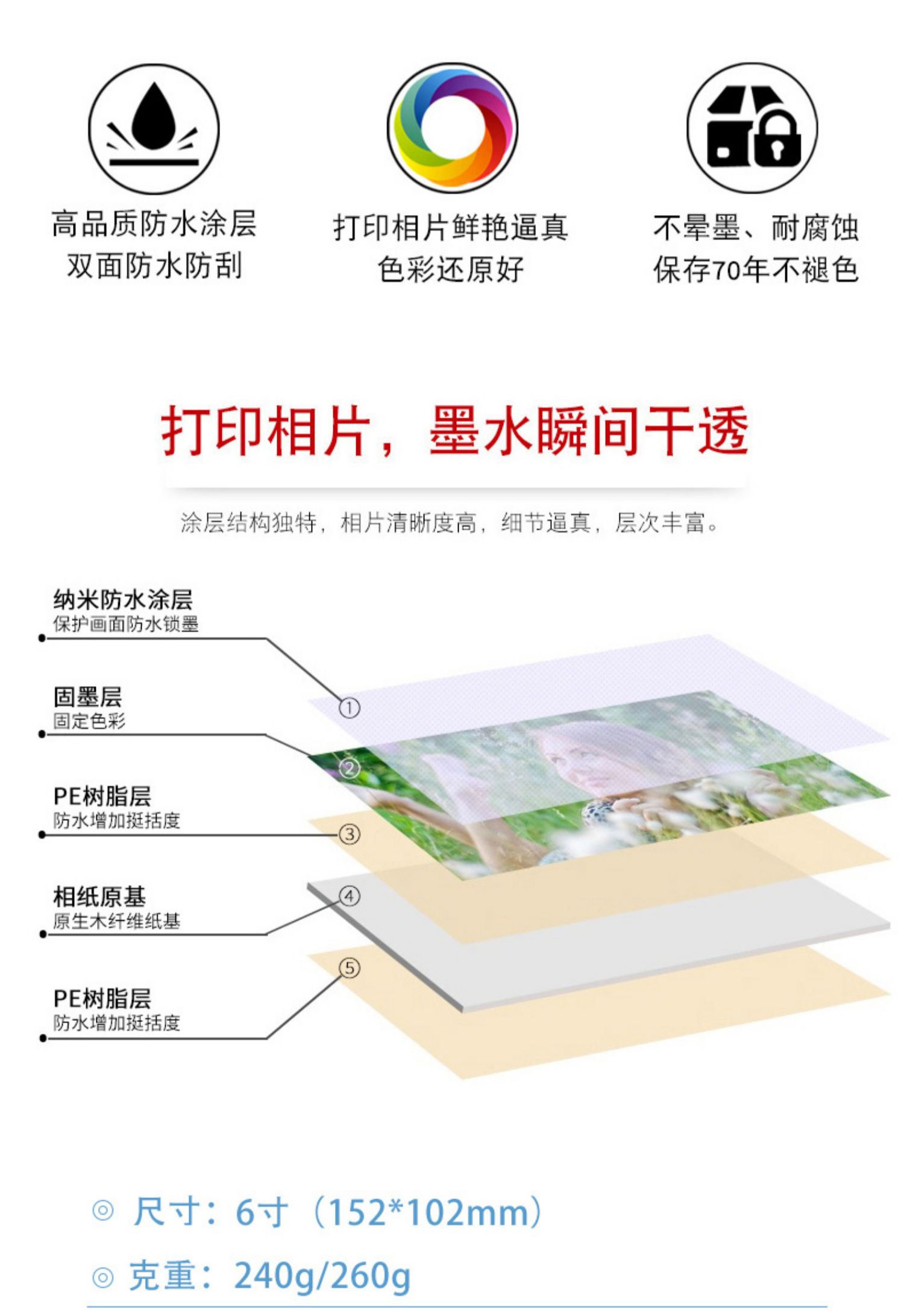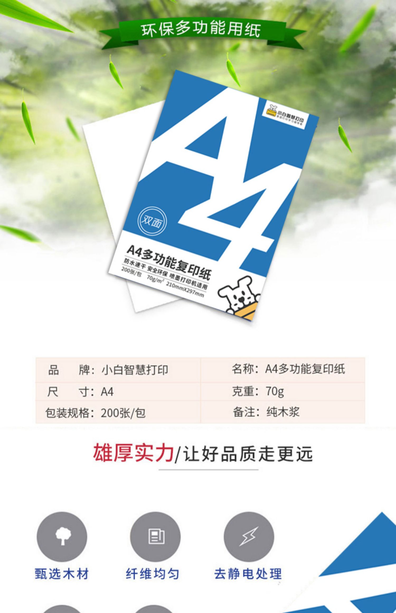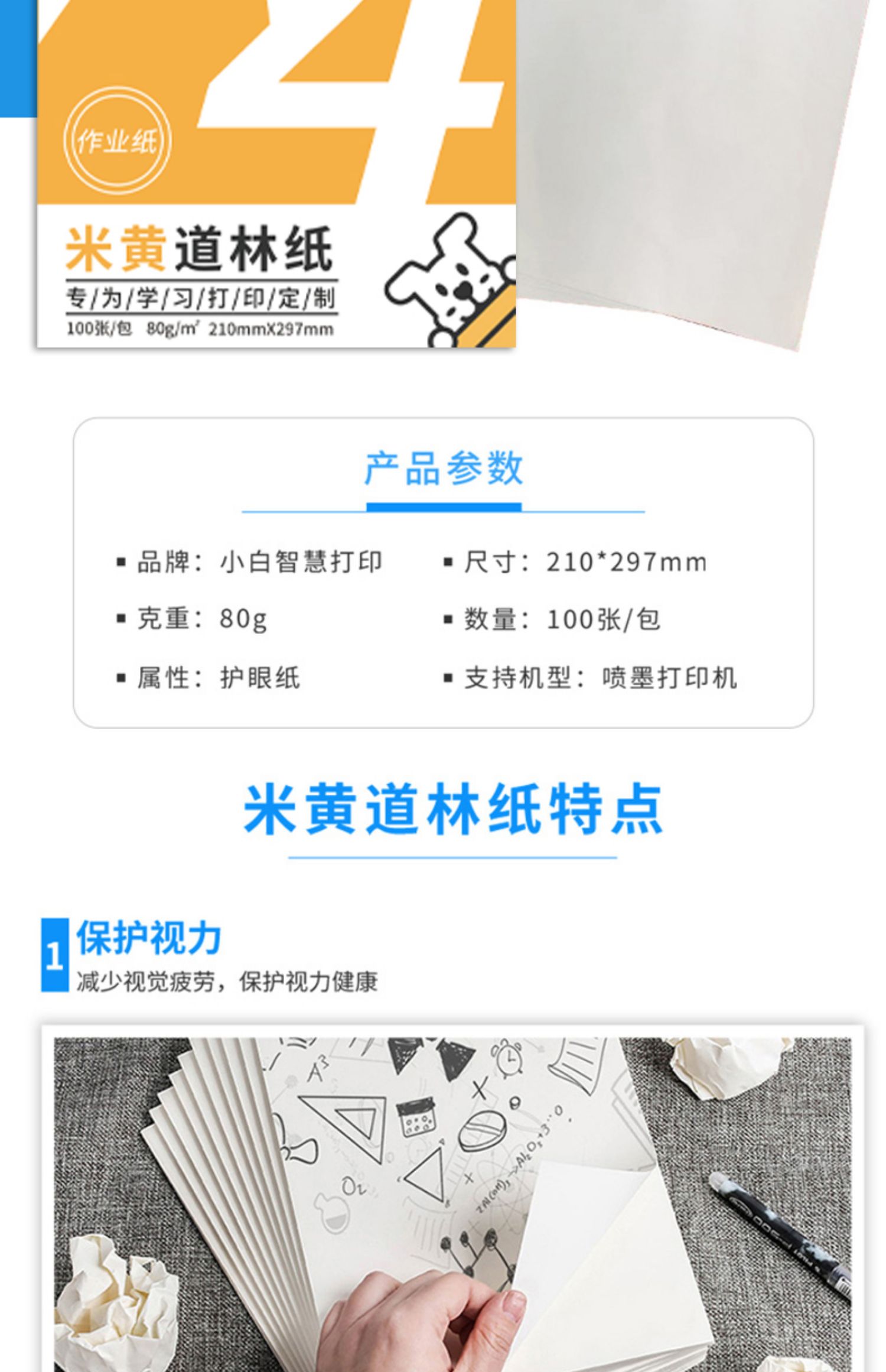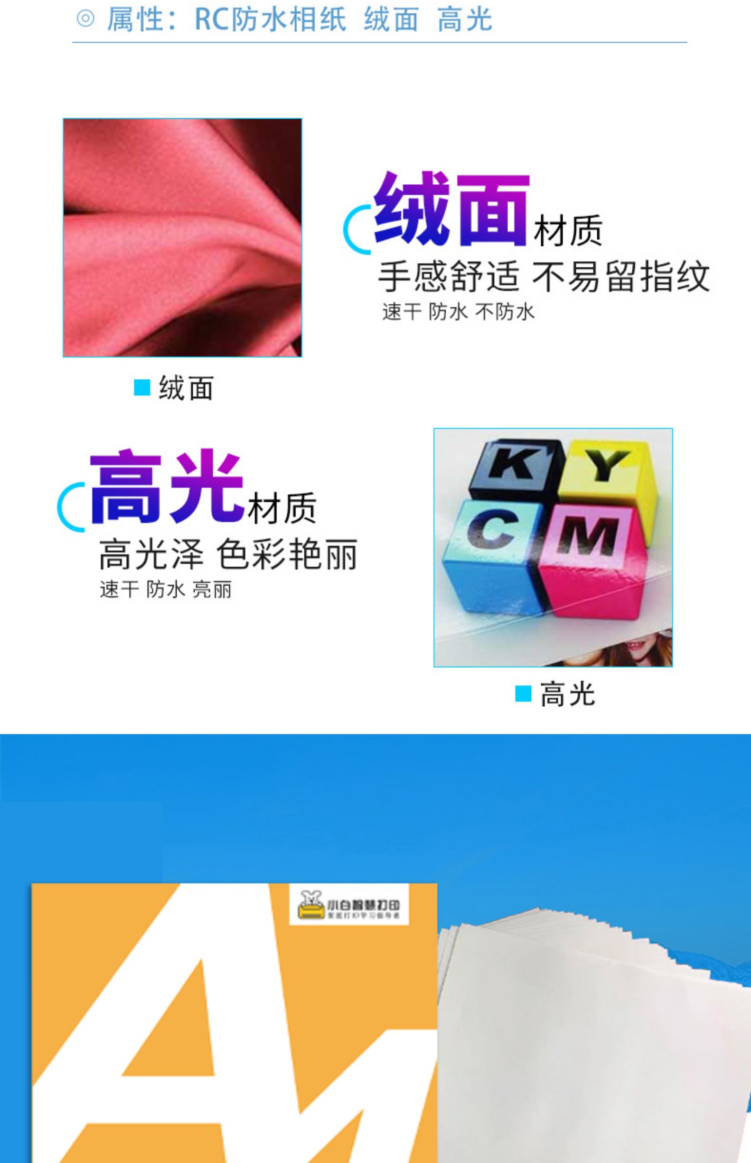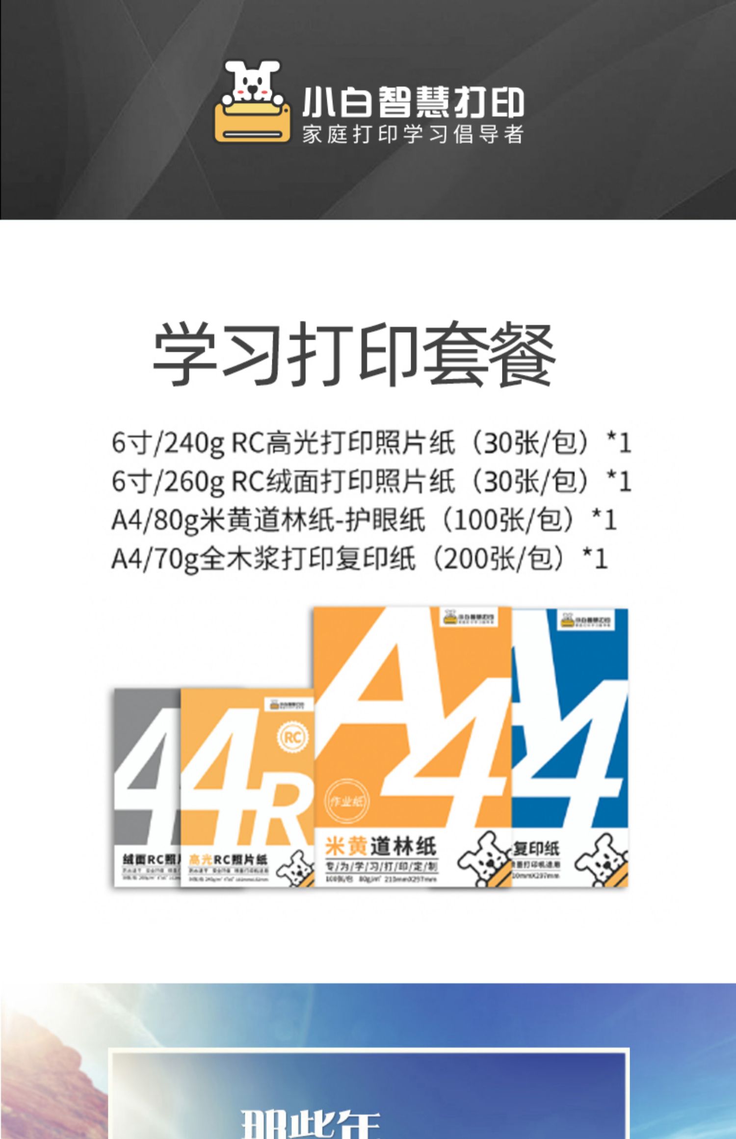 小白智慧打印 小白学习打印耗材套餐(6寸高光+6寸绒面+复印纸+道林纸)照片 作业 文档 试卷