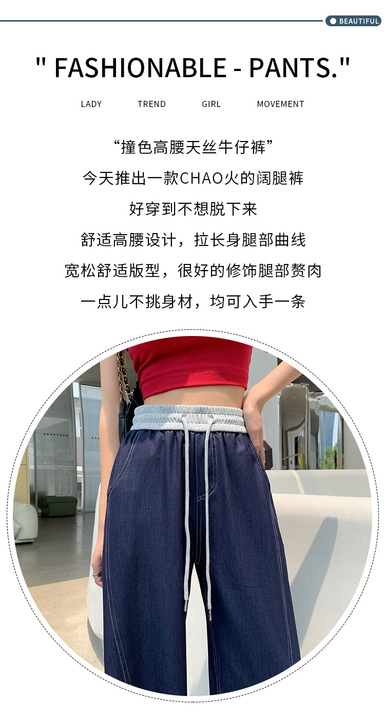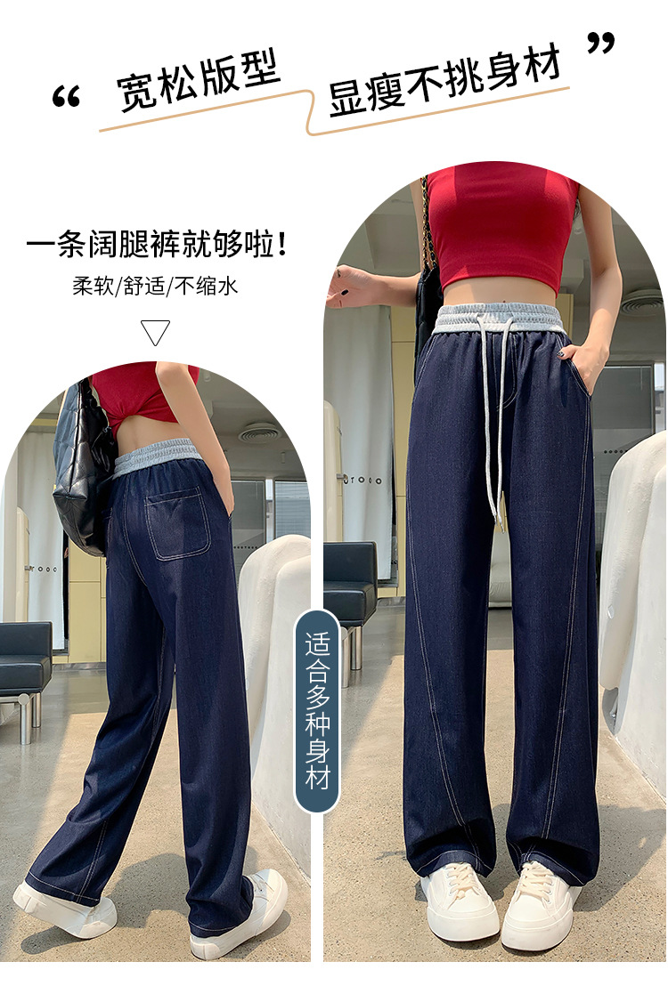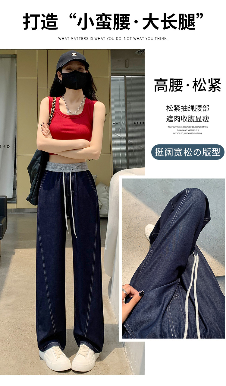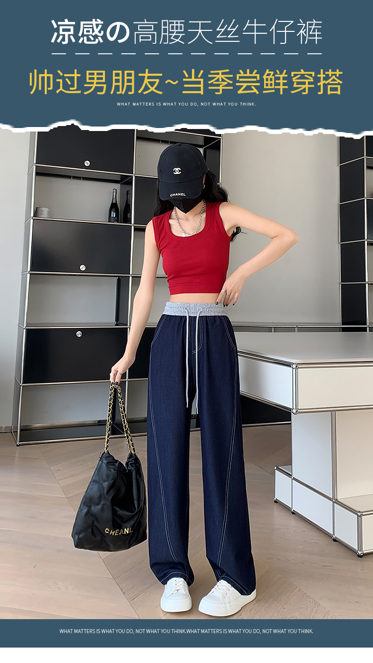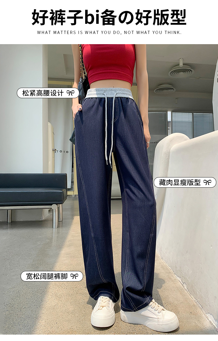 雀说天丝牛仔直筒裤女新款长裤休闲高腰宽松香蕉阔腿裤子ALA1060