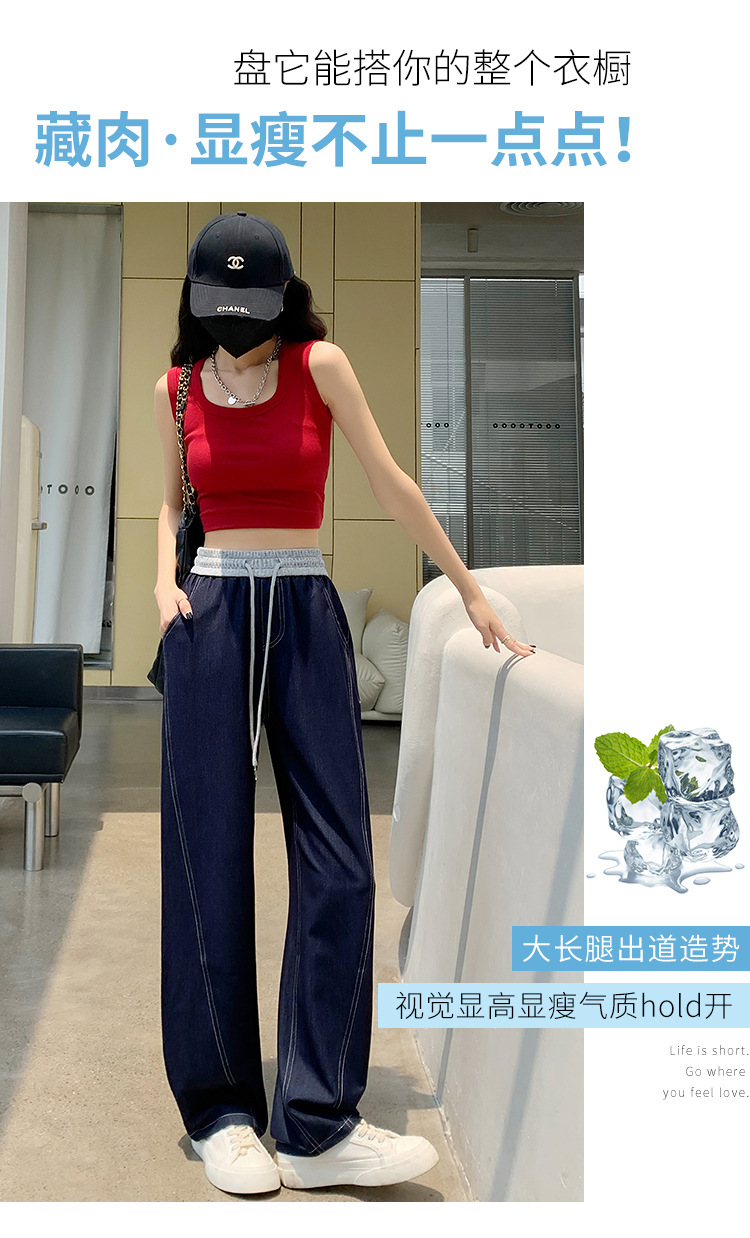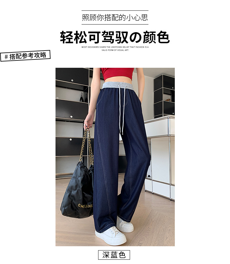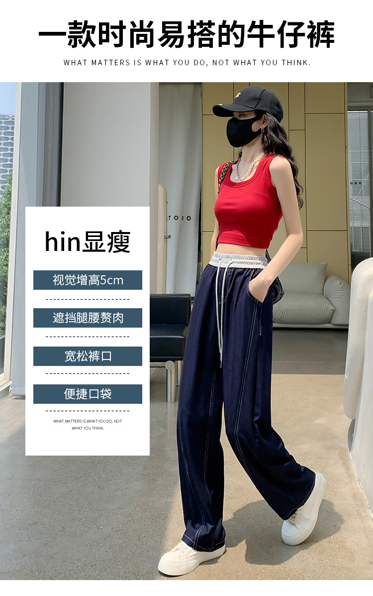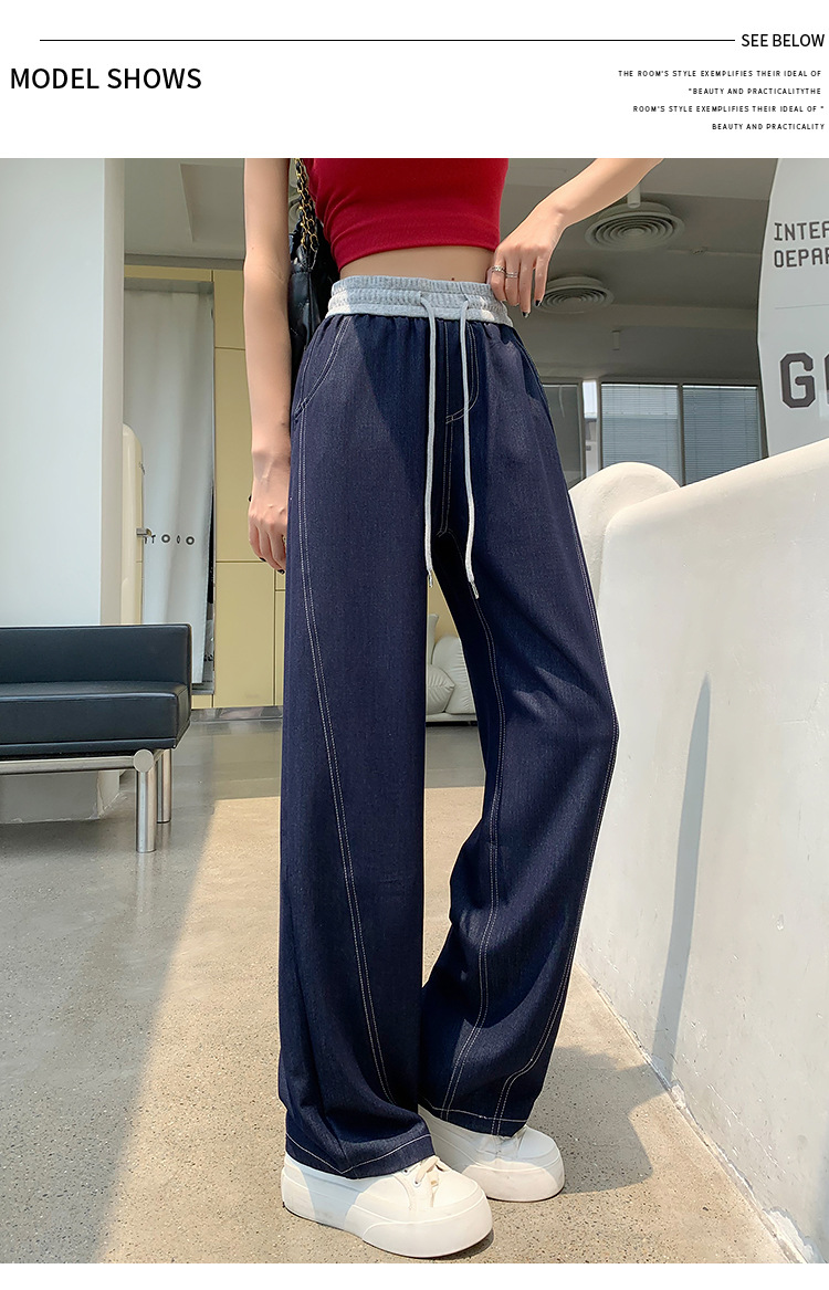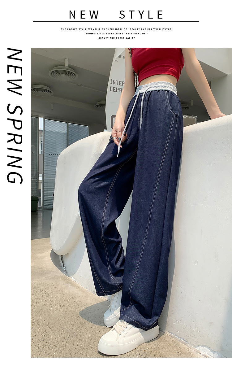 雀说天丝牛仔直筒裤女新款长裤休闲高腰宽松香蕉阔腿裤子ALA1060