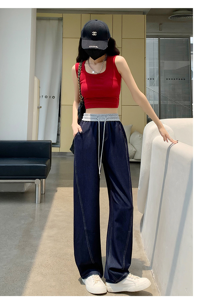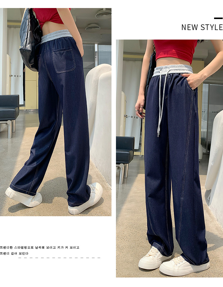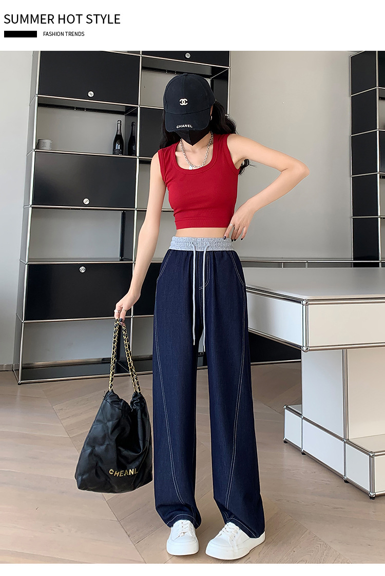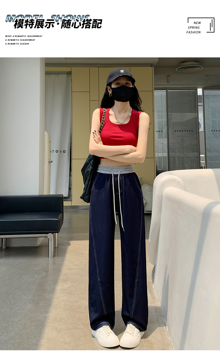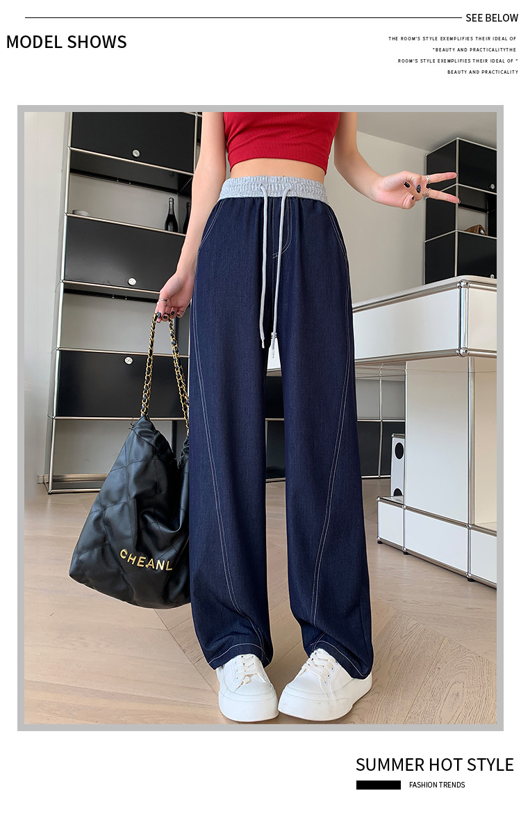 雀说天丝牛仔直筒裤女新款长裤休闲高腰宽松香蕉阔腿裤子ALA1060