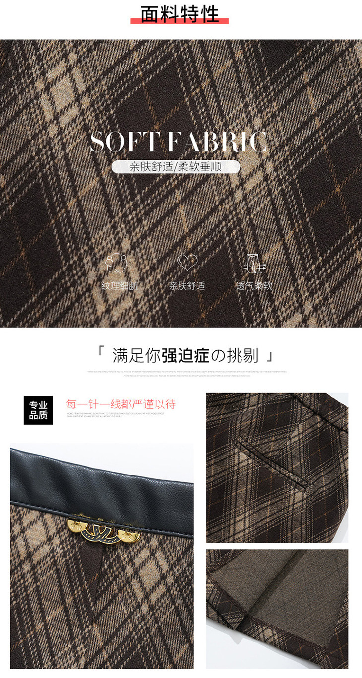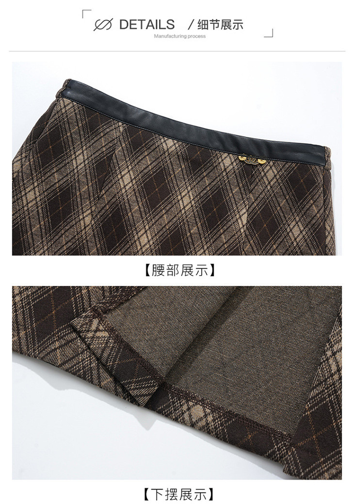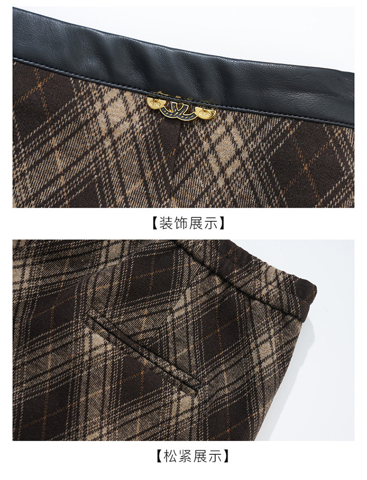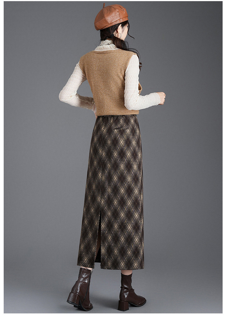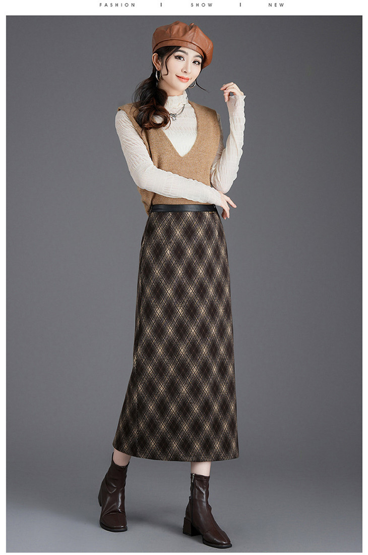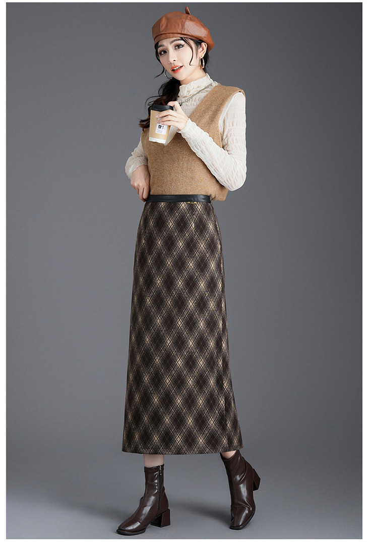 毛呢格子秋冬长款高腰开叉,一步裙显瘦包臀直筒裙MYX-1829