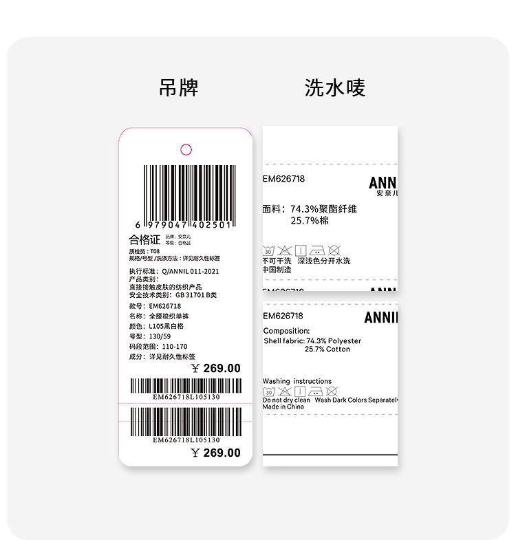 男女童梭织单裤夏季新款安奈儿童装EM626718