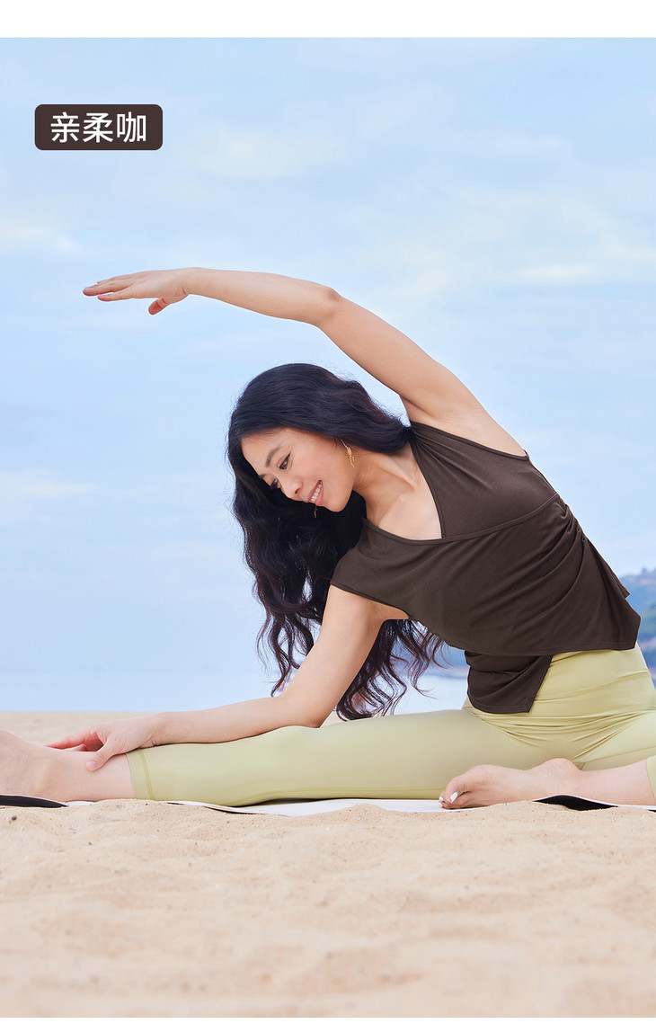 跃牌【海听系列】新款带纽扣斜开叉显瘦瑜伽上衣女固定胸垫吊带健身背心XC94