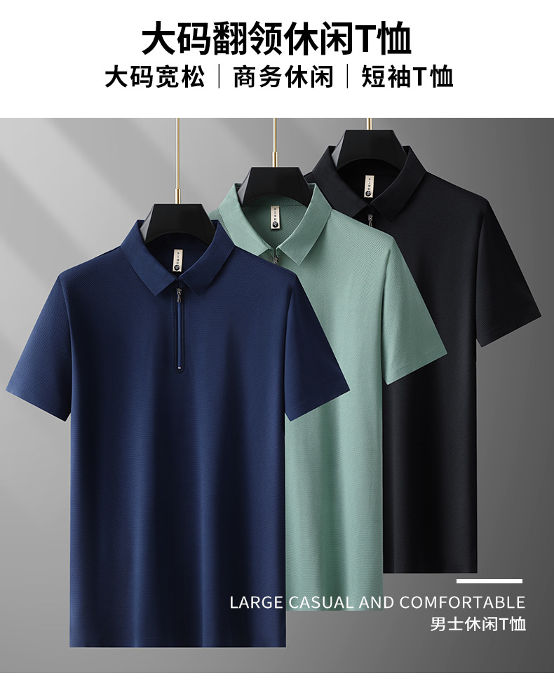 【拉链领】【DG】大依优型大码男装拉链领Polo衫体恤免烫抗皱短袖休闲冰丝半袖上衣夏季胖子