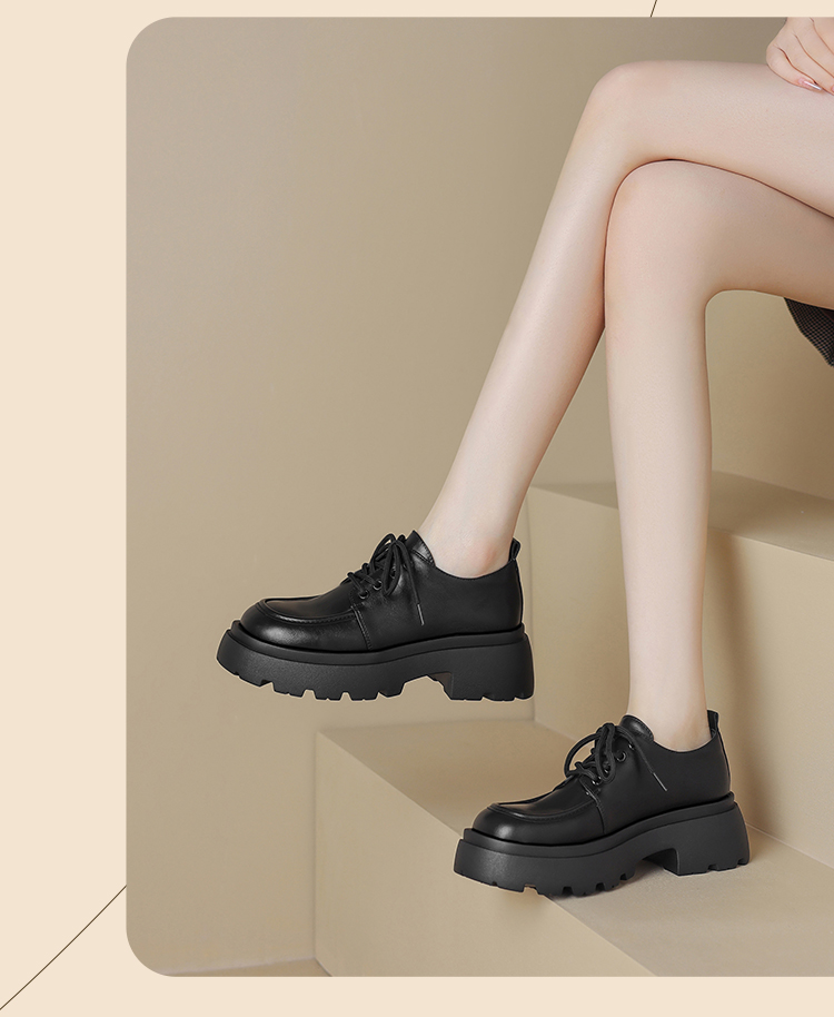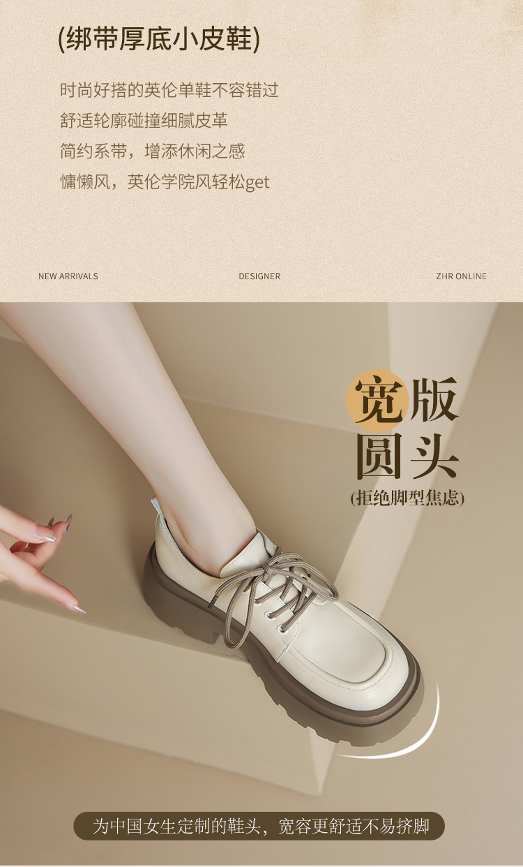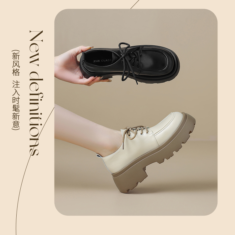 ZHR中口乐福鞋女2024春季新款洋气时尚休闲百搭简约学院风厚底英伦单鞋
