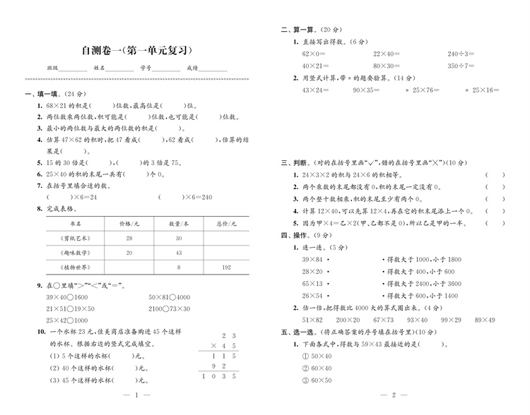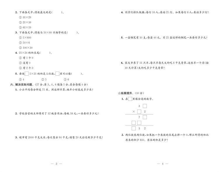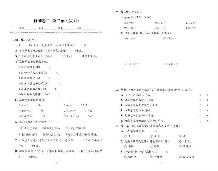2025春 小学数学练习自测卷 三年级下册 苏教版 含电子答案 小学教辅同步训练试卷 含错题本 3下 江苏凤凰教育出版社