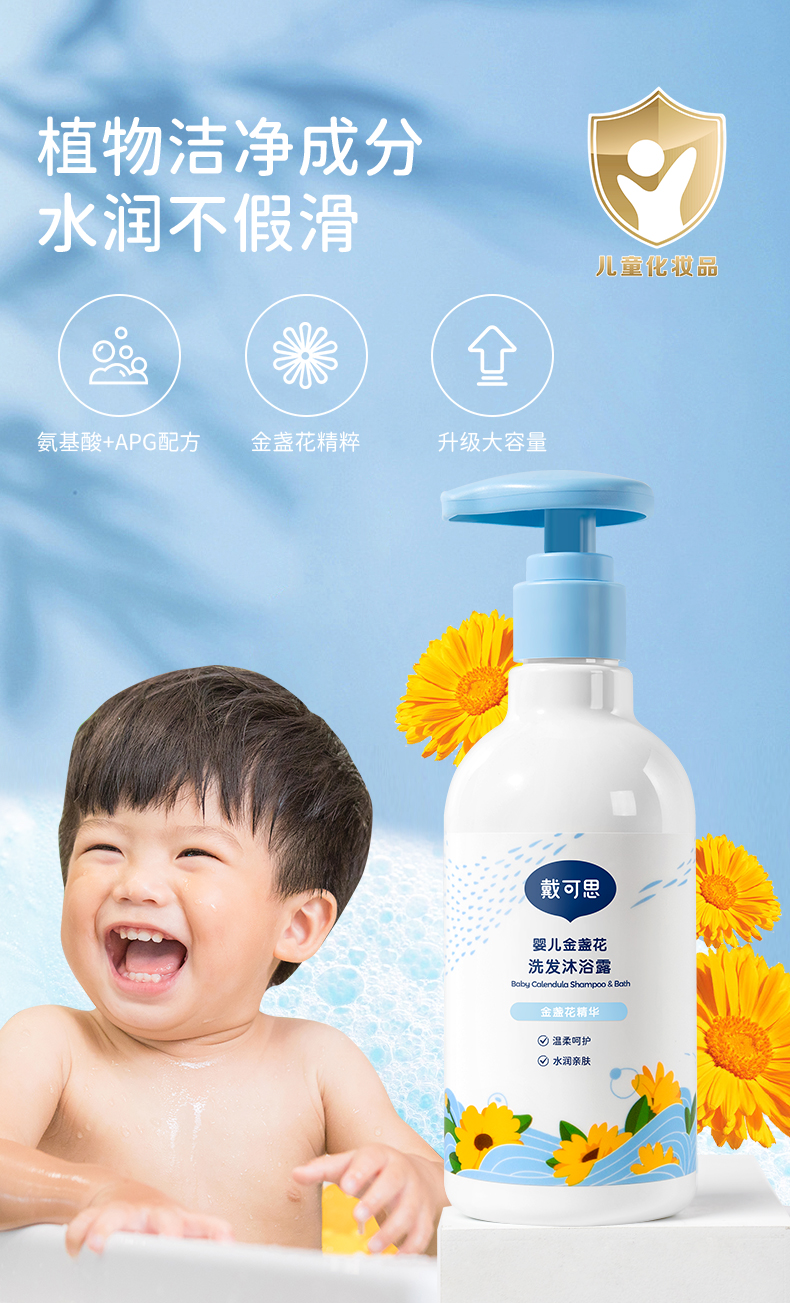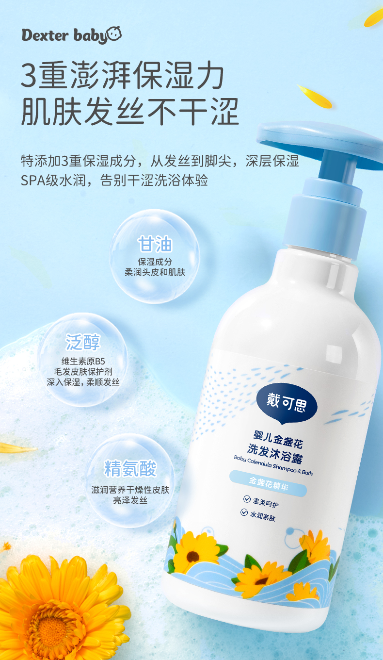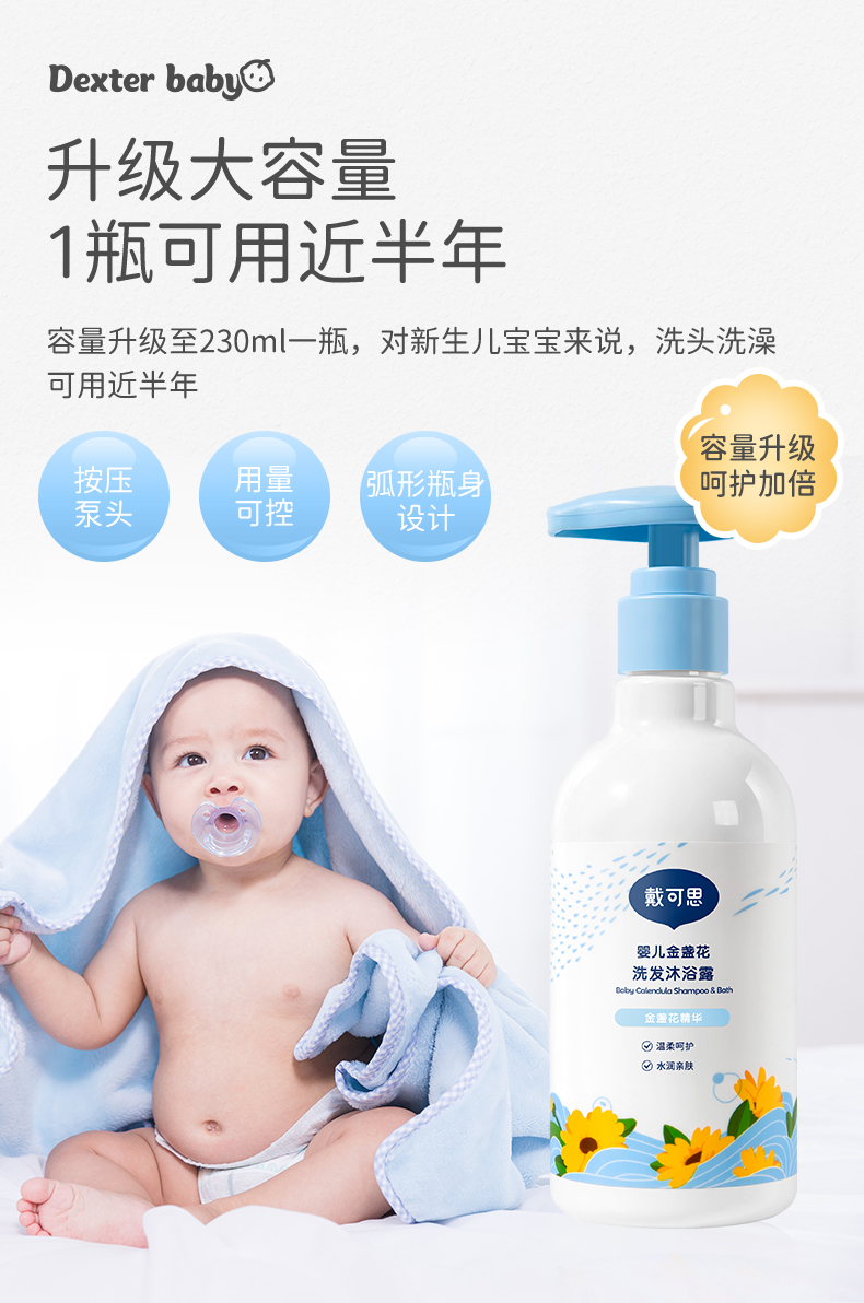 金盏花洗发沐浴二合一 230ml*2瓶| 戴可思精简成分7无添加低泡易冲洗新生儿宝宝沐浴露
