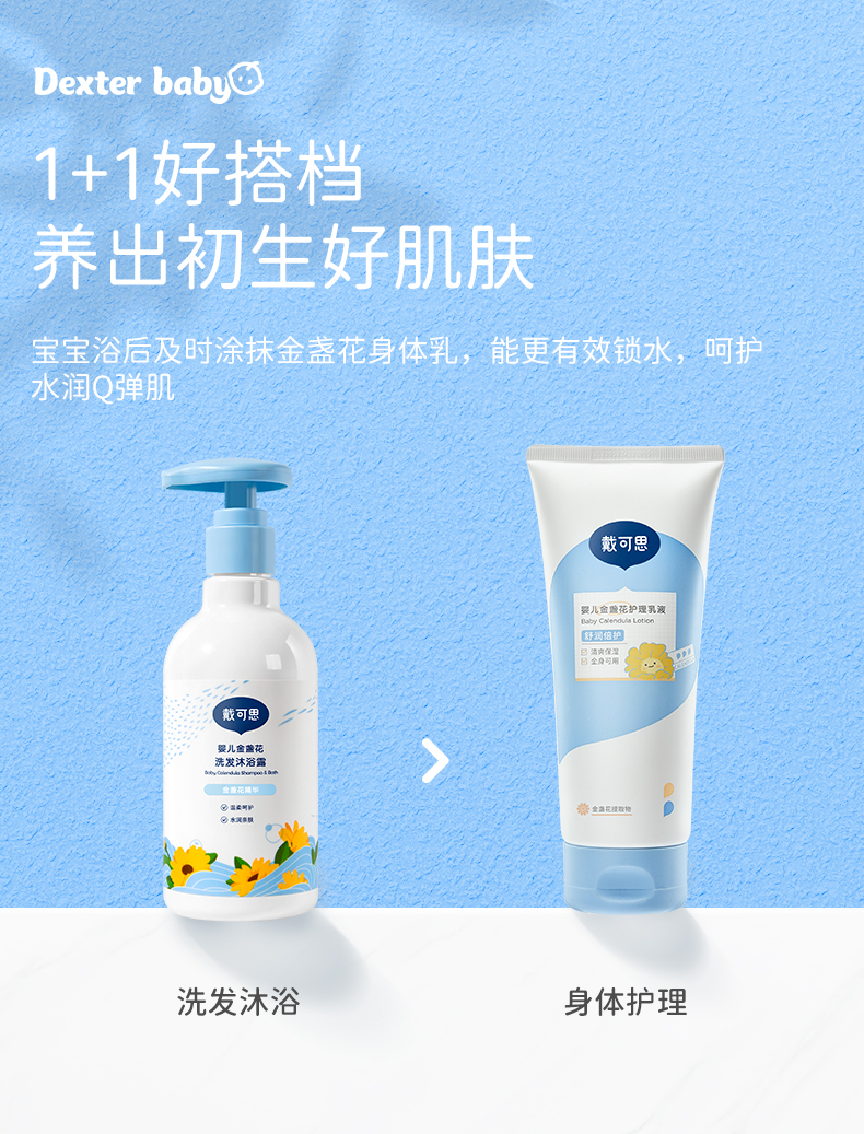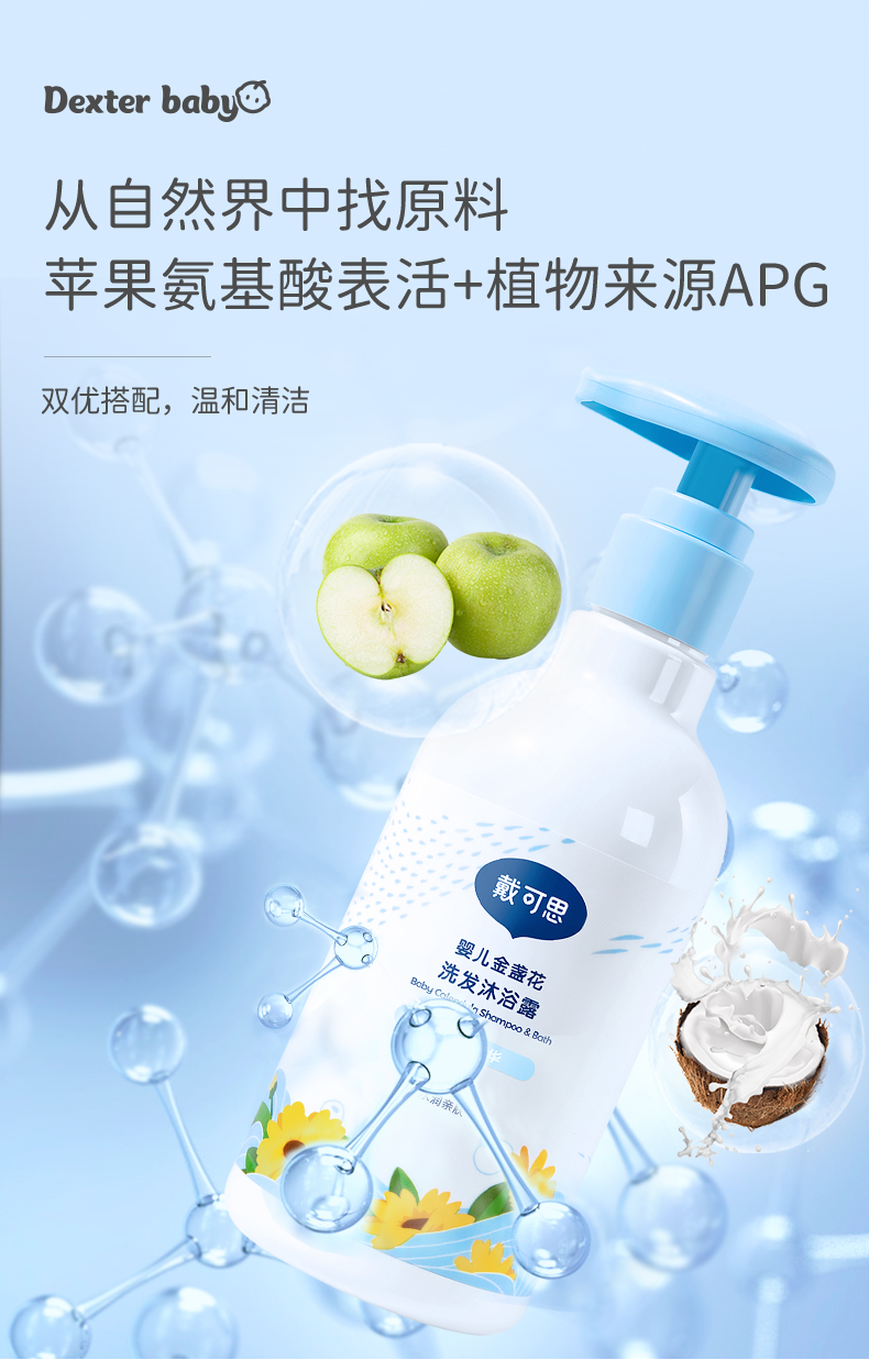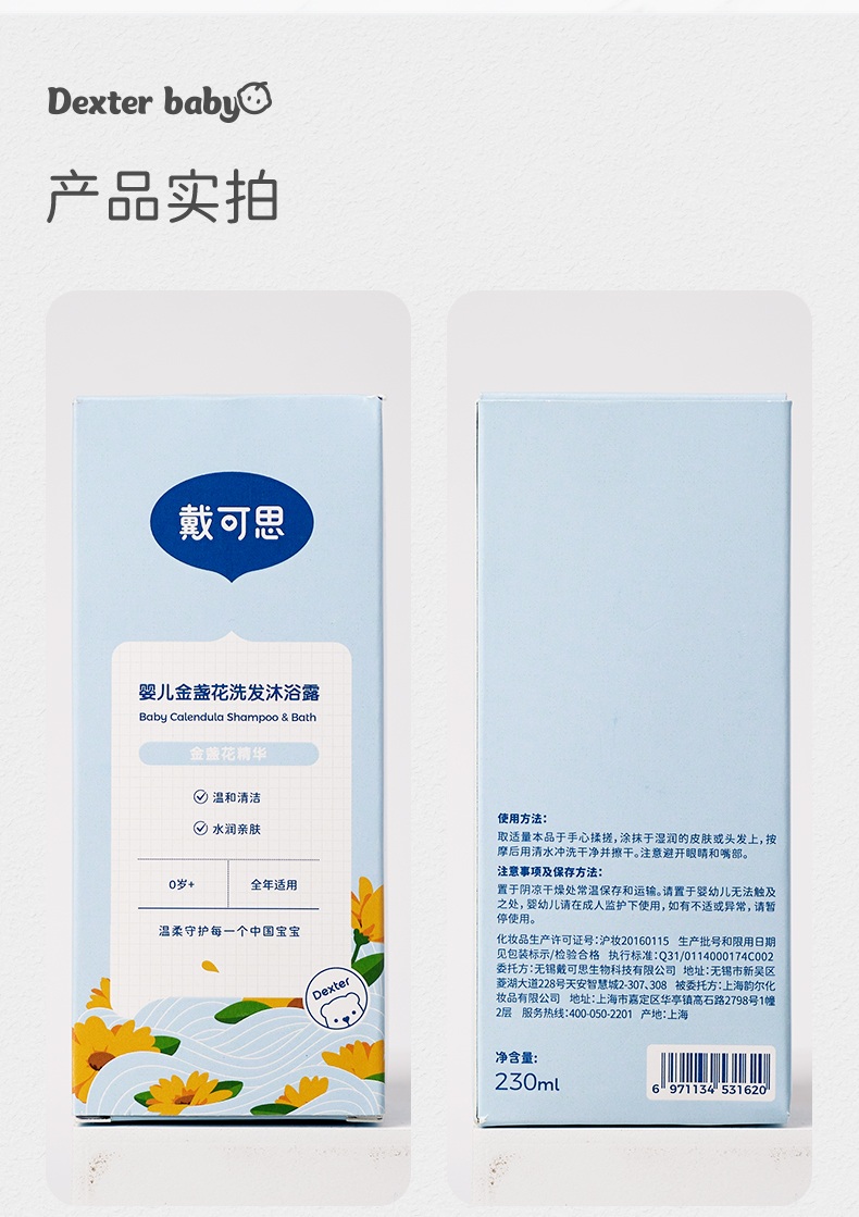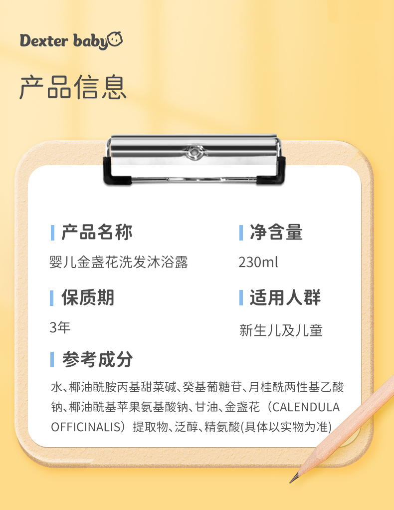 金盏花洗发沐浴二合一 230ml*2瓶| 戴可思精简成分7无添加低泡易冲洗新生儿宝宝沐浴露