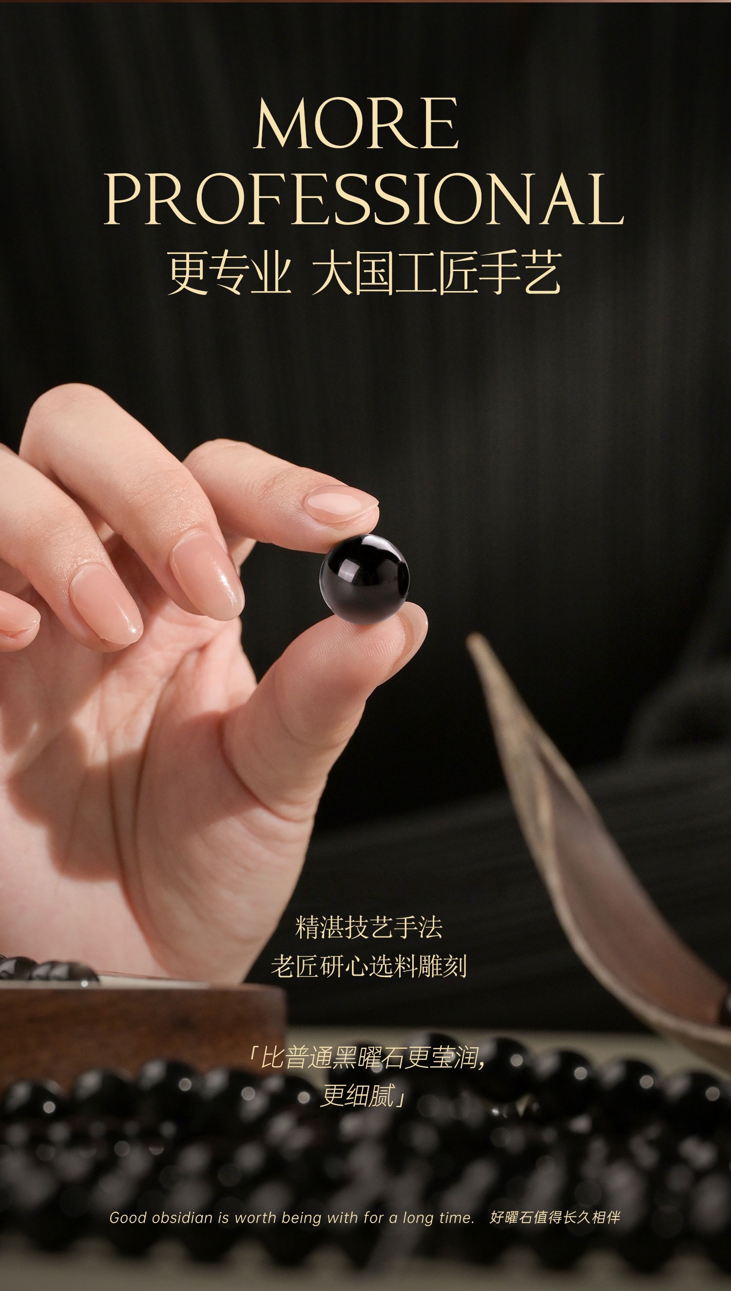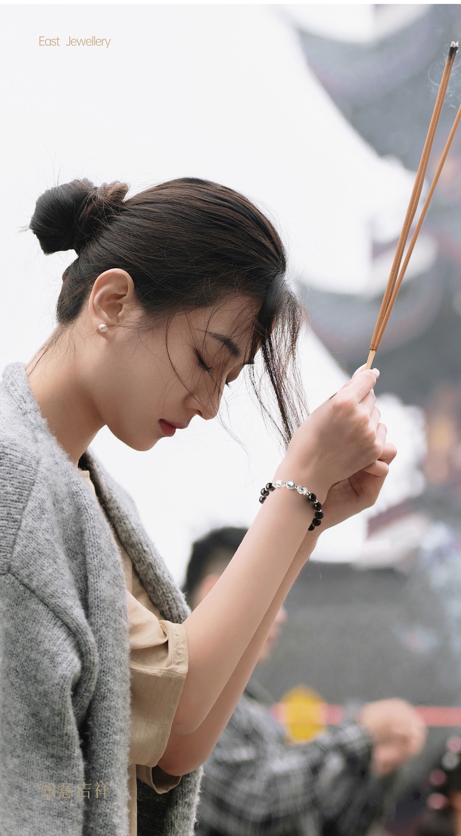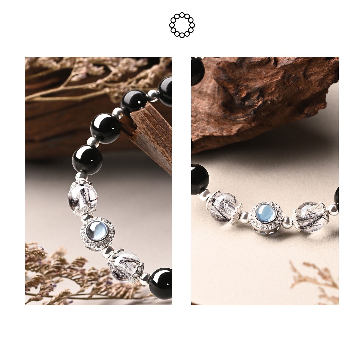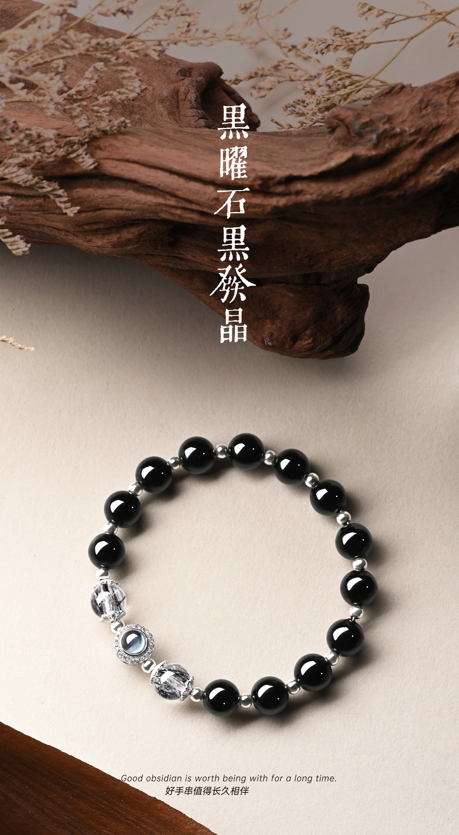 【优选天然黑曜石 招财转运】海蓝宝黑发晶水晶男女情侣手链 时来运转