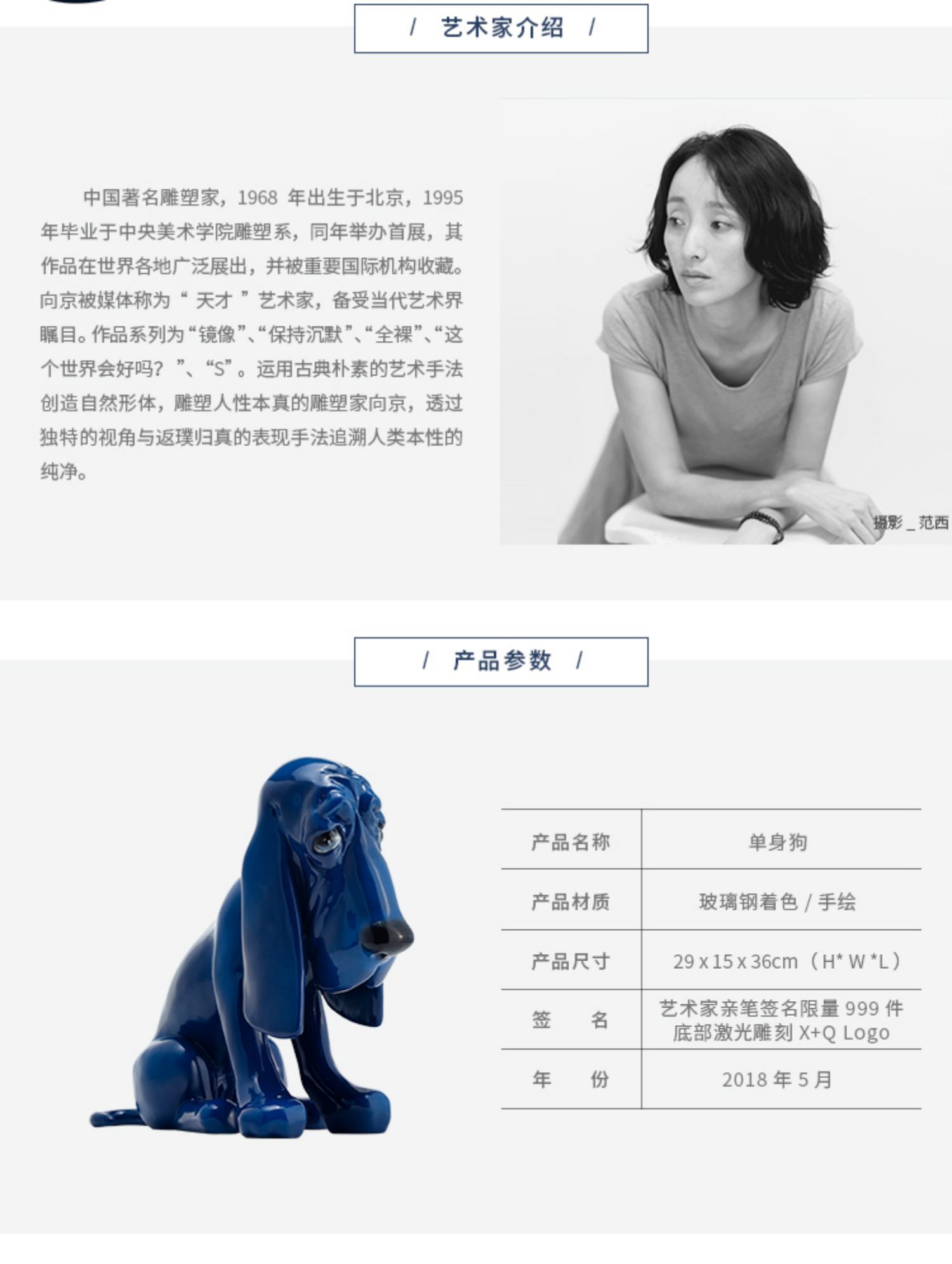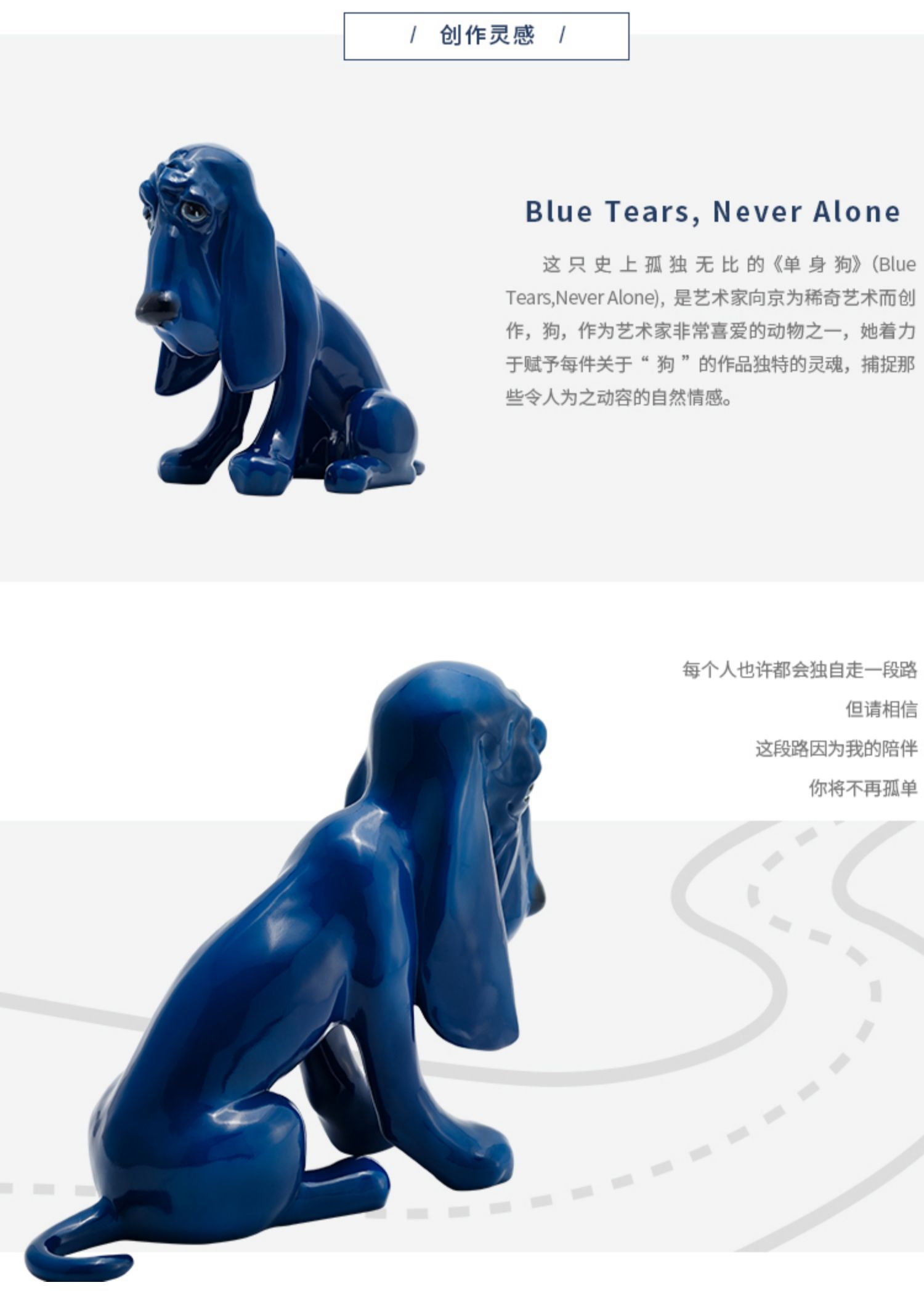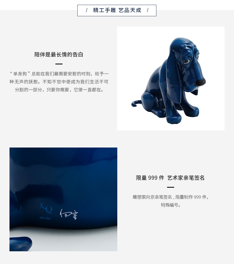 稀奇艺术 向京大师雕塑《单身狗-深蓝》桌面艺术摆件礼品包装