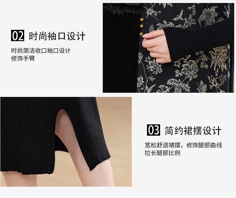 HR YBER629加棉新中式圆领真毛马甲洋气显瘦气质款两件套裙 商品图2
