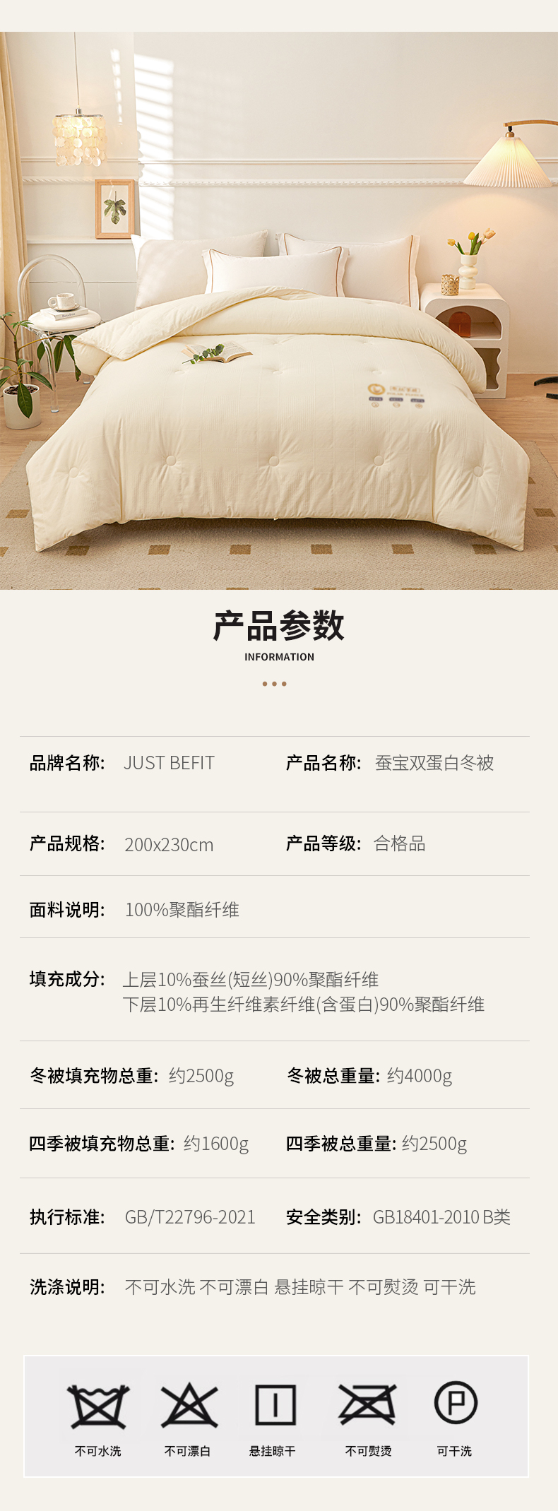 【品牌直发】加倍生活 蚕宝双蛋白养肤被 丝滑蚕丝 提花工艺 压边缝合 四季被冬被