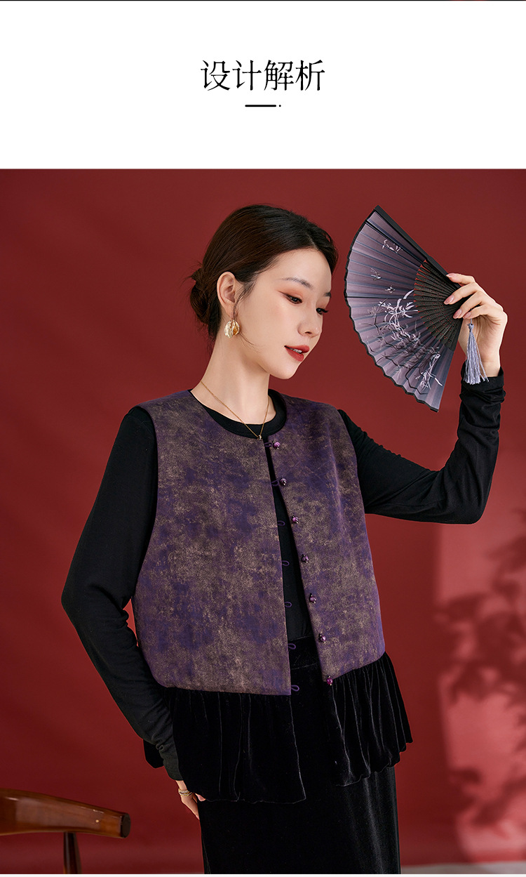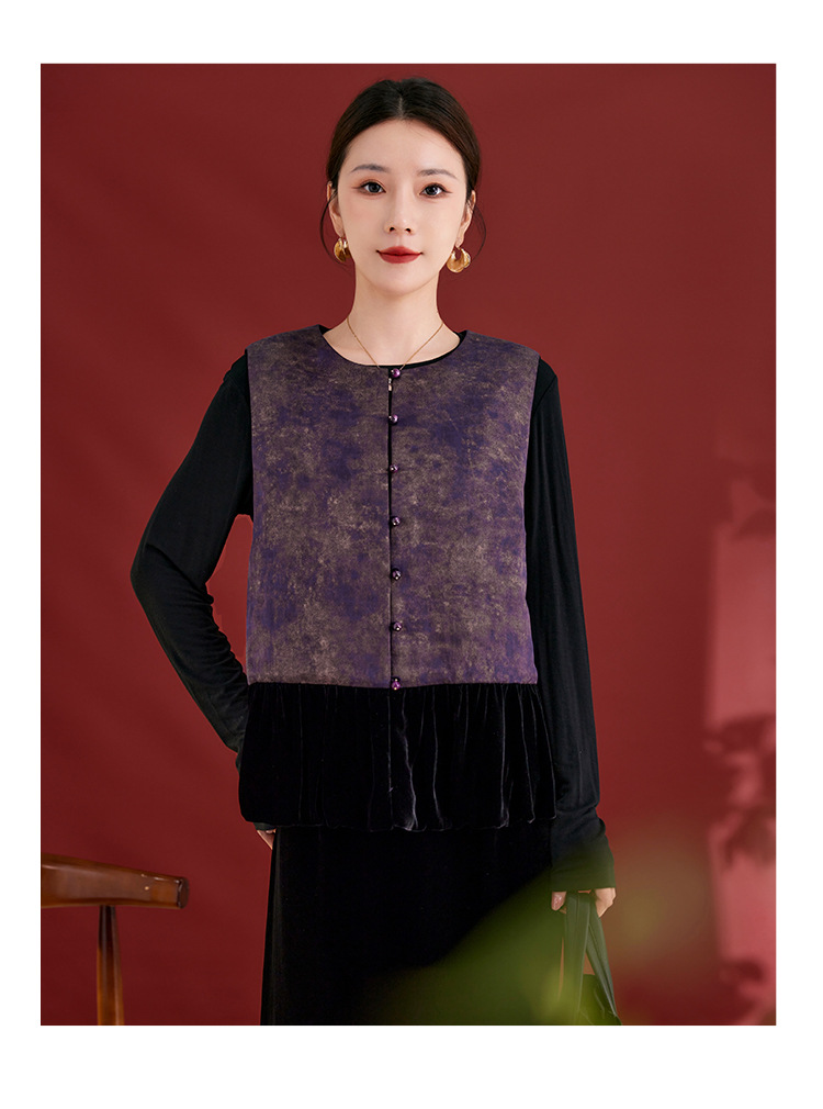 SM 1739桑蚕丝盘扣提花拼接国风扎染烫金渐变马甲显瘦无袖气质 商品图3