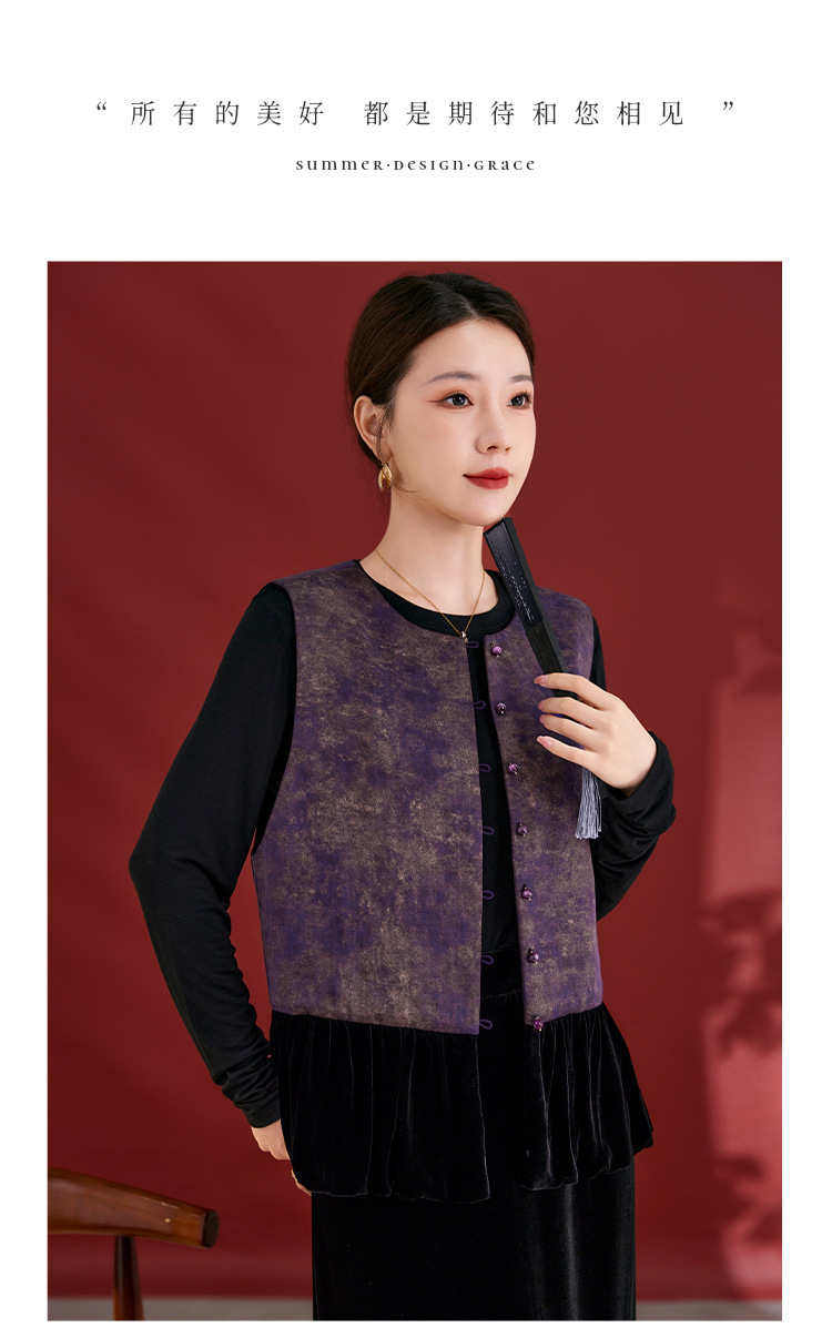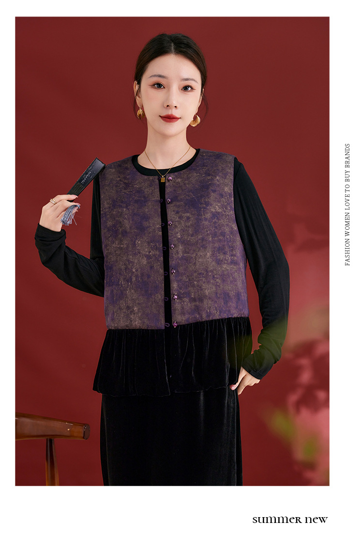 SM 1739桑蚕丝盘扣提花拼接国风扎染烫金渐变马甲显瘦无袖气质