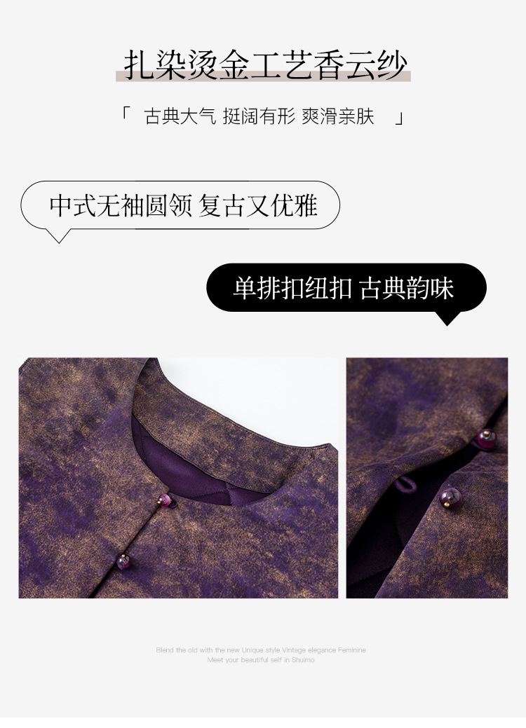 SM 1739桑蚕丝盘扣提花拼接国风扎染烫金渐变马甲显瘦无袖气质 商品图4