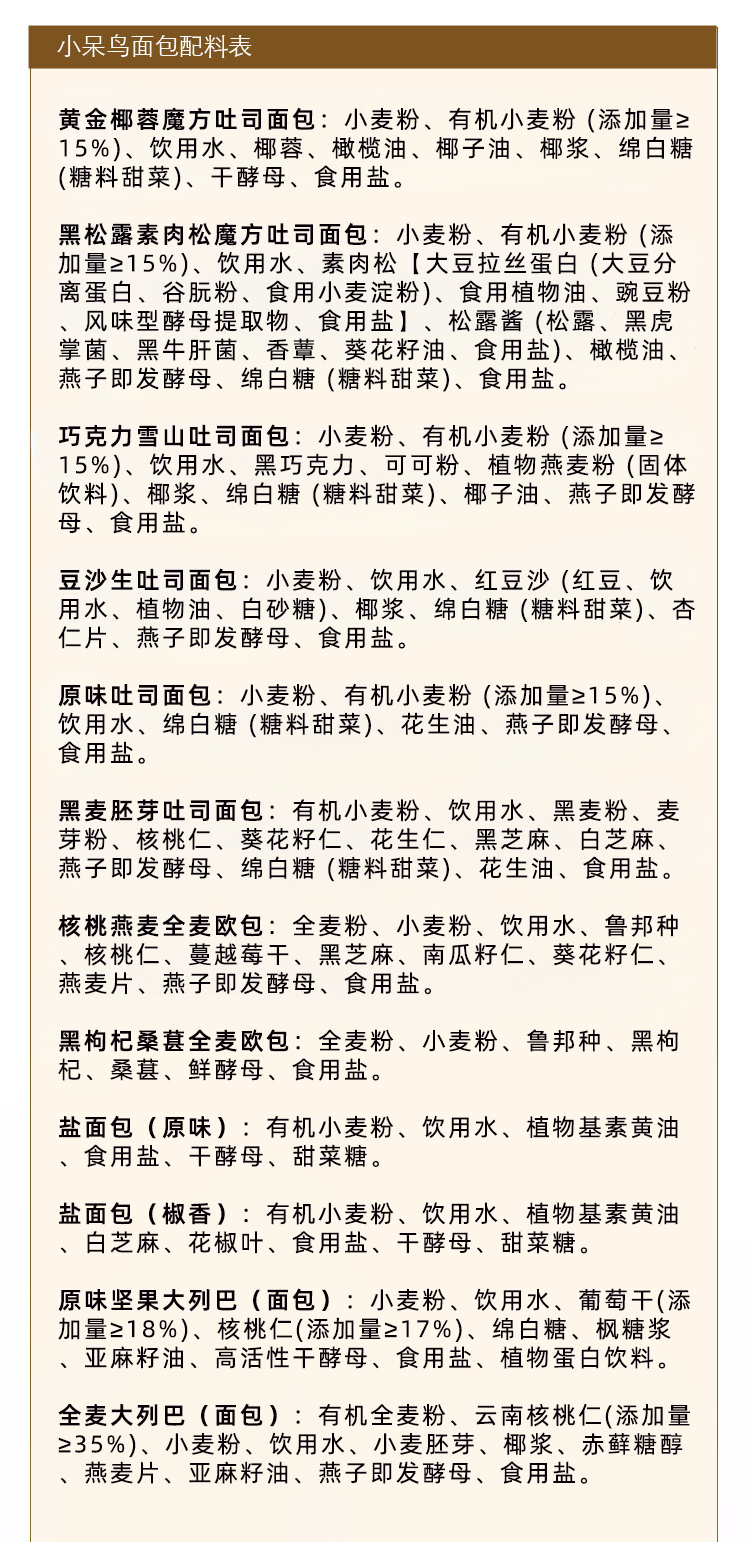 小呆鸟纯素面包系列 | 吐司/大列巴/全麦欧包/盐包 小呆鸟「小呆鸟系列满98包邮,鲜面包每周三、六发货」