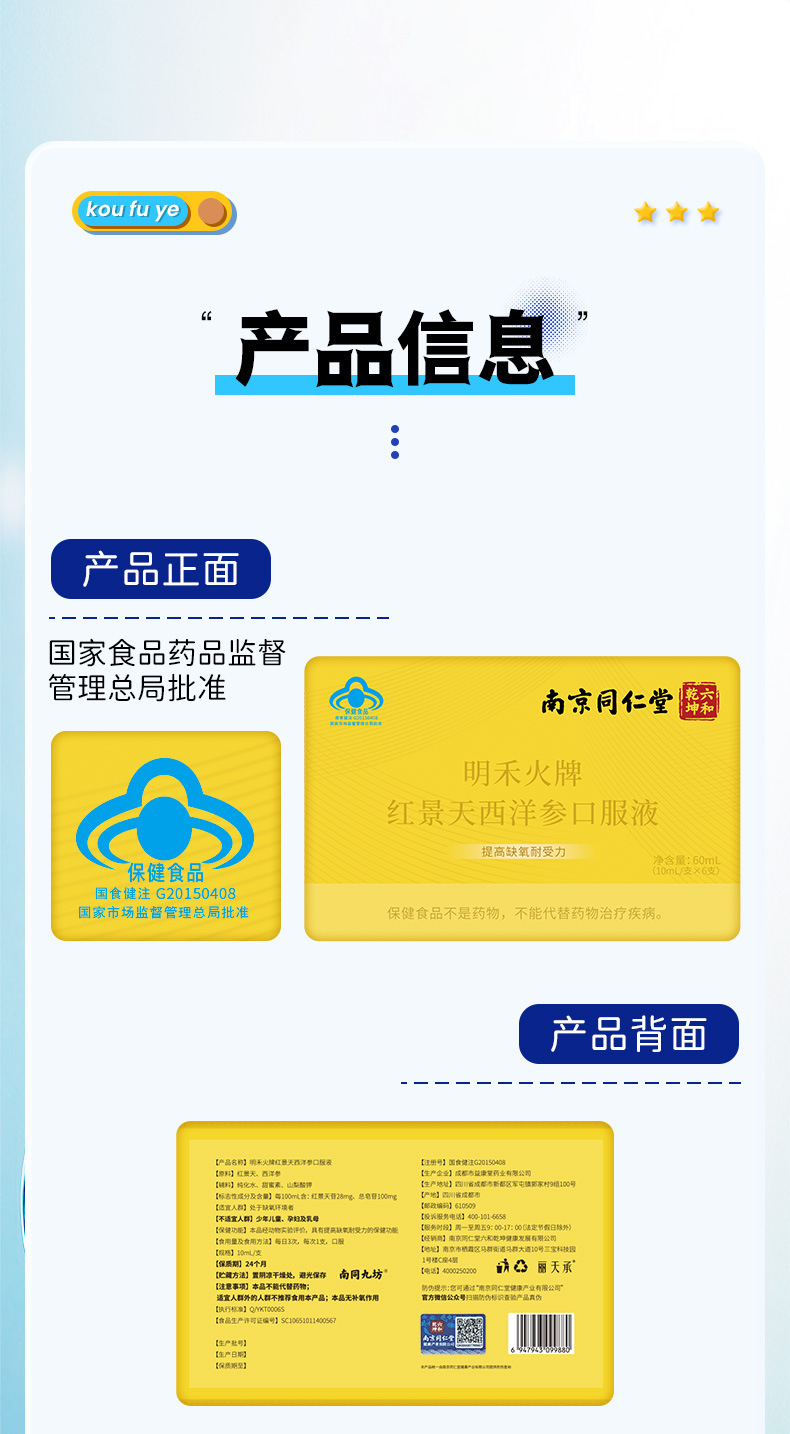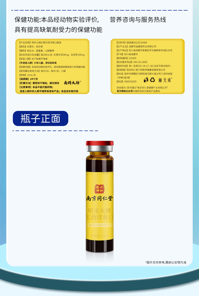 【红景天西洋参口服液,提高缺氧耐受力】南京同仁堂 明禾火牌红景天西洋参口服液 高原旅行高山备品-QQ