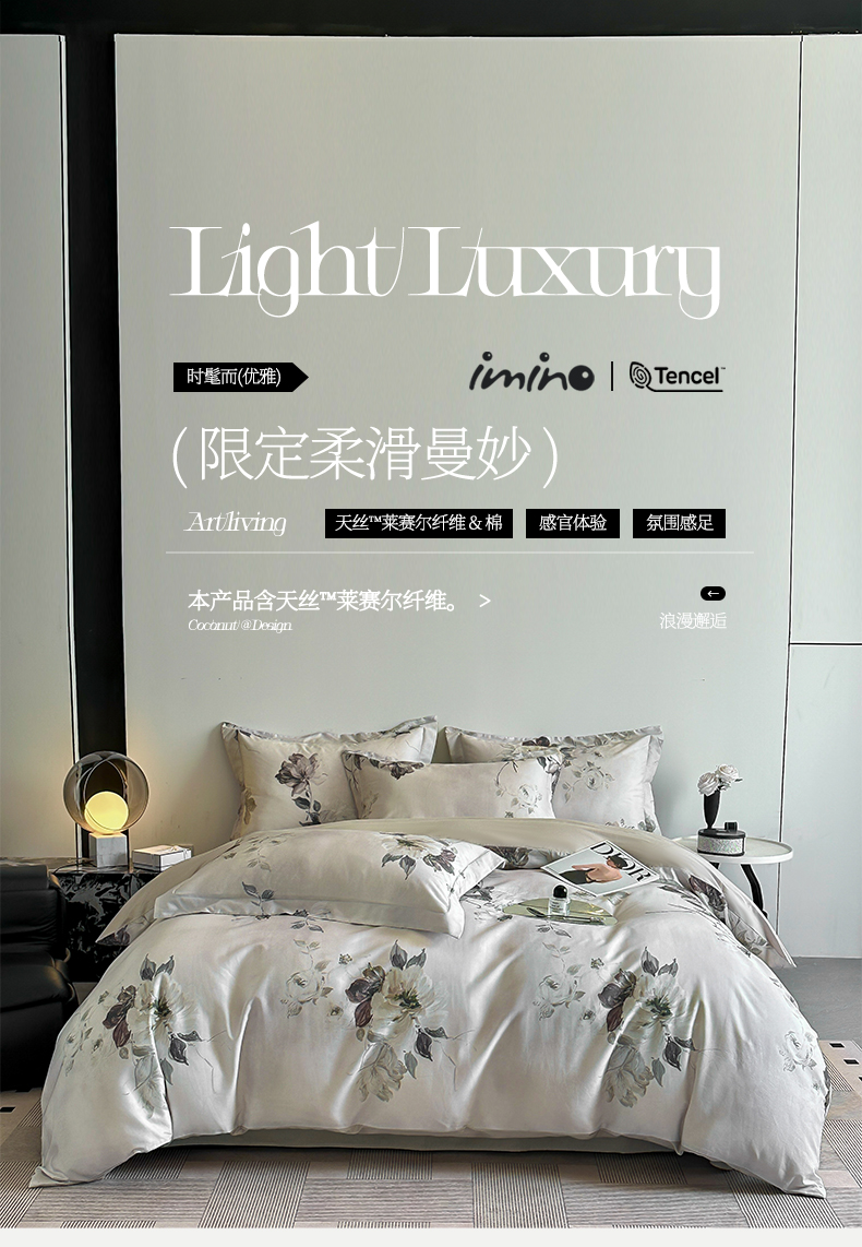【品牌直发】加倍生活 天丝棉数码印花四件套-恬觅系列 14色可选 大版数码印花 品质之选