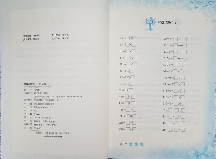小学数学口算小能手四年级下(新版) 浙江教育出版社 张天孝主编