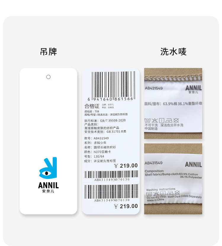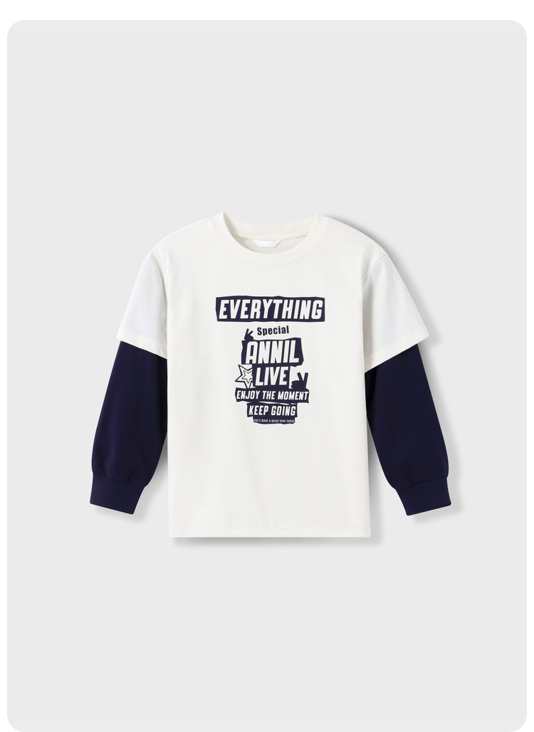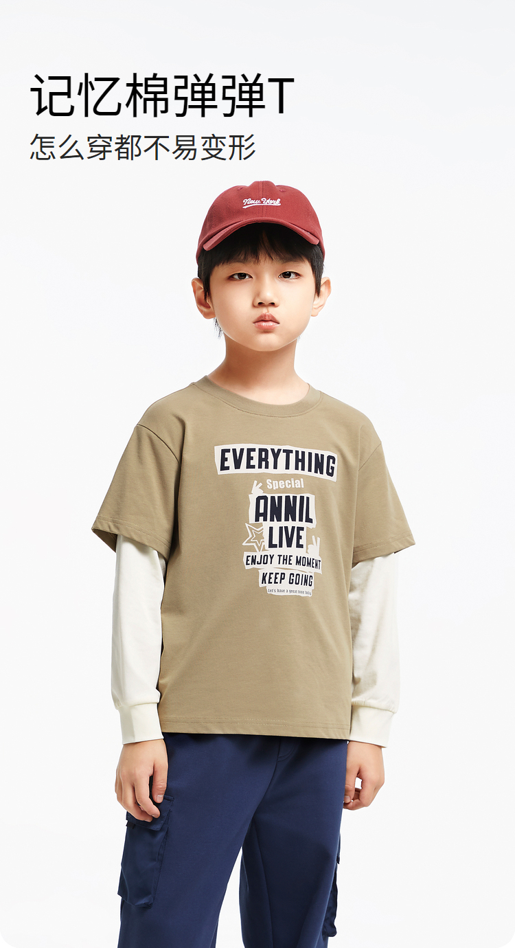 男童记忆棉弹弹T圆领长袖新款安奈儿童装实体店同款AB431549