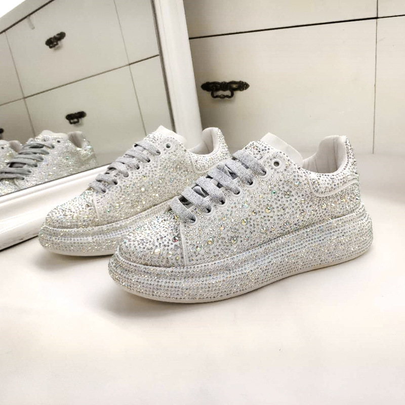 ZZX新款潮流时尚满钻真皮厚底休闲运动板鞋