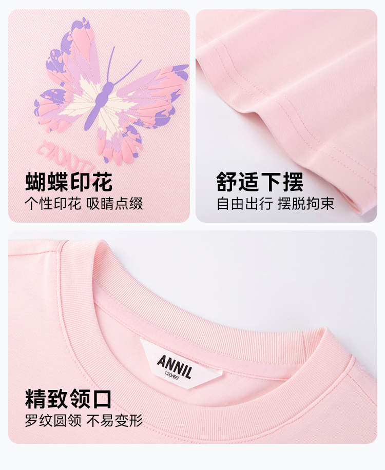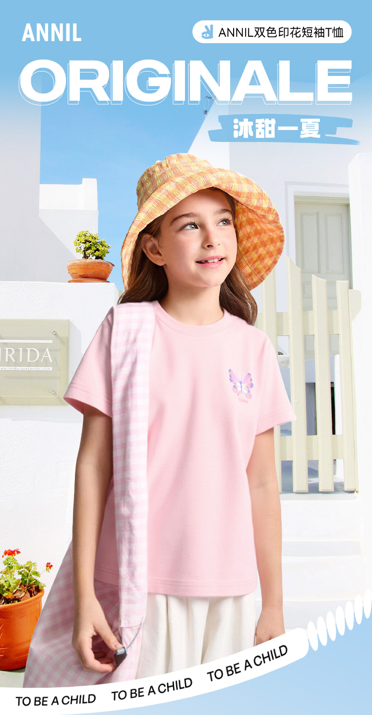 【热卖🔥】【凉感面料】女童圆领短袖SORONA针织衫夏季新款安奈儿童装EG521169