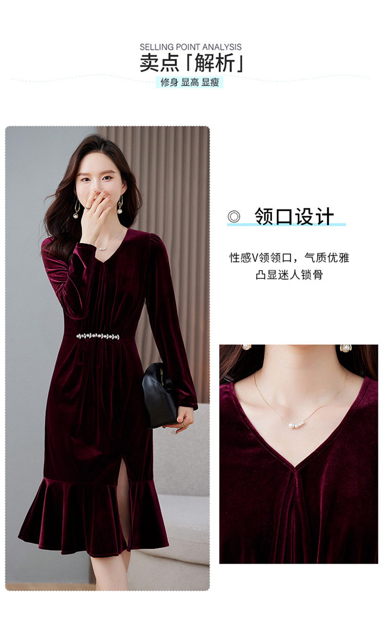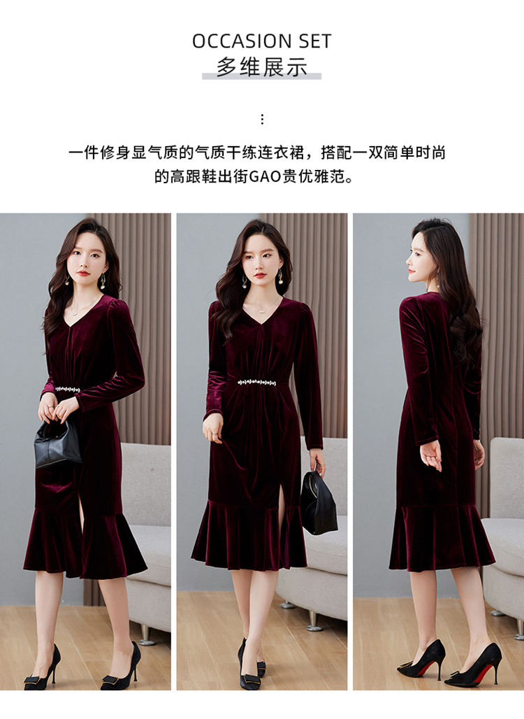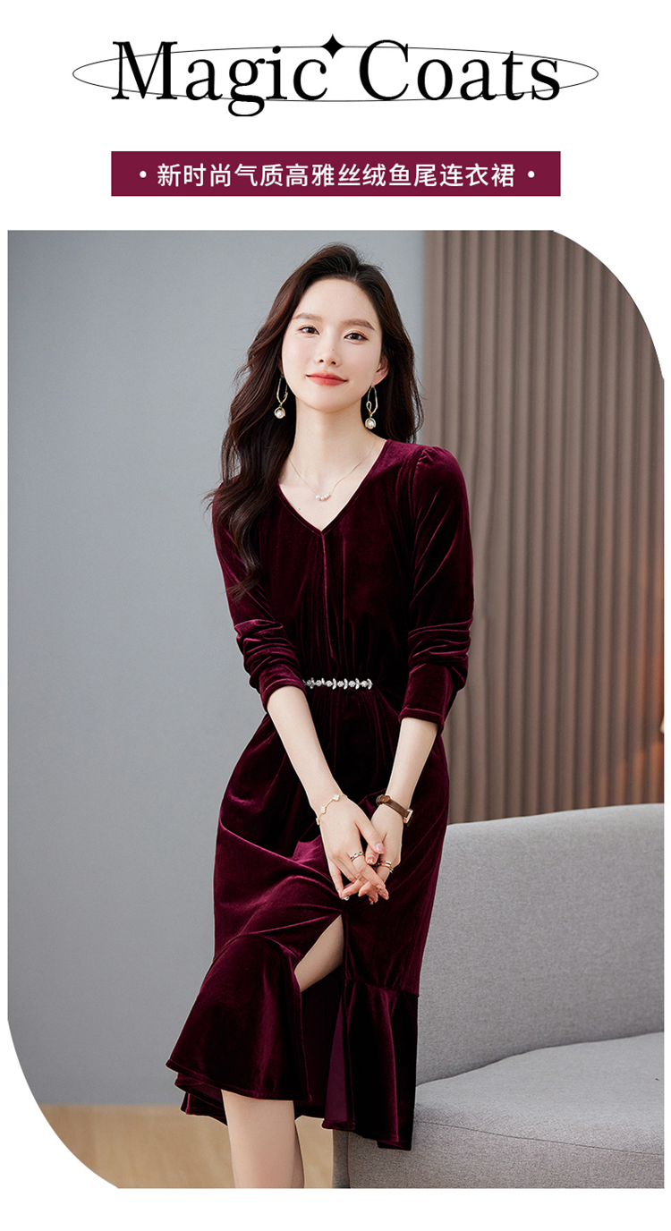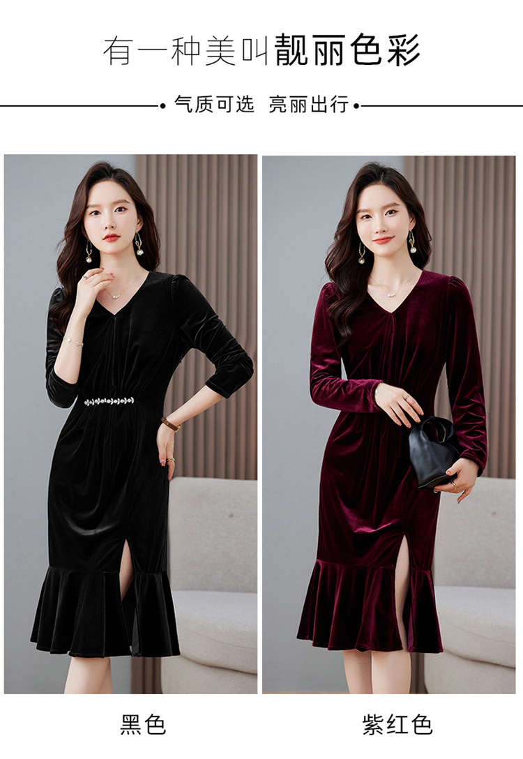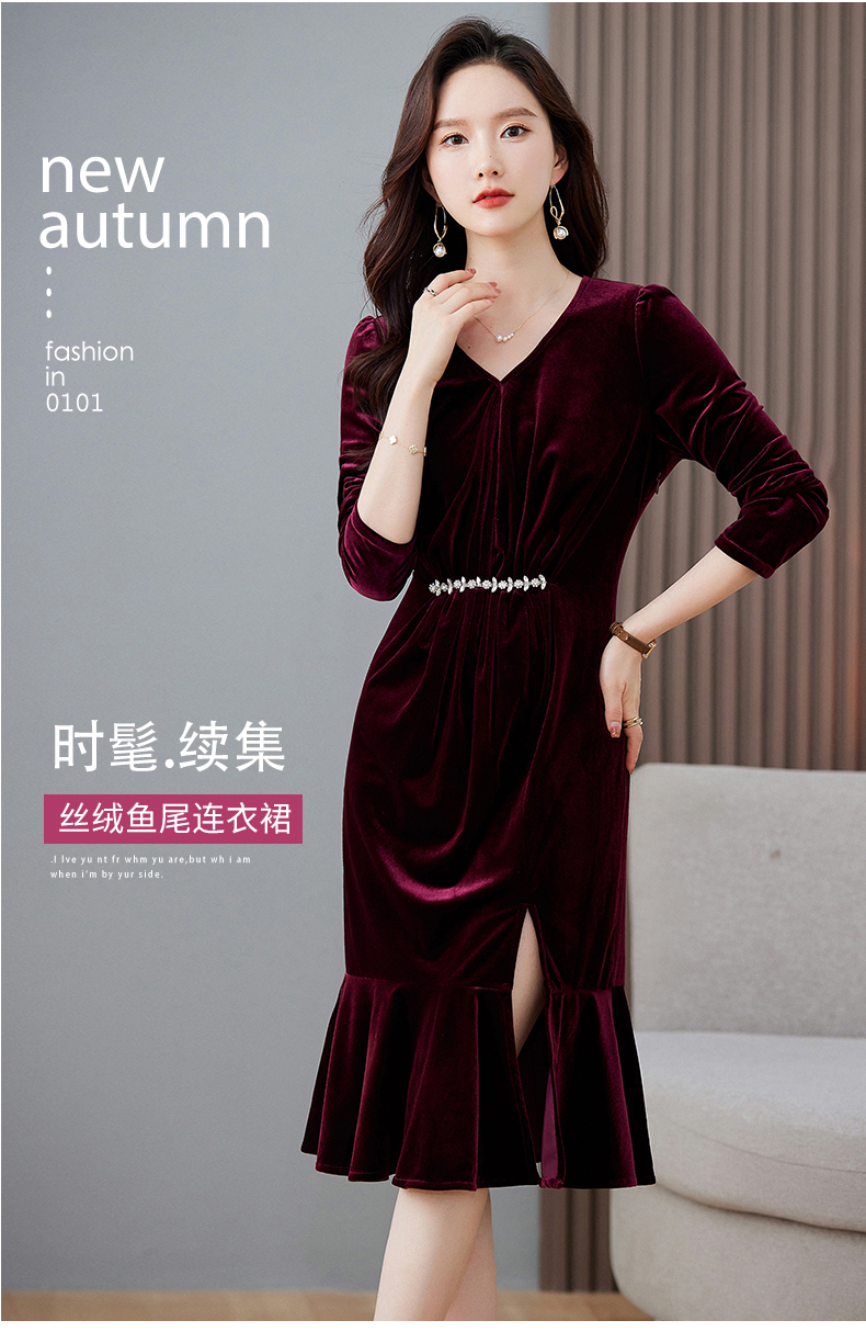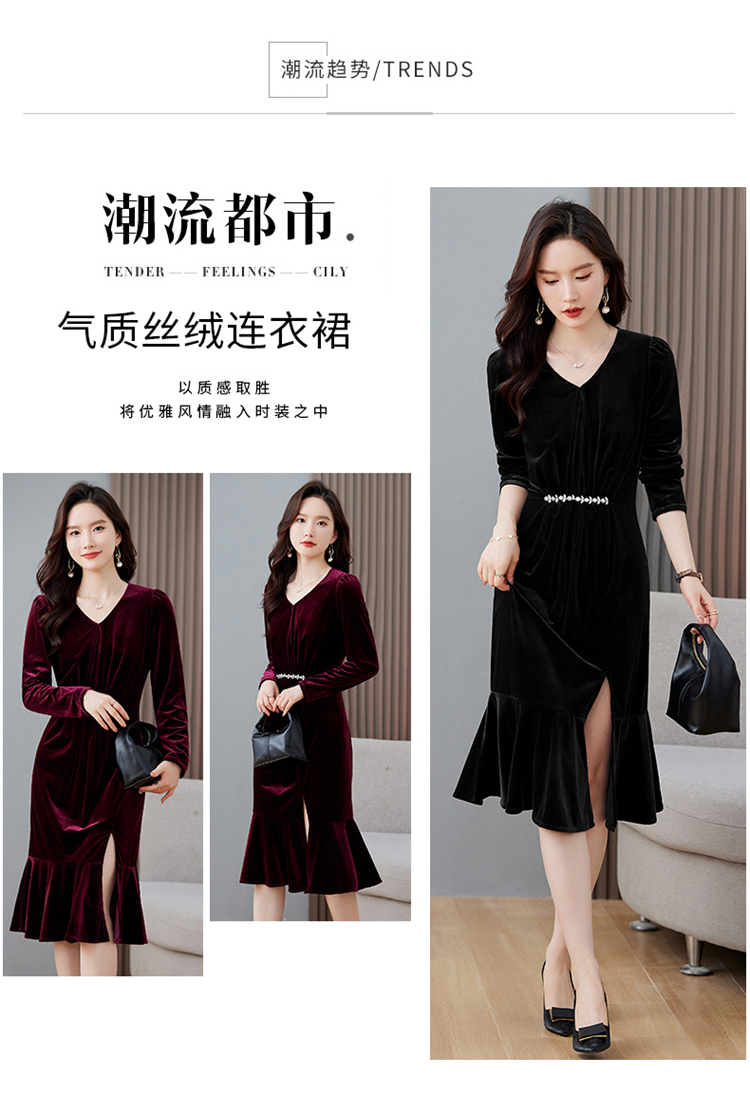 秋装新款,金丝绒修身鱼尾连衣裙HR-LMYS637