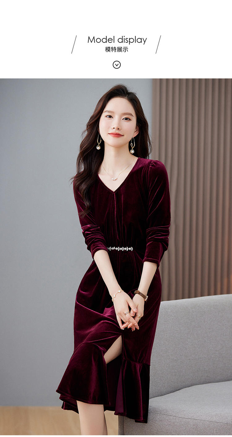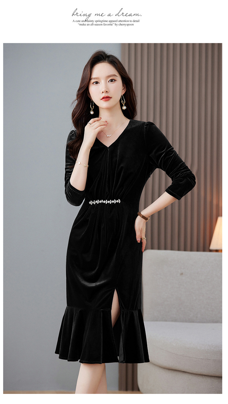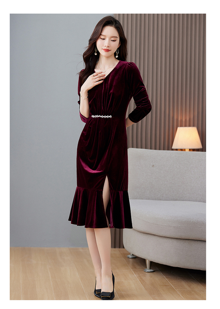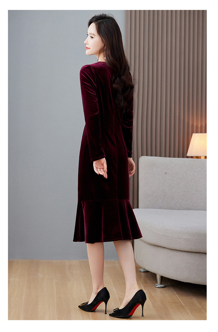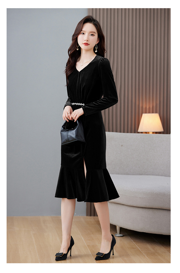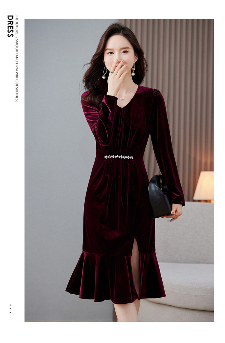 秋装新款,金丝绒修身鱼尾连衣裙HR-LMYS637
