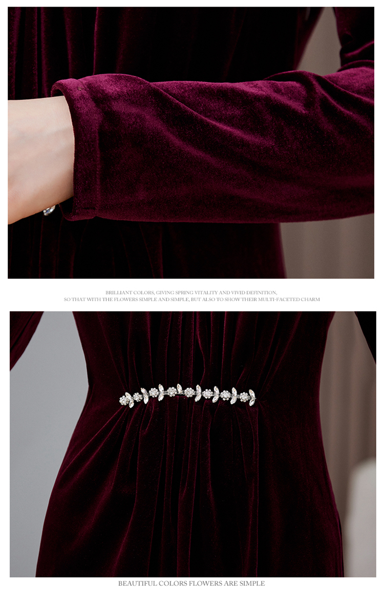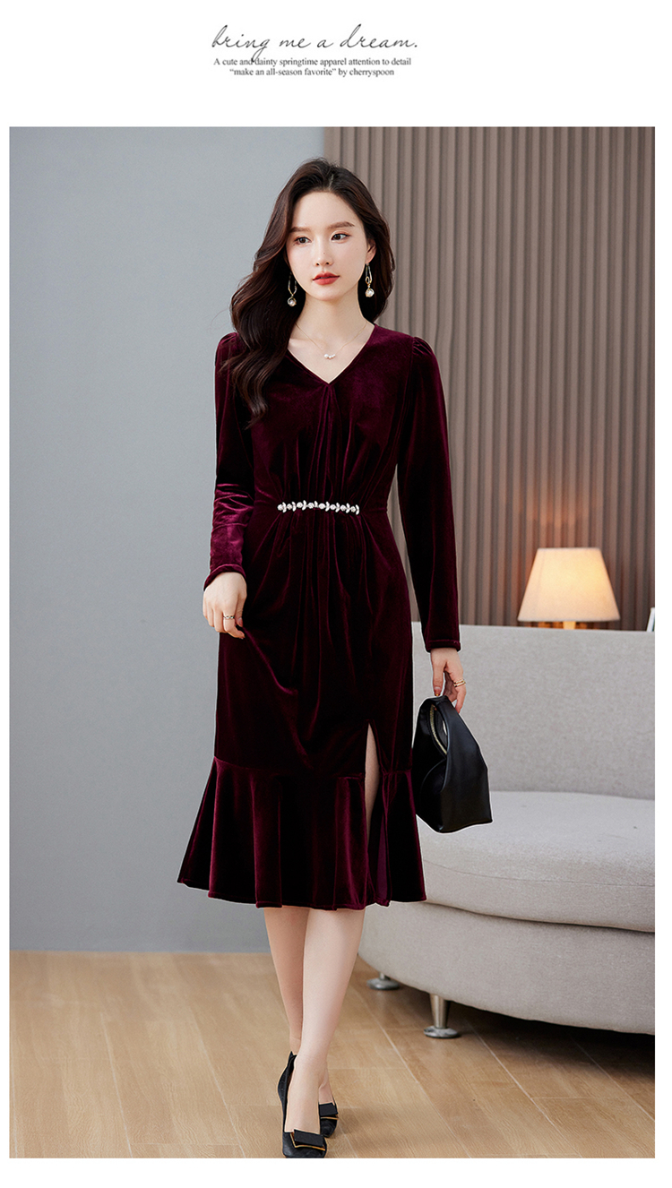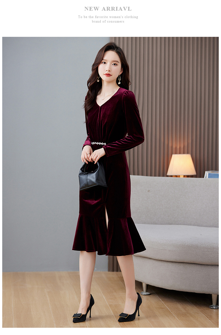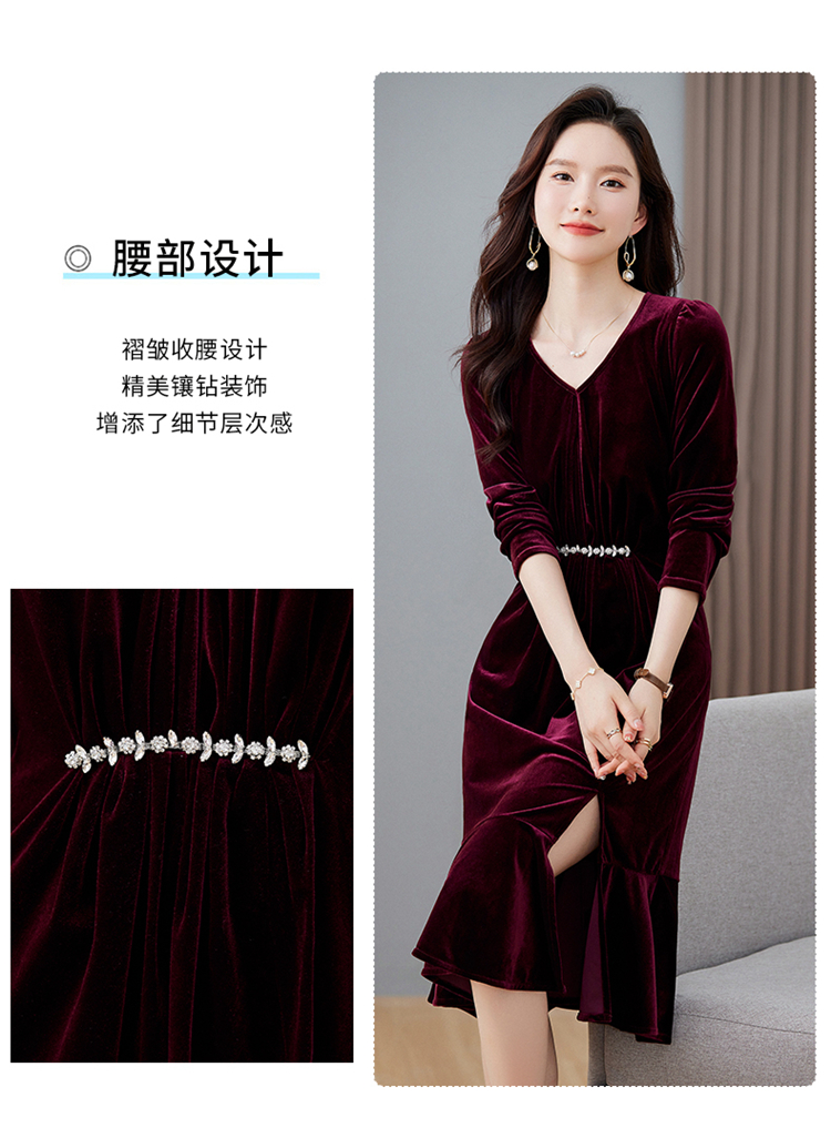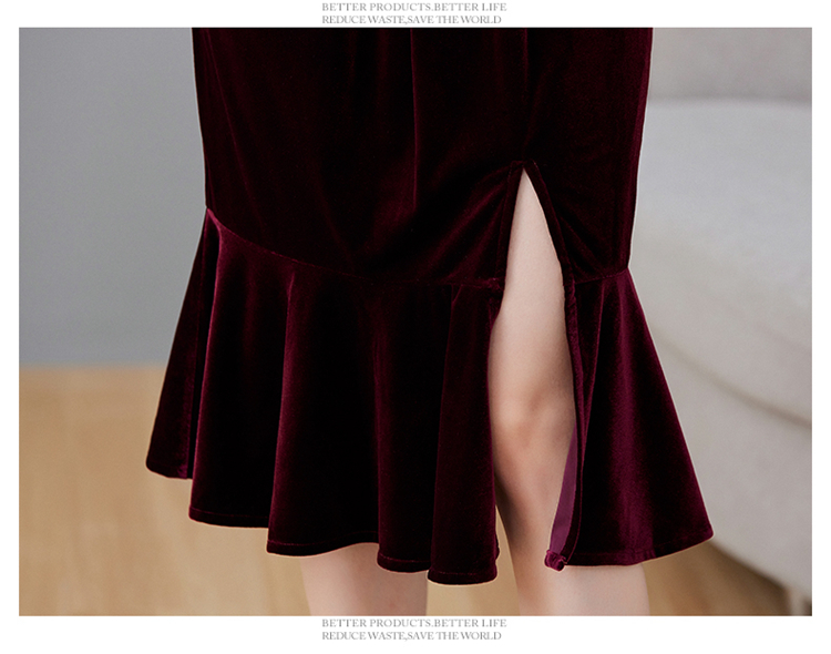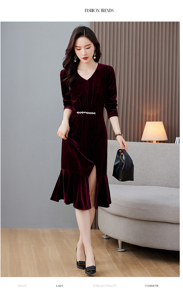 秋装新款,金丝绒修身鱼尾连衣裙HR-LMYS637